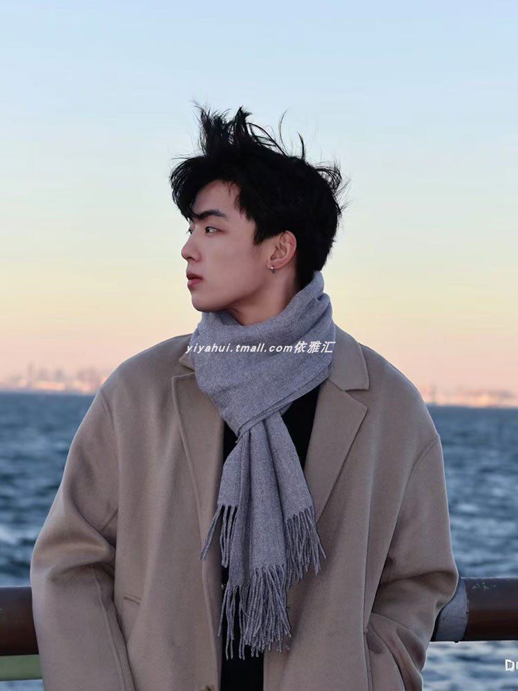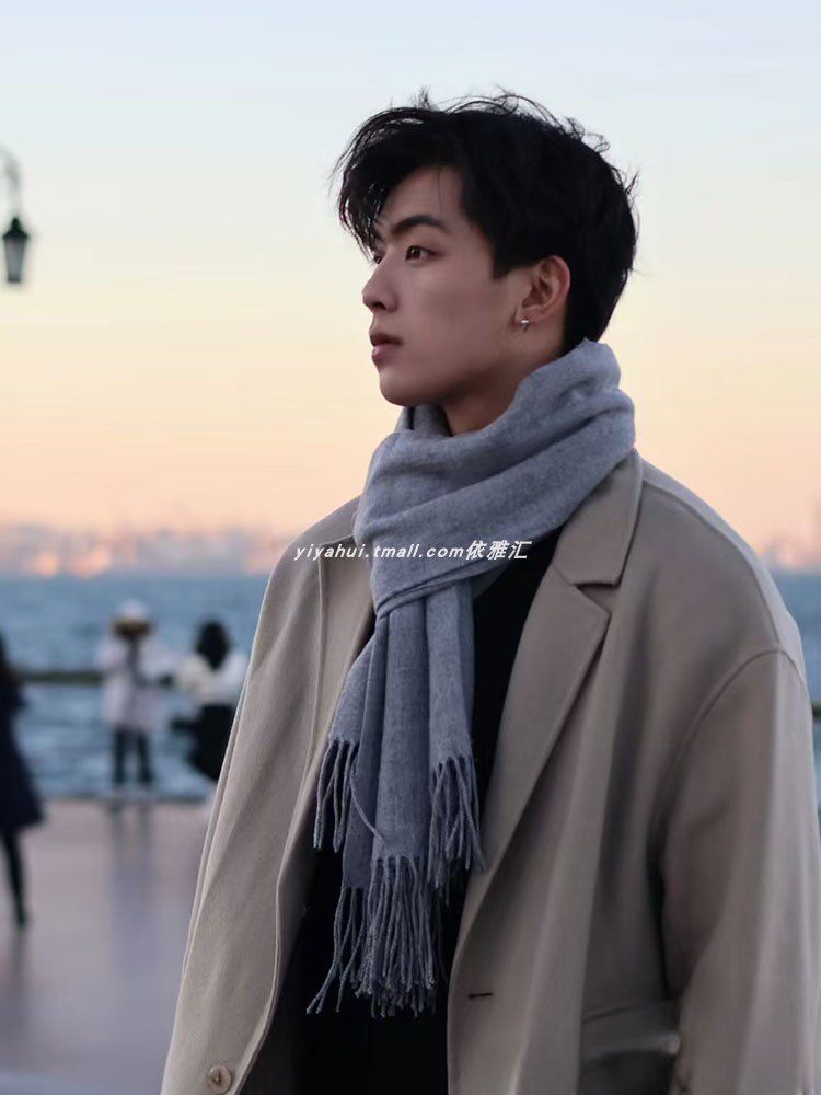 Autumn and winter Korean men's gray student scarf men's birthday gift high-end long scarf 2025 new style