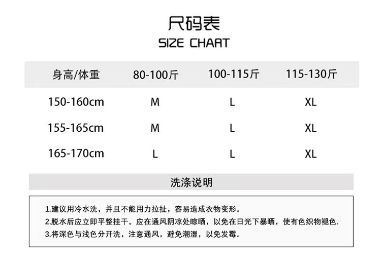 China (cm) 160-165/84-86 165-170 / 88-90 167-172 / 92-96 168-173 / 98-102 170-176 / 106-110