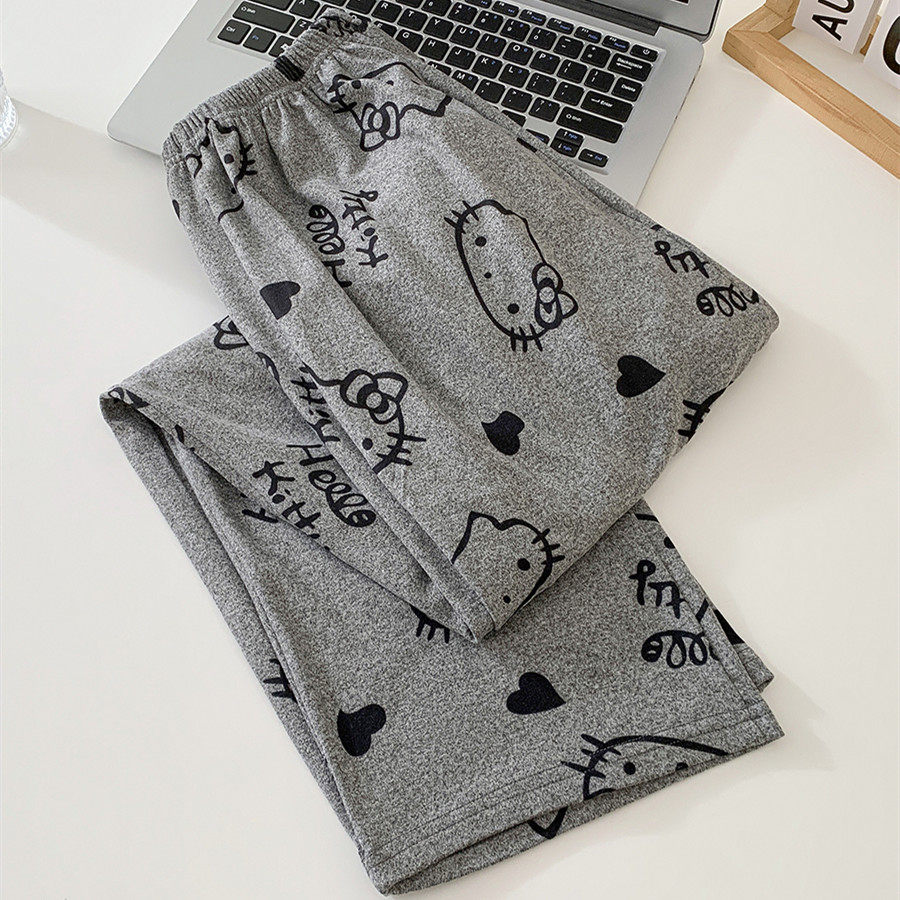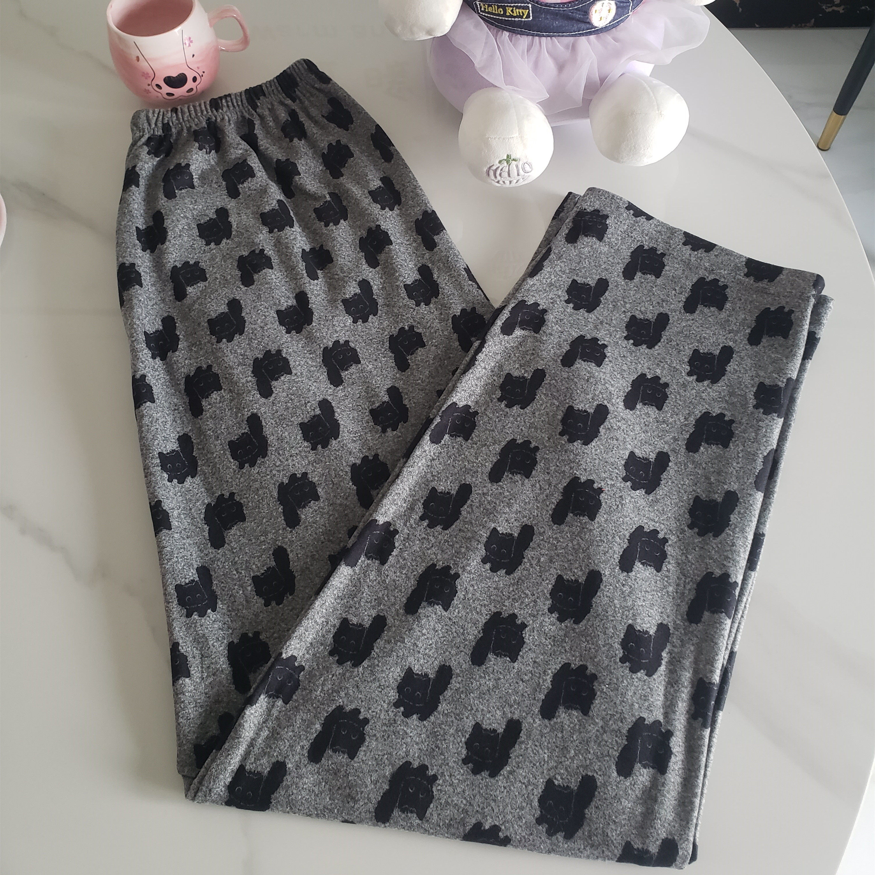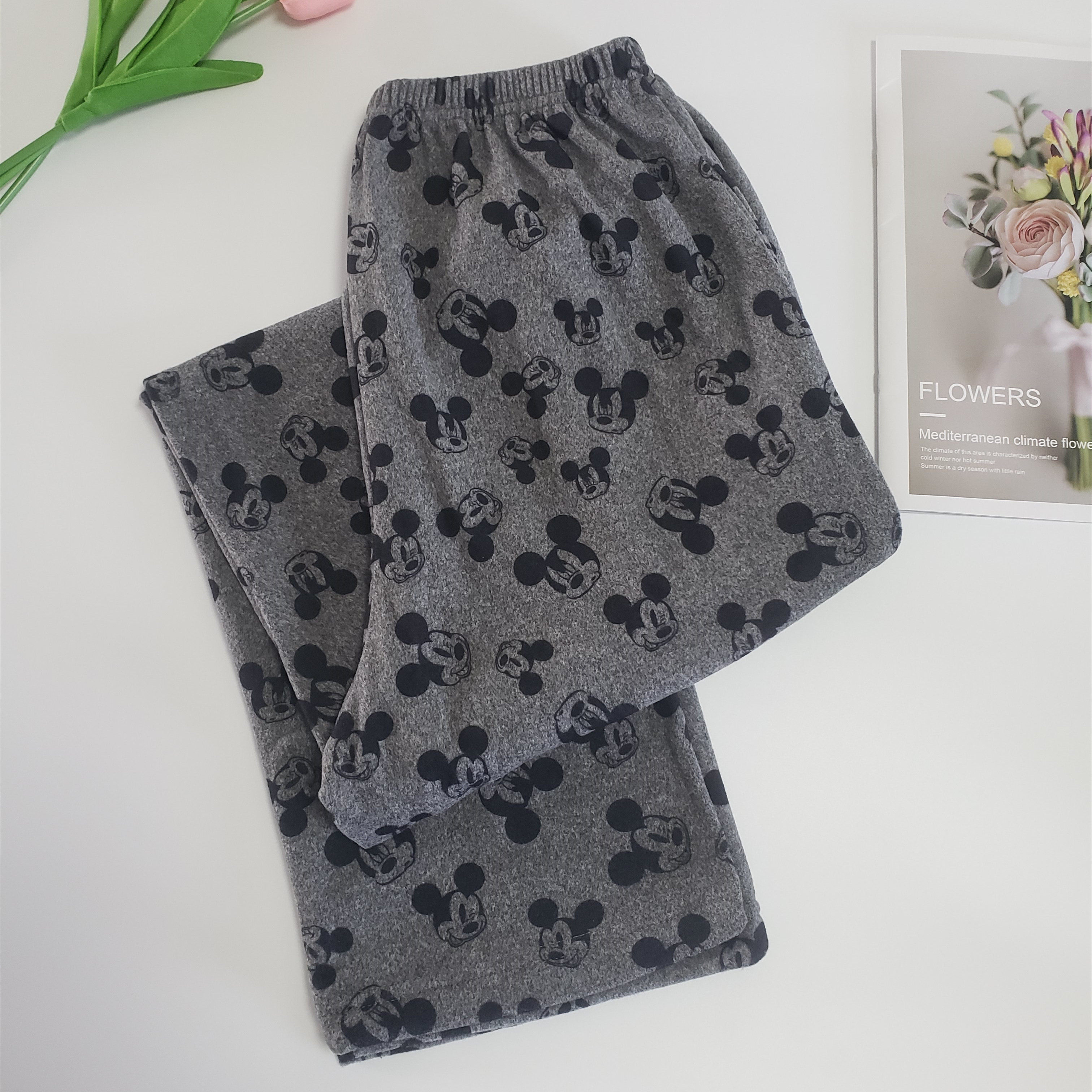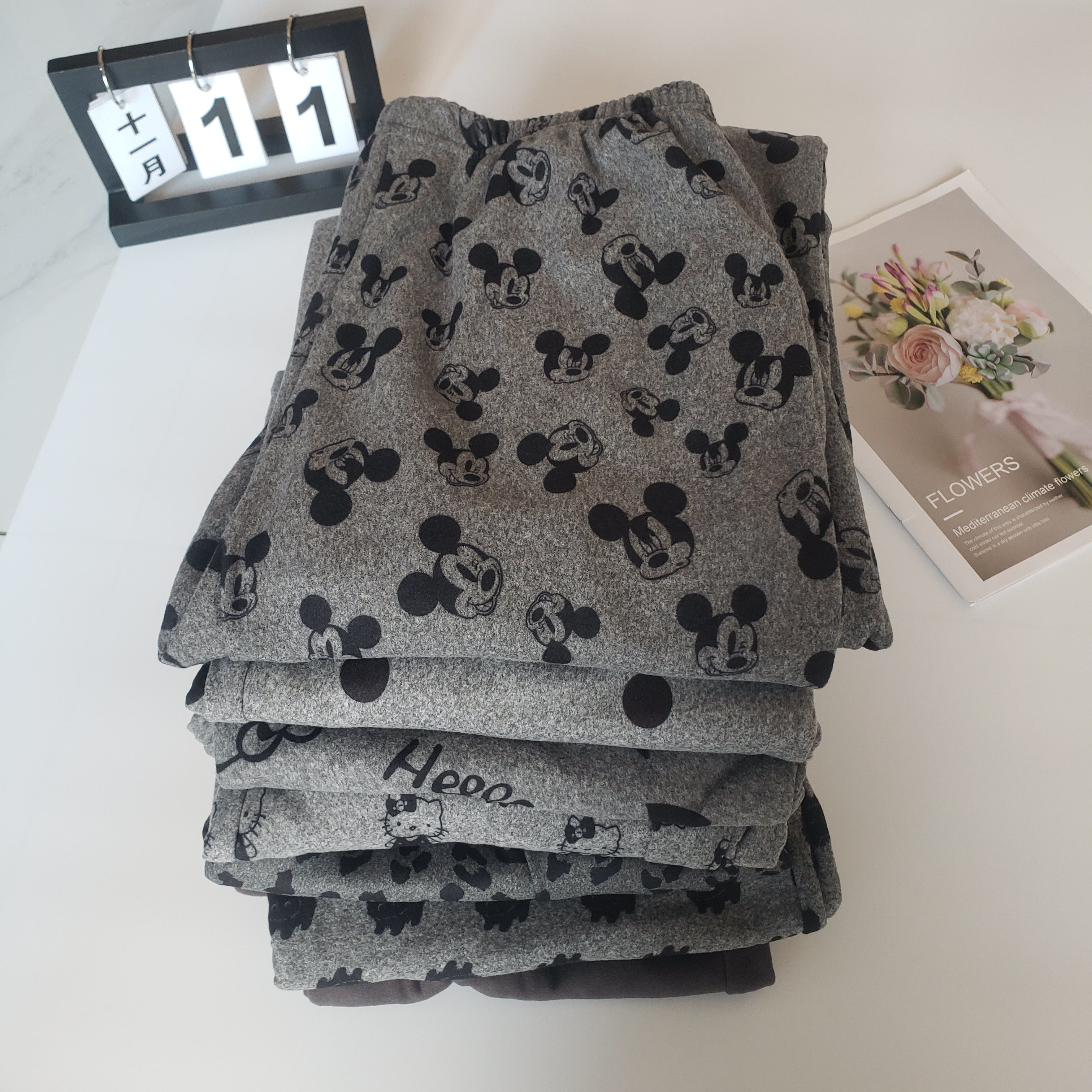 Autumn and Winter Thermal Velvet Pajama Pants for Women, Loose Straight-Leg Long Pants, Warm and Heat-Generating, Thin Velvet Home Pants, Cartoon Warm Pants