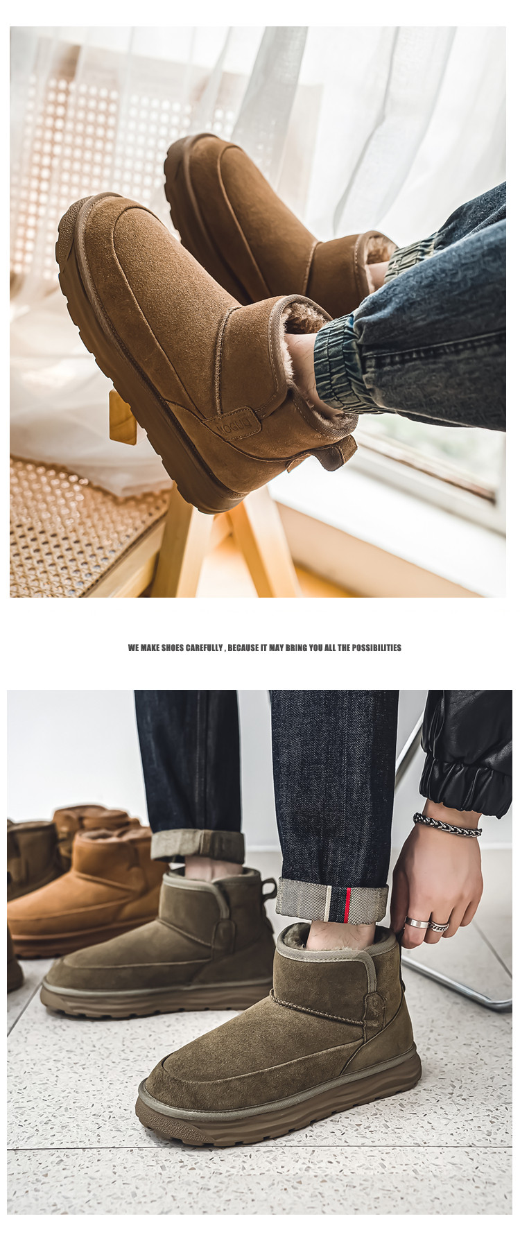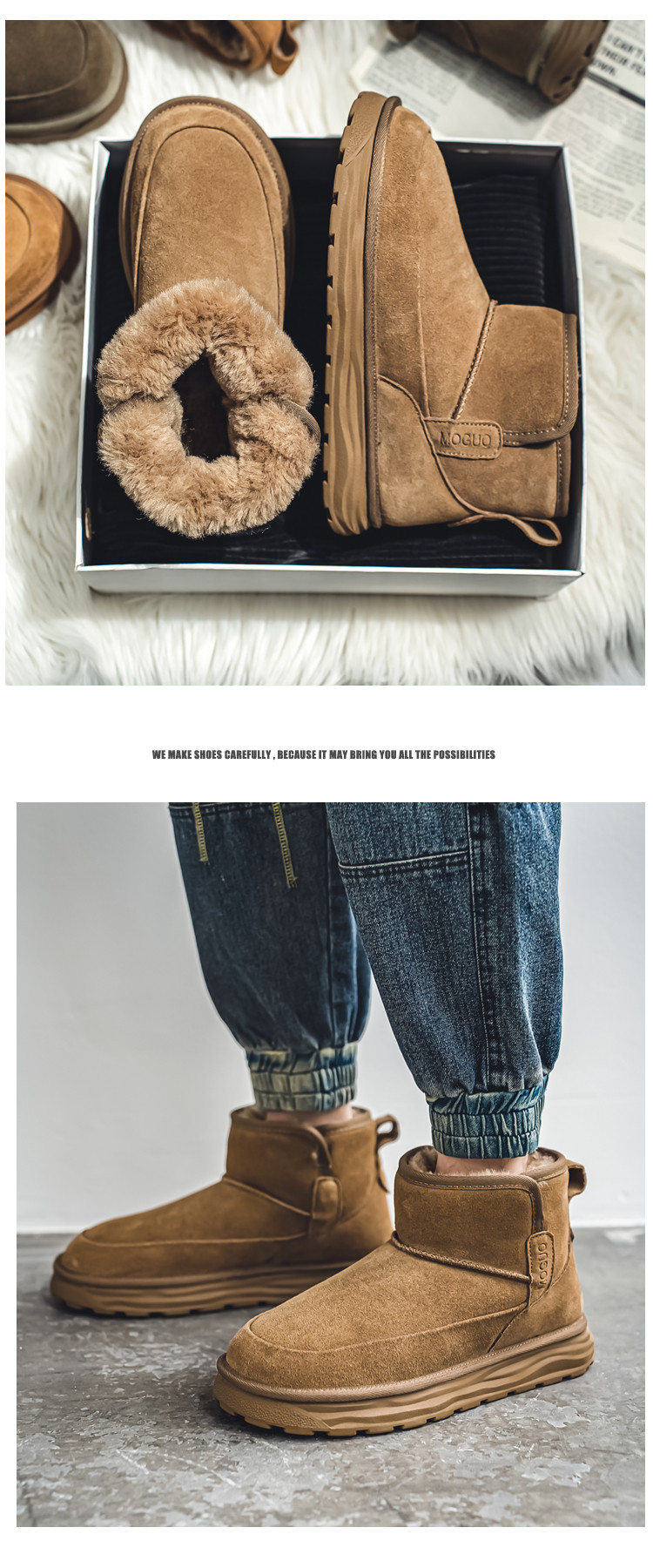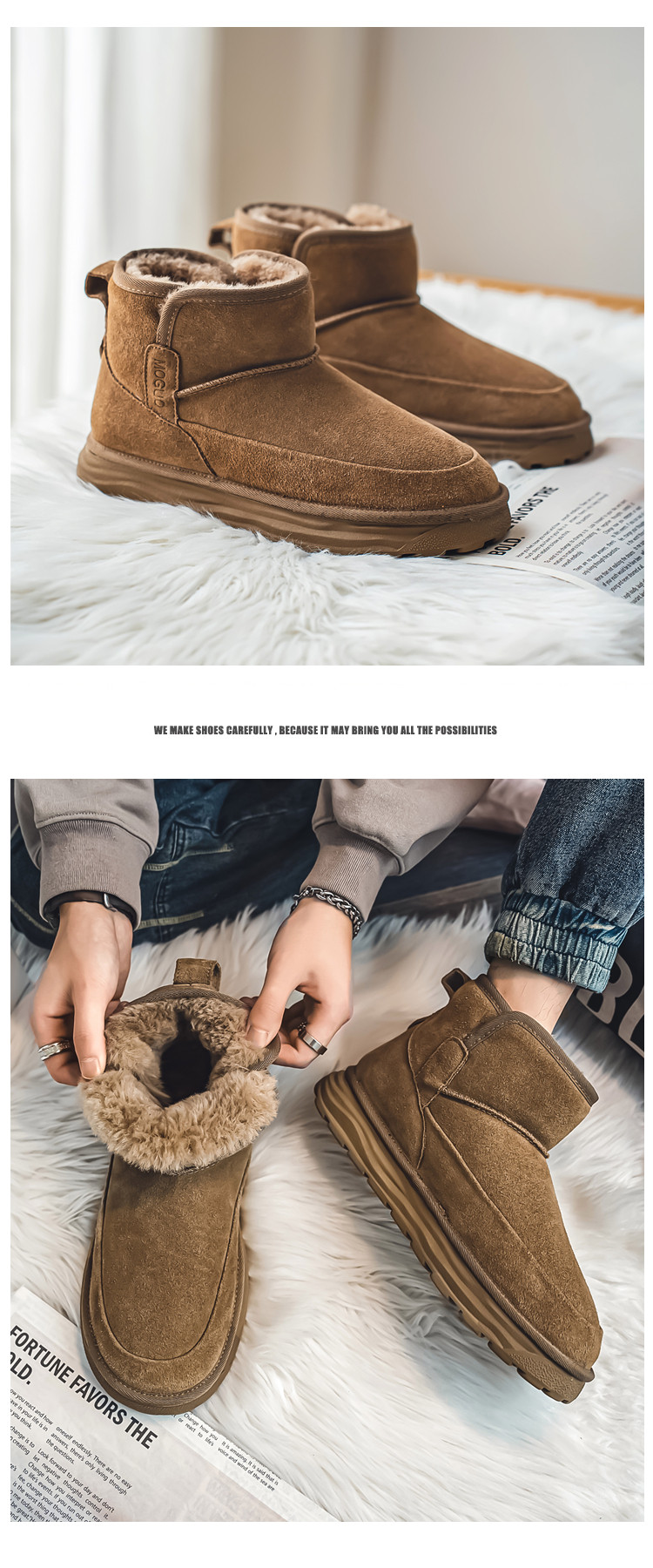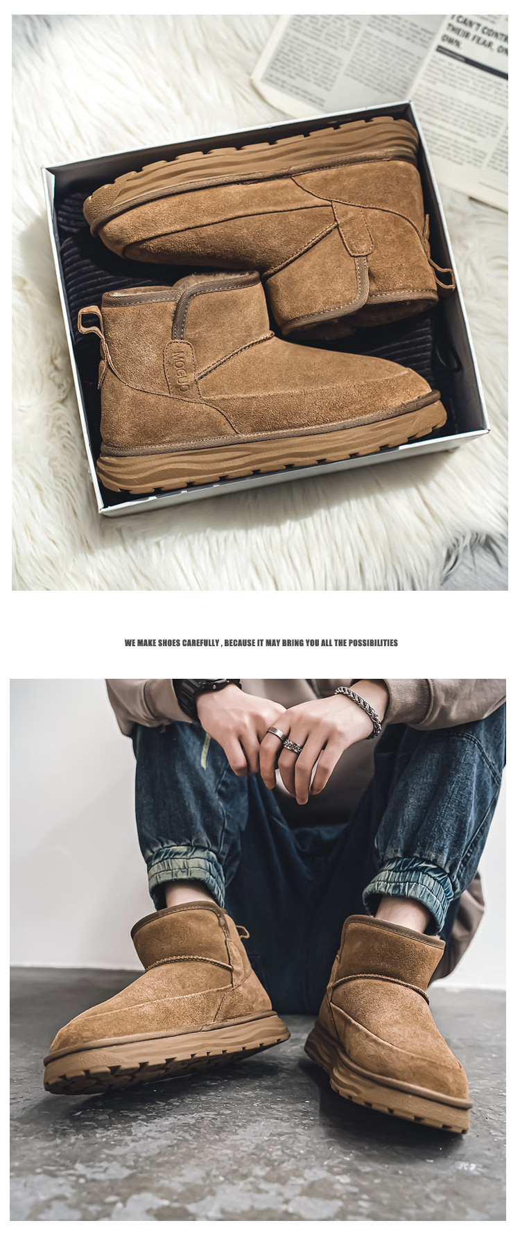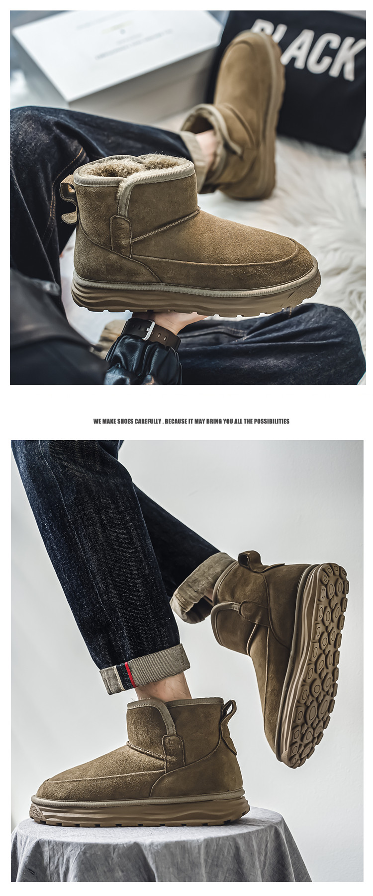 Men's Snow Boots, Northeast Cold-Resistant, Non-Slip Loafers, Trendy Genuine Leather High-Top Winter Shoes, Fleece-Lined, Thickened, Warm Large Cotton Shoes