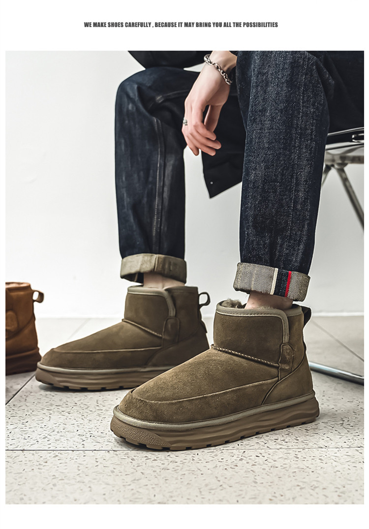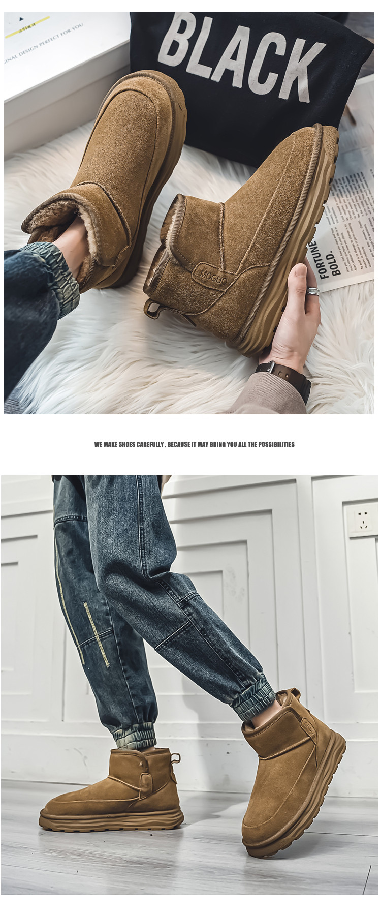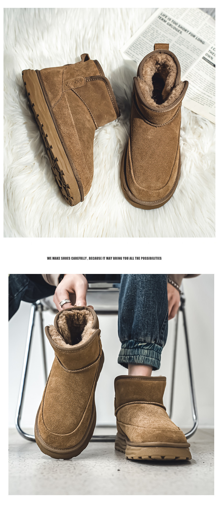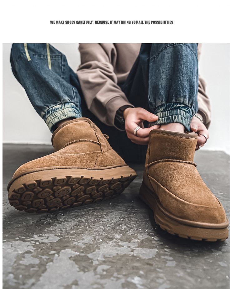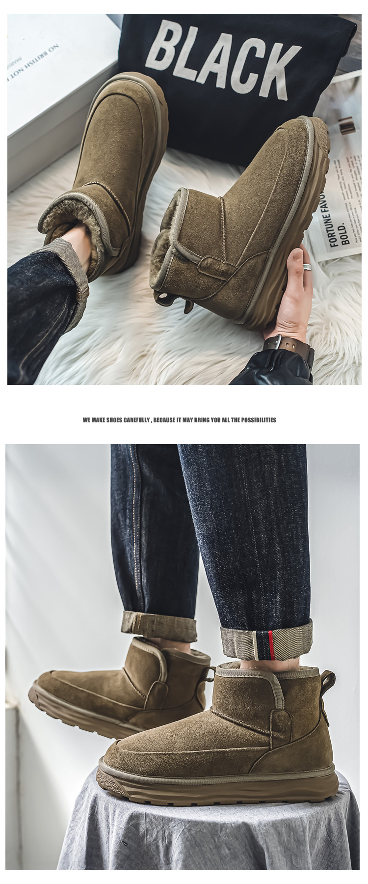 Men's Snow Boots, Northeast Cold-Resistant, Non-Slip Loafers, Trendy Genuine Leather High-Top Winter Shoes, Fleece-Lined, Thickened, Warm Large Cotton Shoes
