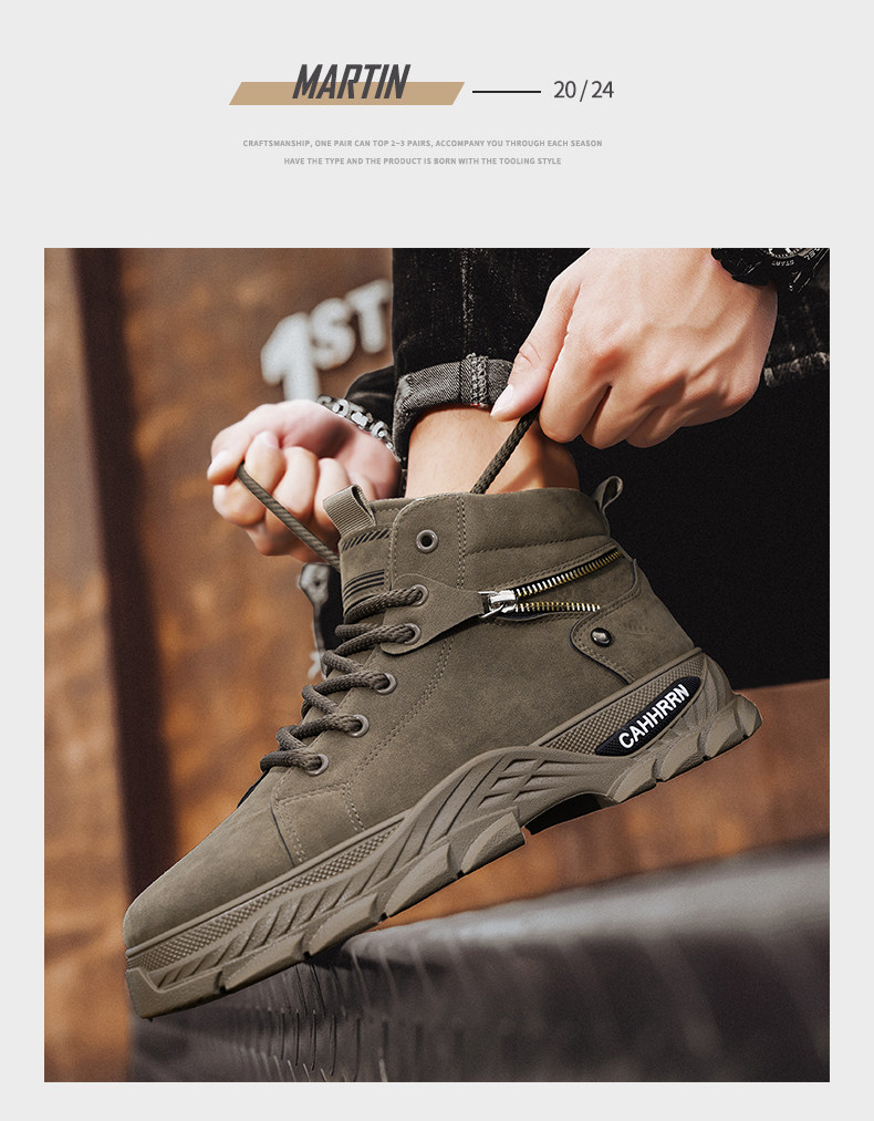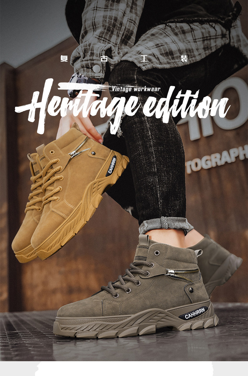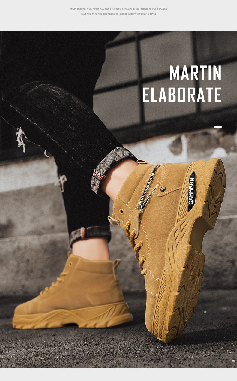 Martin boots men's high-top autumn and winter 2025 new British style rhubarb leather boots men's heightening sports mid-top work shoes