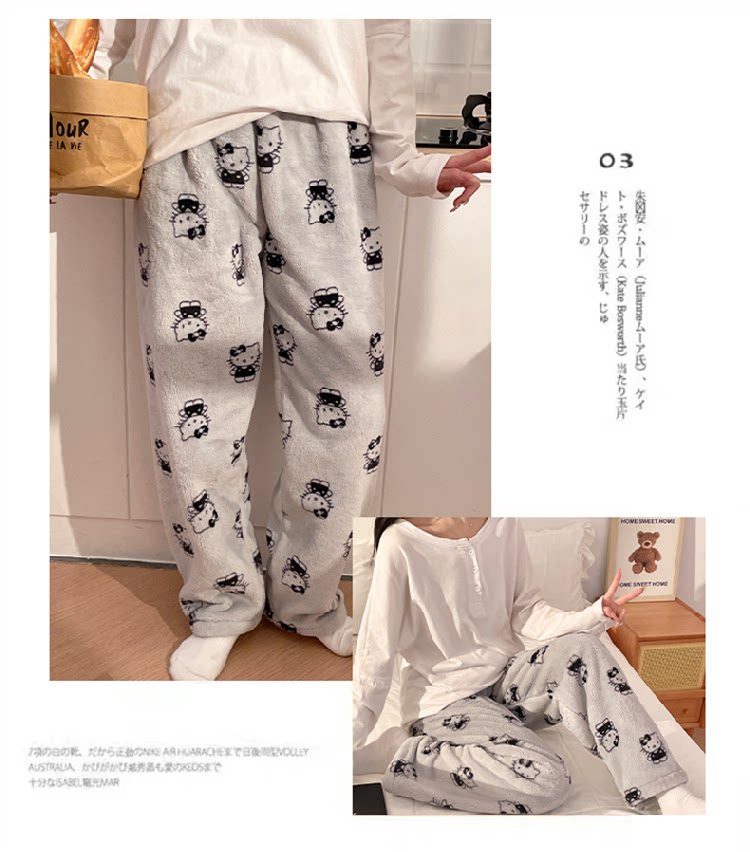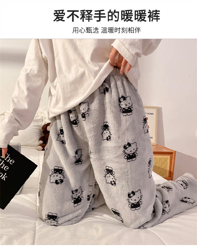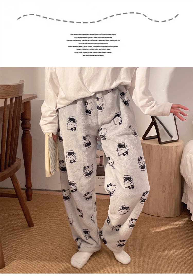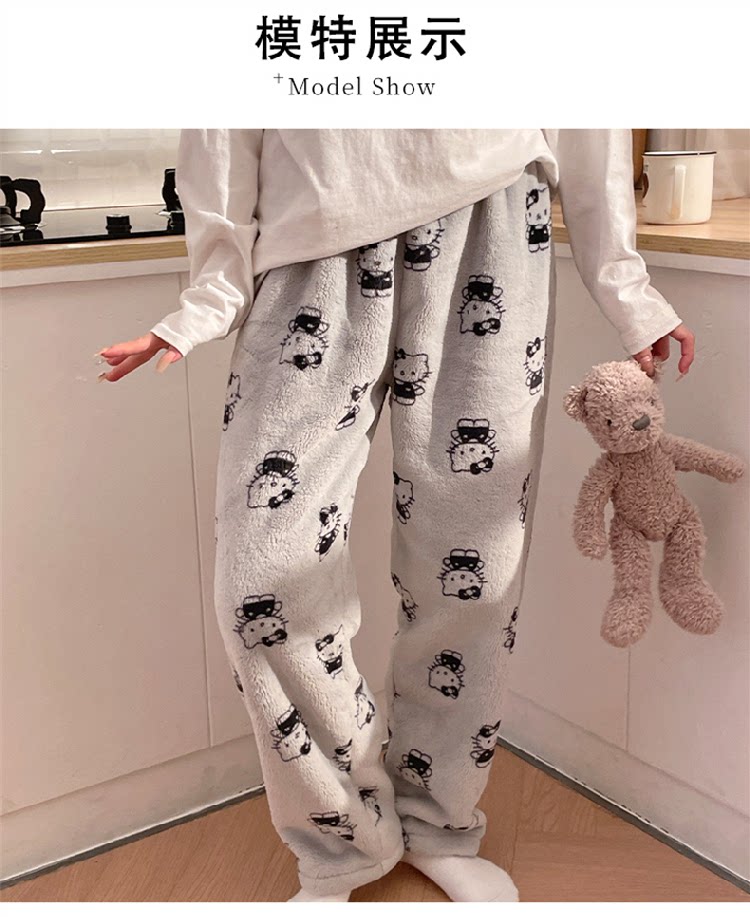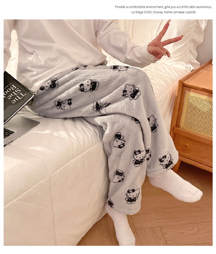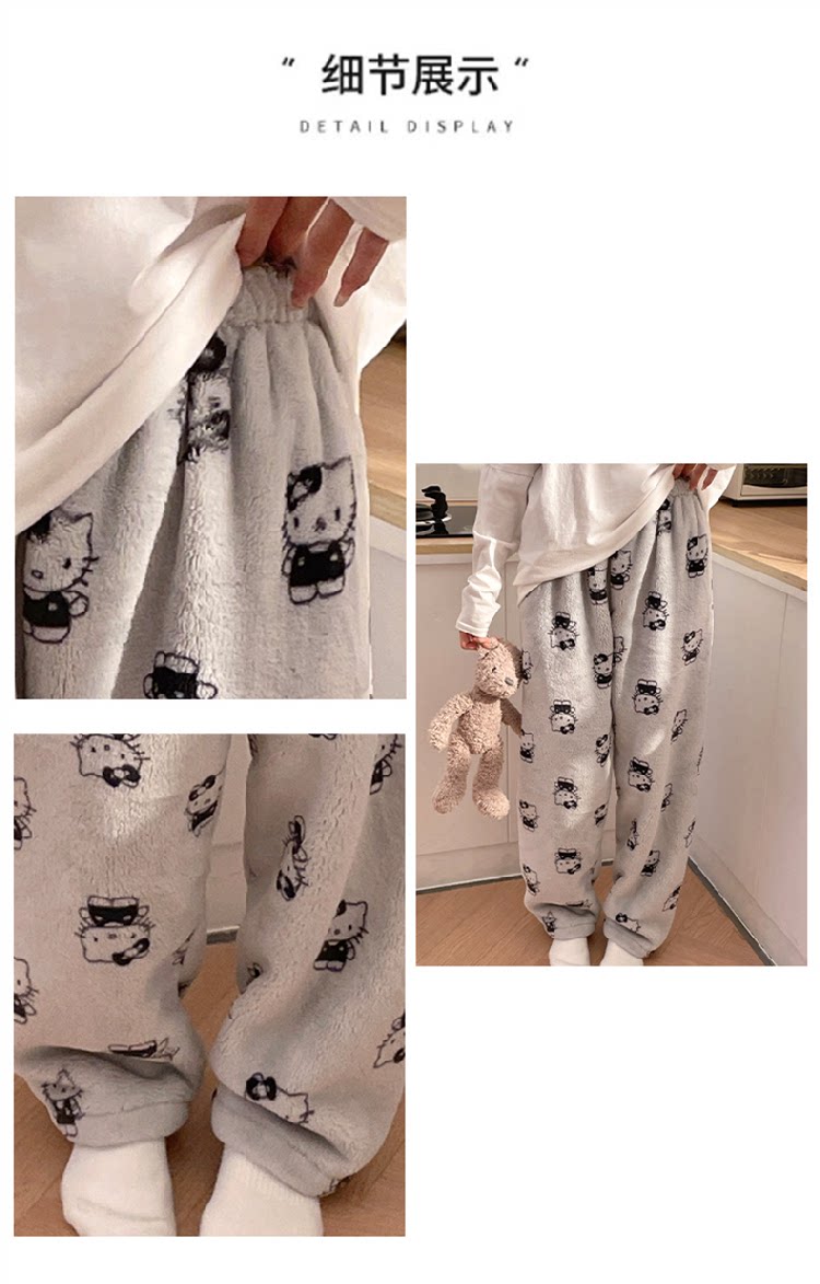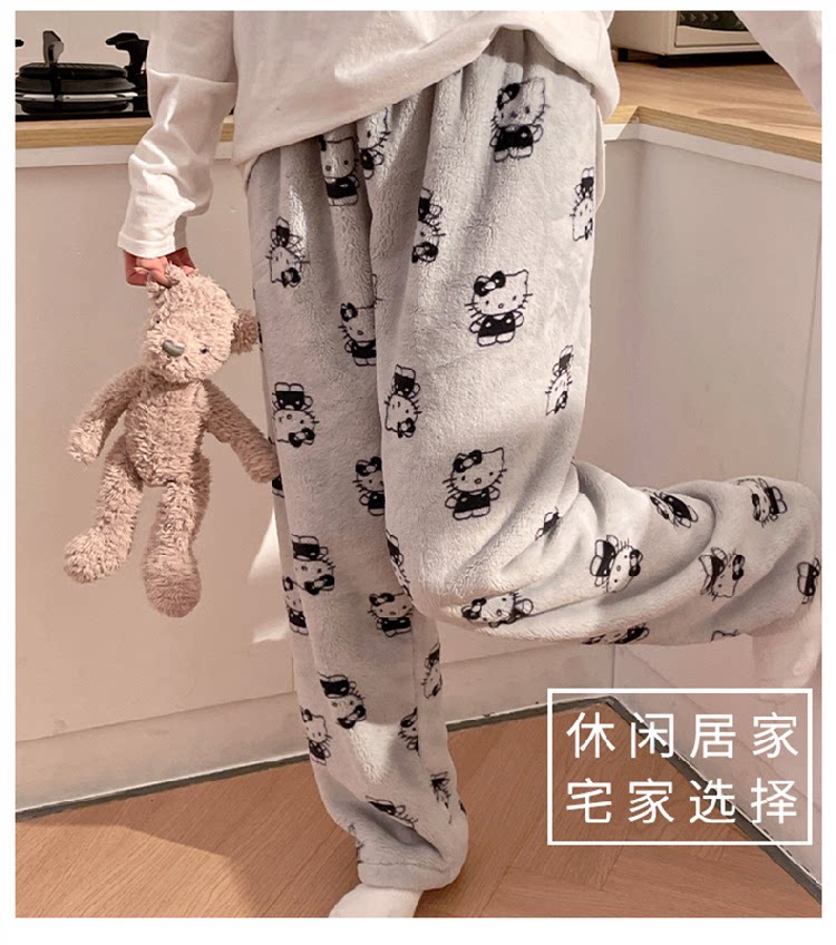 Flannel Pajama Pants for Women, Autumn and Winter, Fleece-Lined, Thickened, Warm Long Pants, Cartoon Warm Pants, Coral Fleece Casual Home Pants