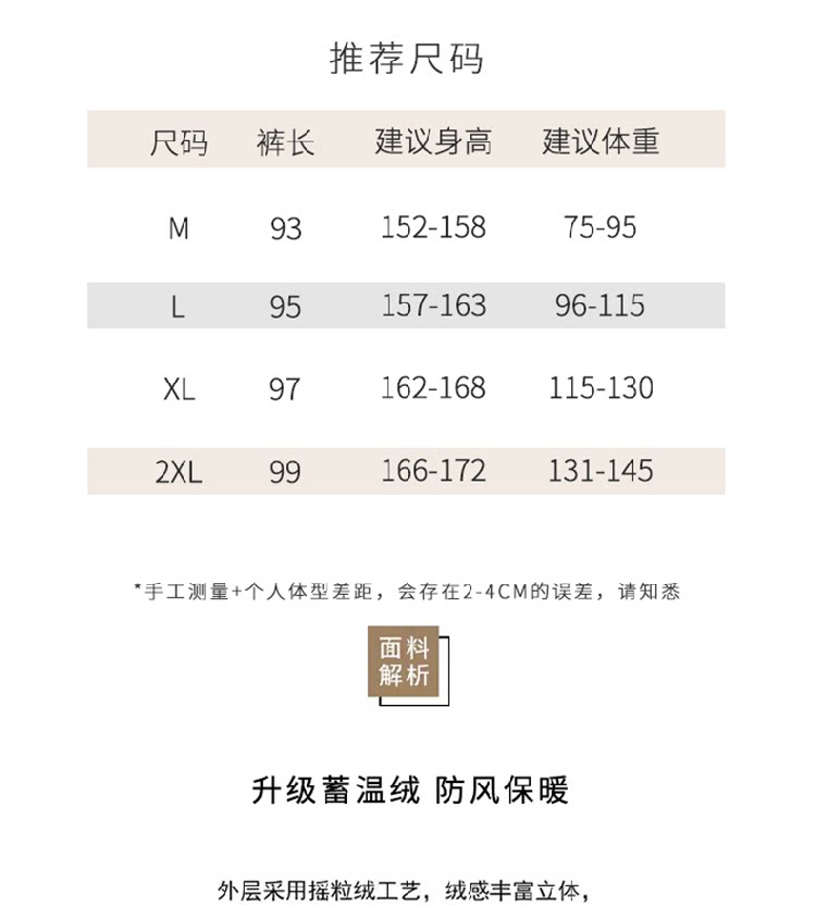 Outseam (cm) 99 cm 101.5 cm 104 cm 106.5 cm 109 cm