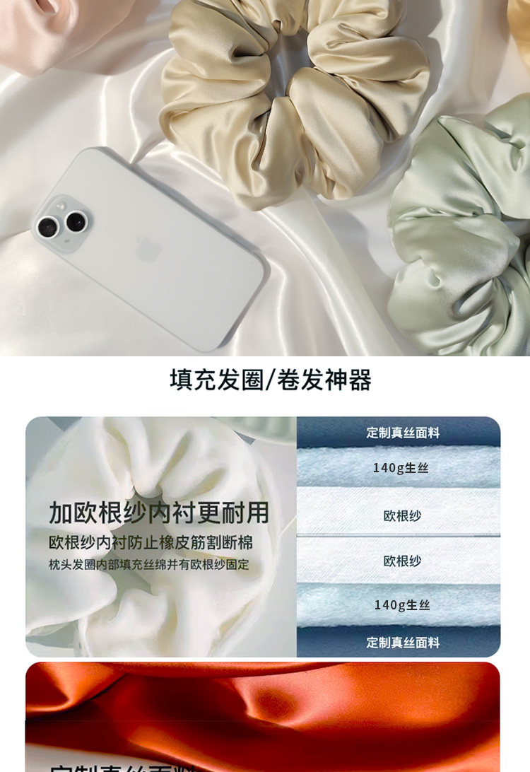 [30Mm Silk Hair Tie]Mulberry Silk + Organza + Mulberry Silk Filling Sleeping Pillow Extra Large Hair Tie