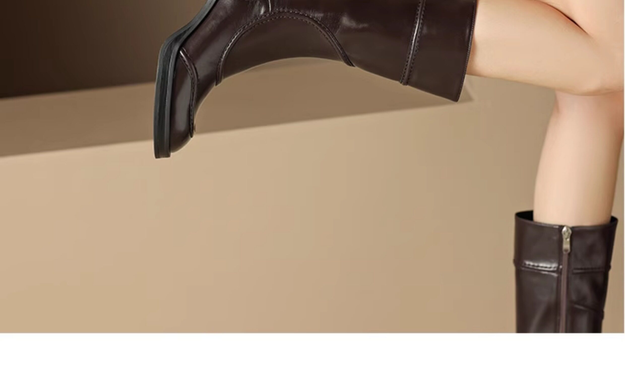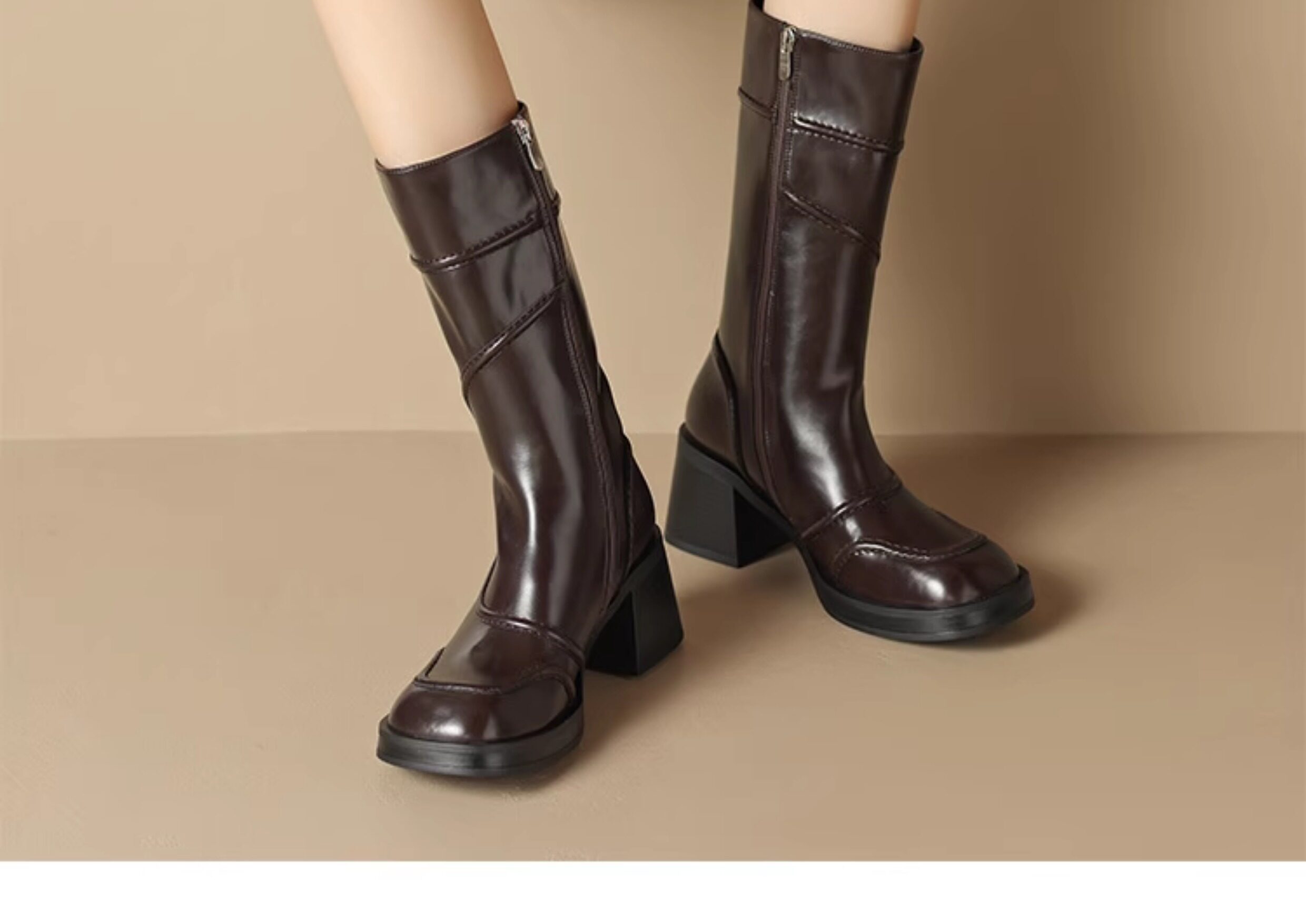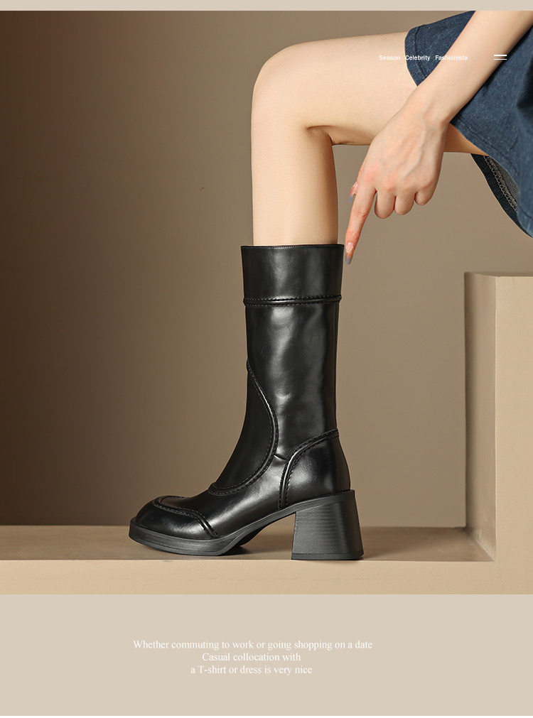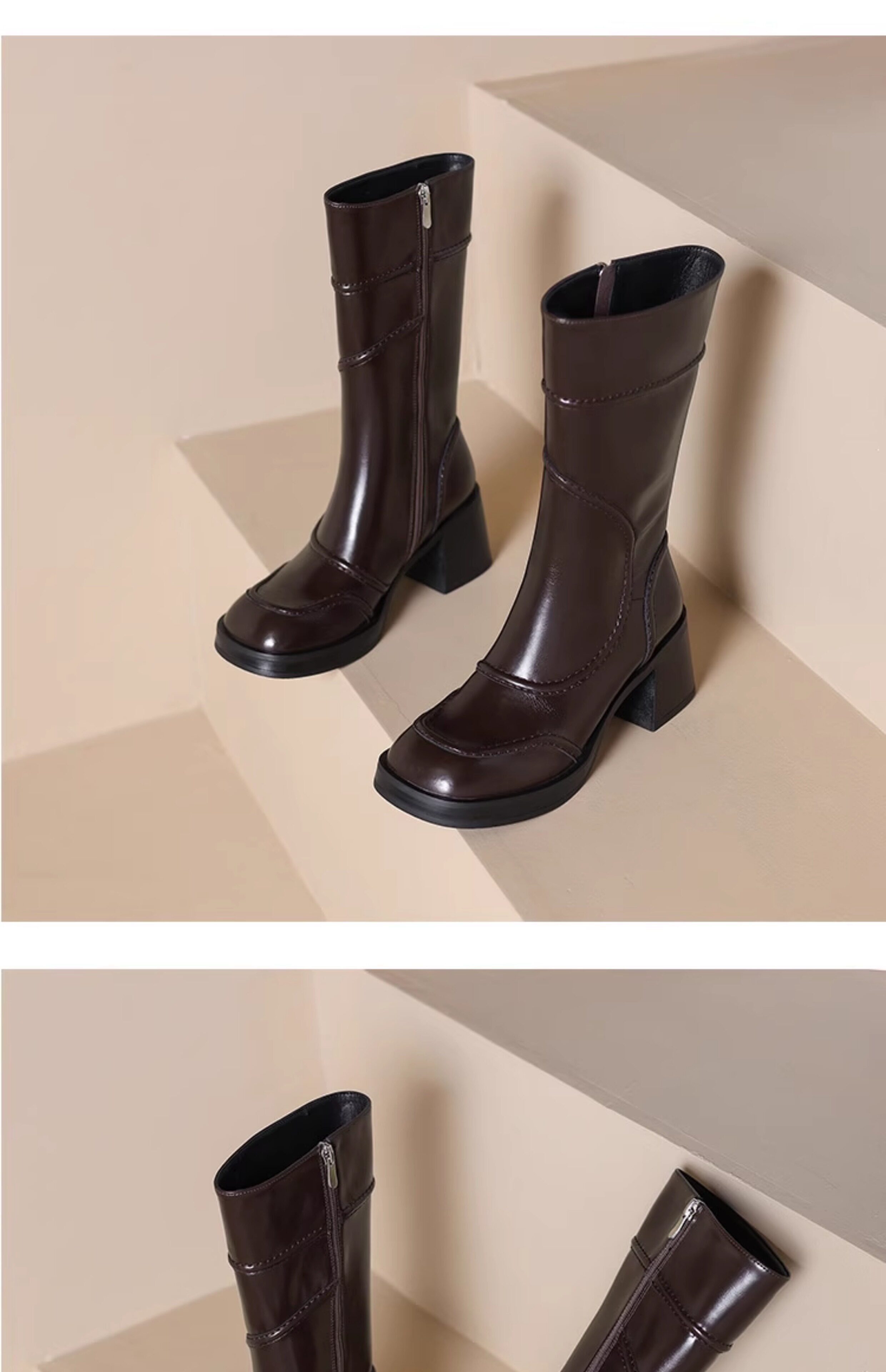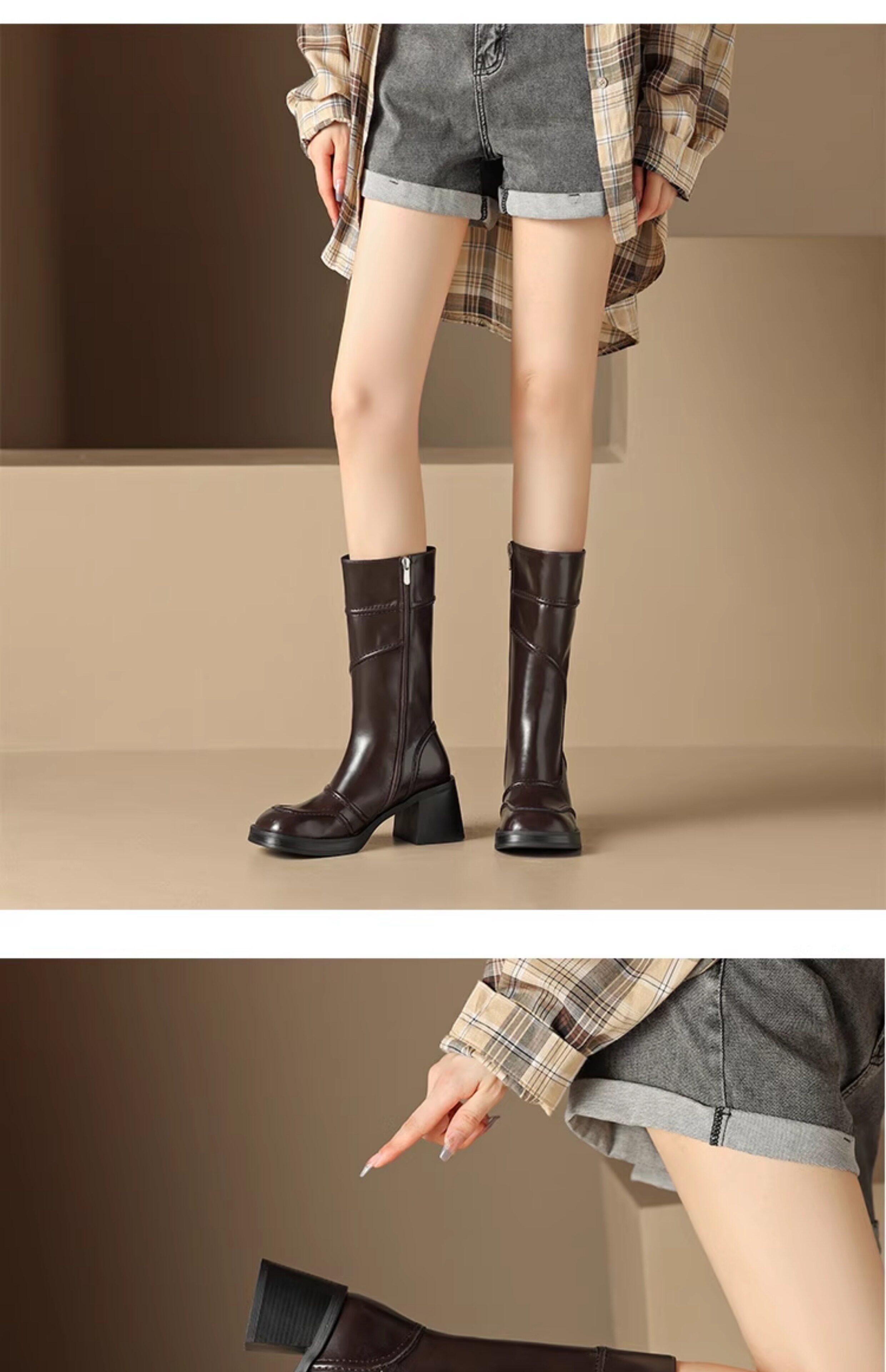Genuine Leather Mid-Calf Boots for Women 2026 New Popular Style Slimming Martin Boots Chunky Heel Riding Boots Biker Boots Melard Style