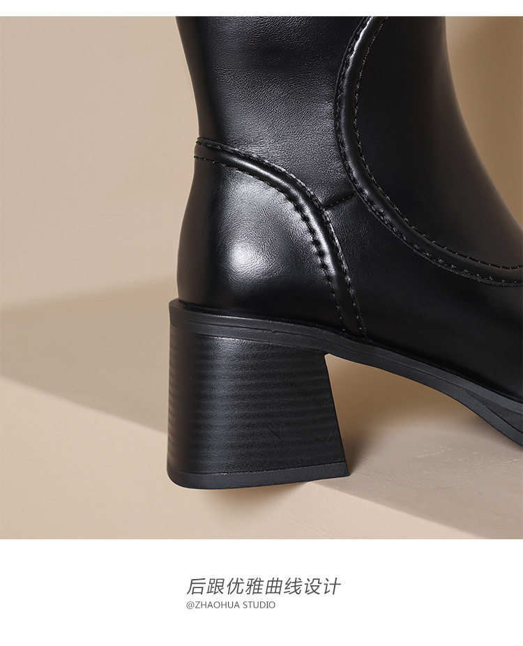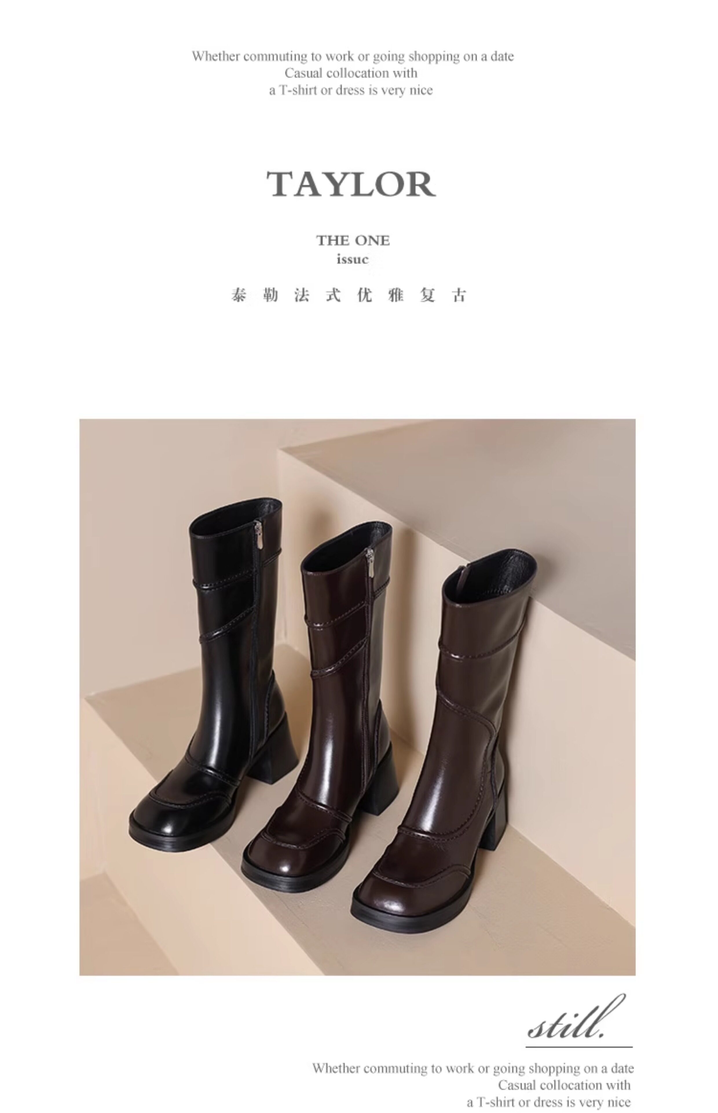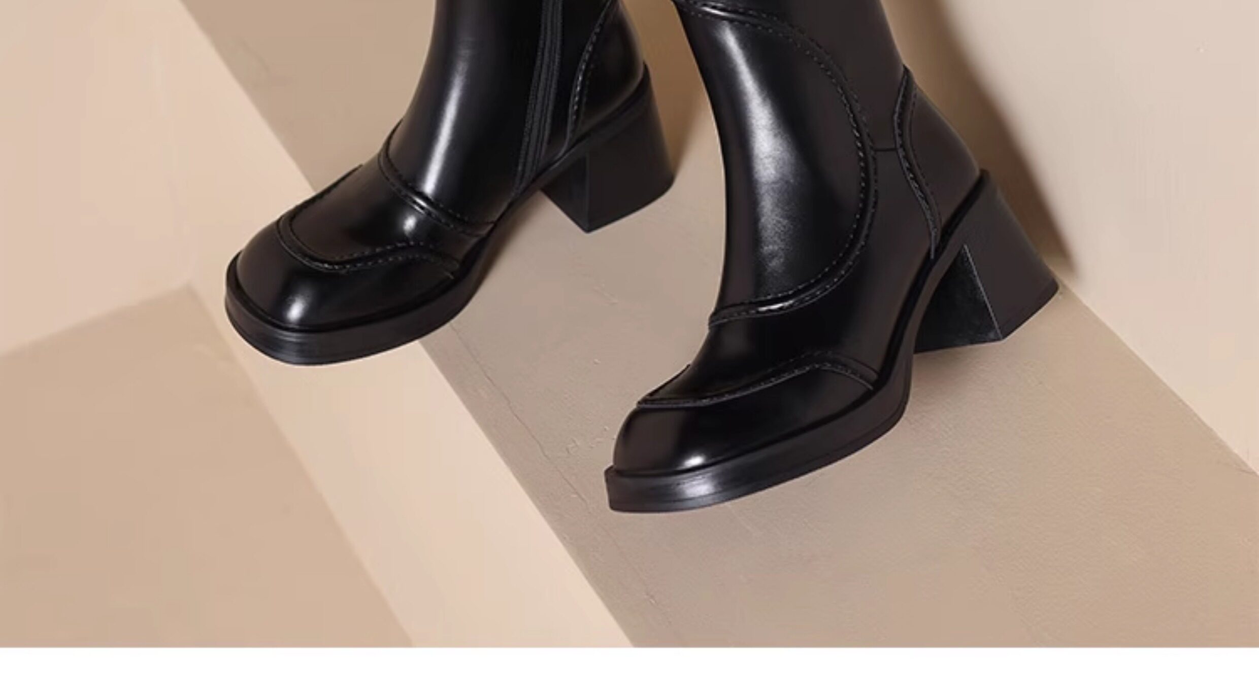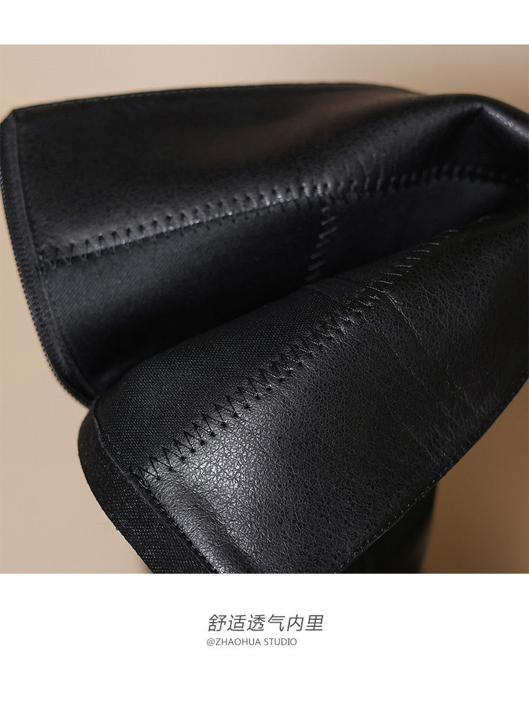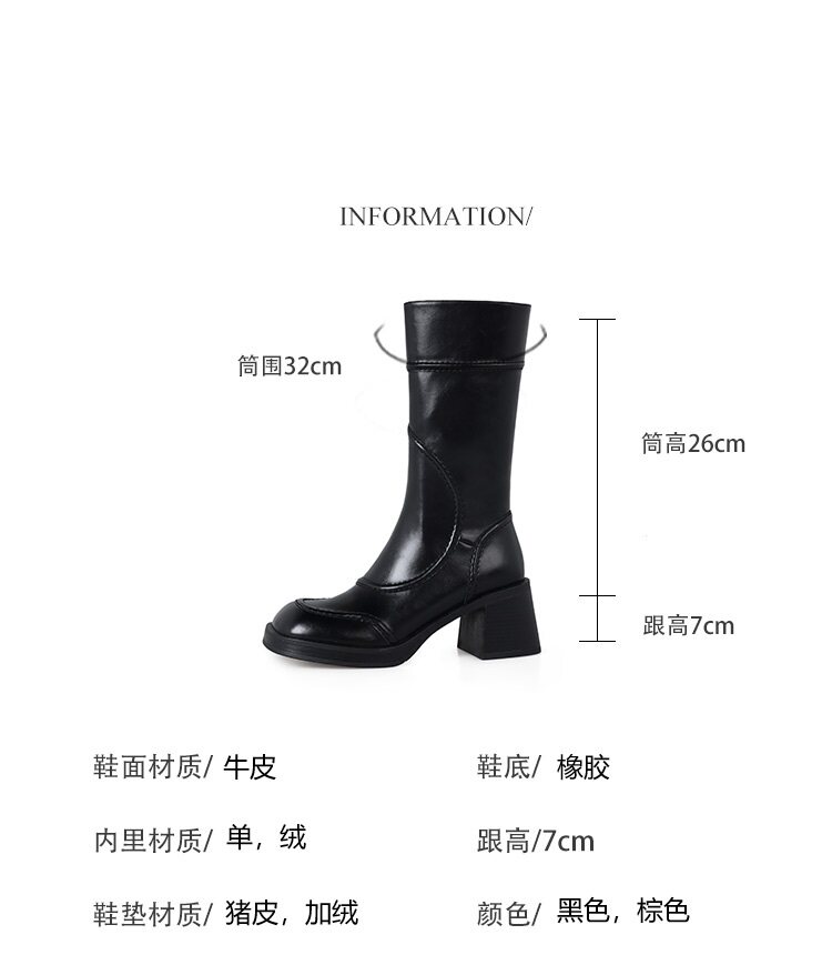 Genuine Leather Mid-Calf Boots for Women 2026 New Popular Style Slimming Martin Boots Chunky Heel Riding Boots Biker Boots Melard Style