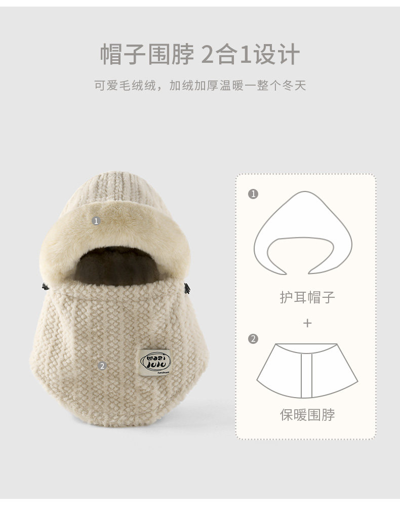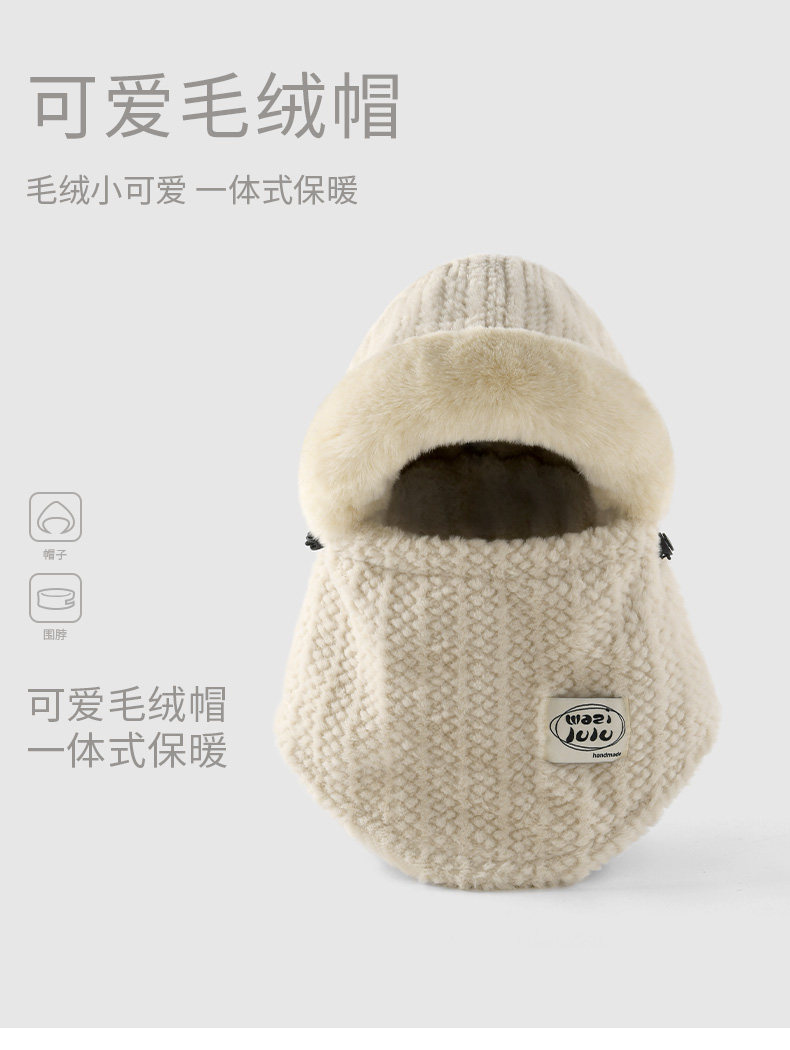 Coso Cute Thick Plush Hat and Scarf Combo for Women, Autumn and Winter Korean Style, Warm Ear Protection Neck Warmer for Cycling and Cold Protection