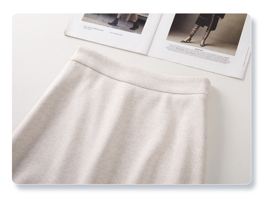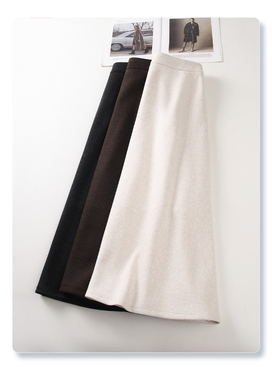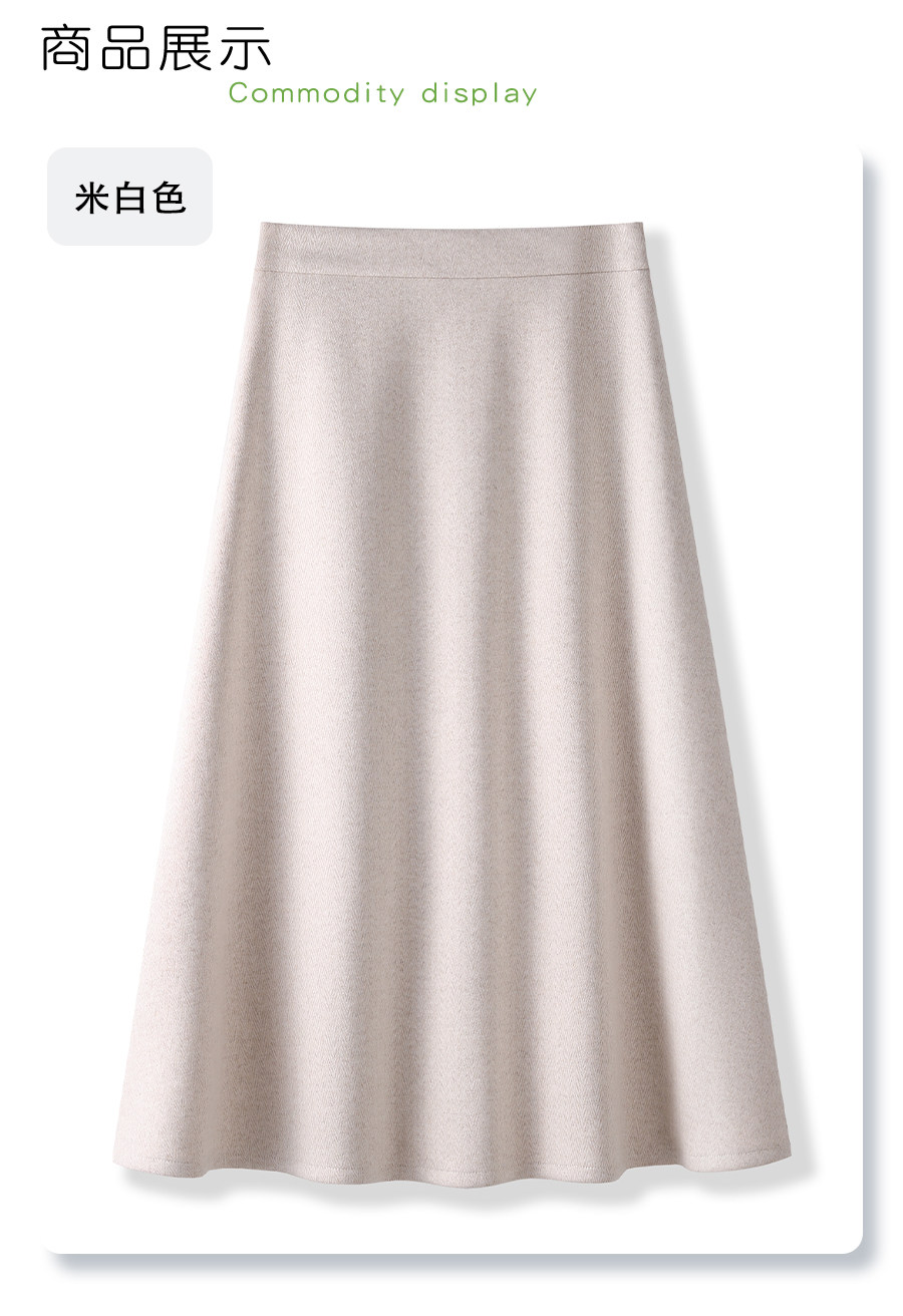 White woolen skirt for women 2025 new autumn high-waisted A-line skirt mid-length umbrella skirt high-waisted slim skirt