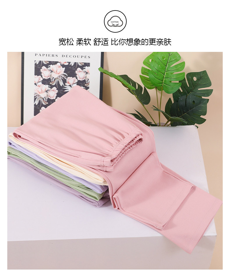 Pure Cotton Pajamas, Women's Pajamas, Autumn and Winter Casual Pure Color Flap Pocket Pants Pants, Spring & Fall Thin Cotton Can Be Worn Outside Home Pants