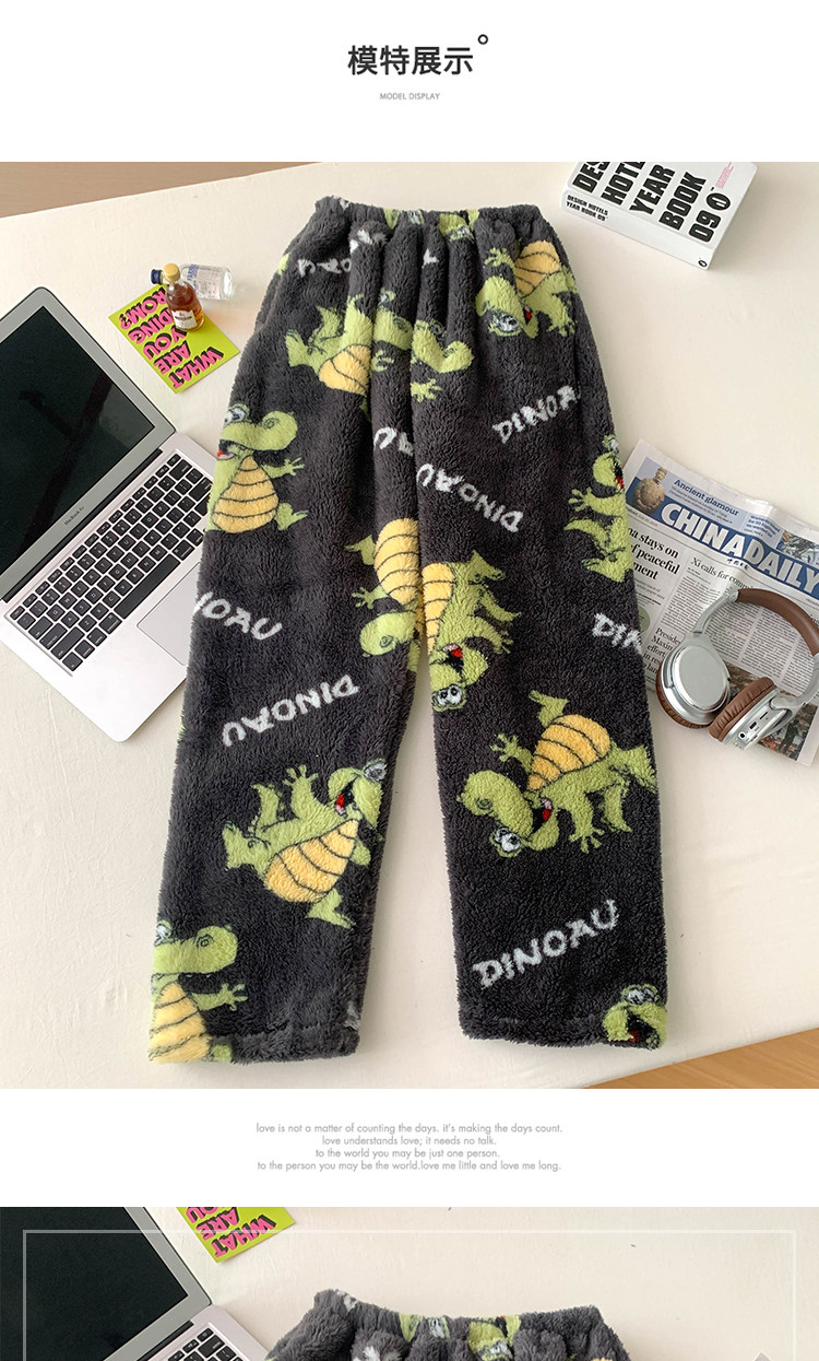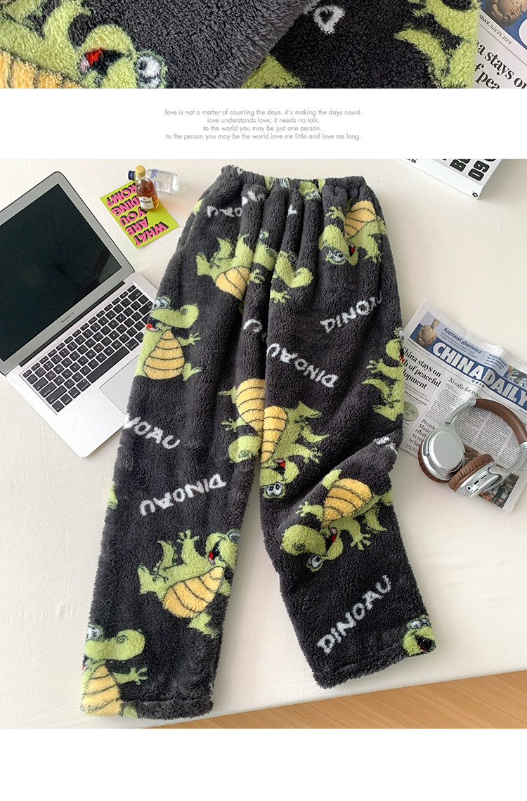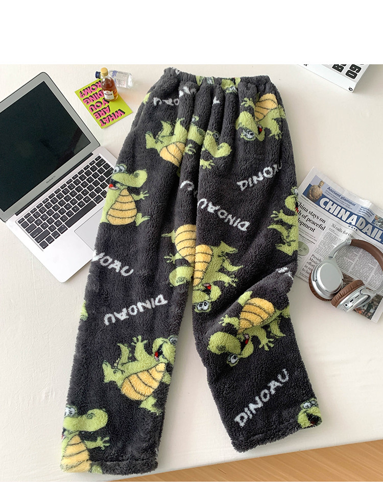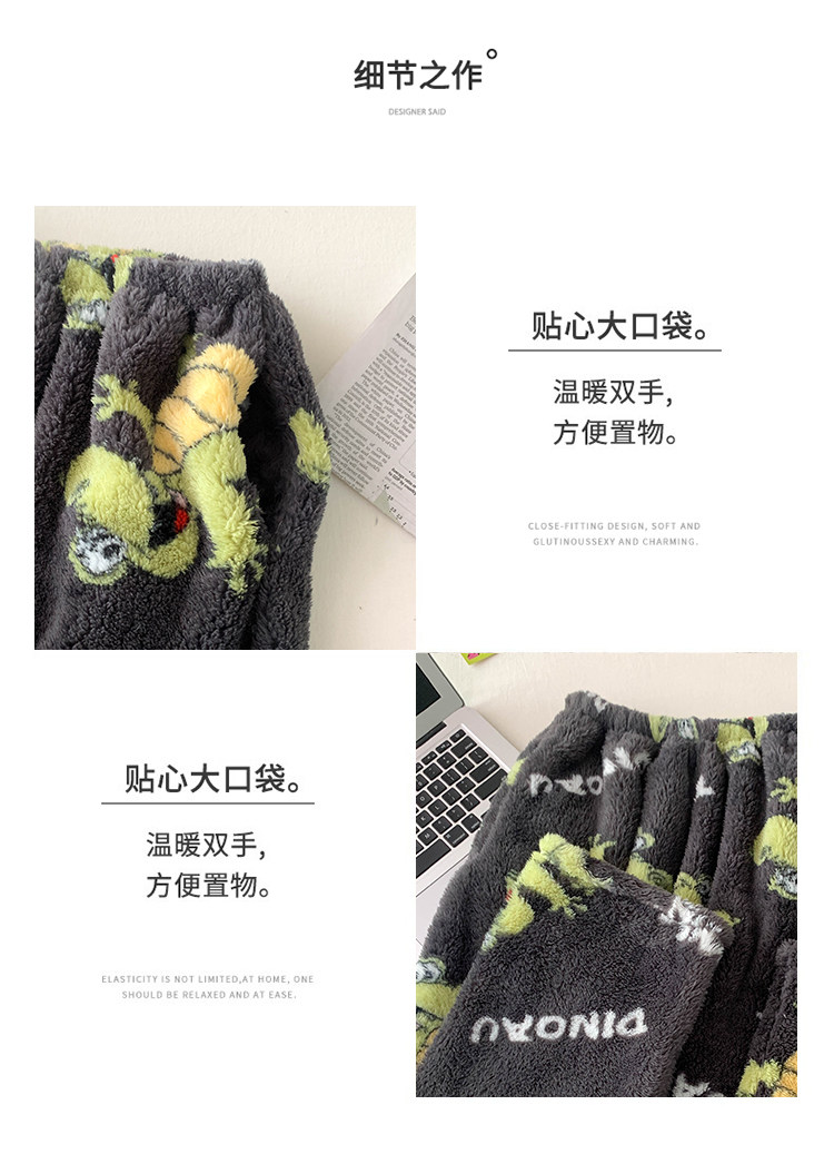 Thickened Flannel Pajamas for Men and Women in Autumn and Winter Loose Plus Size Warm Coral Velvet Home Pants Flap Pocket Pants Warm Pants