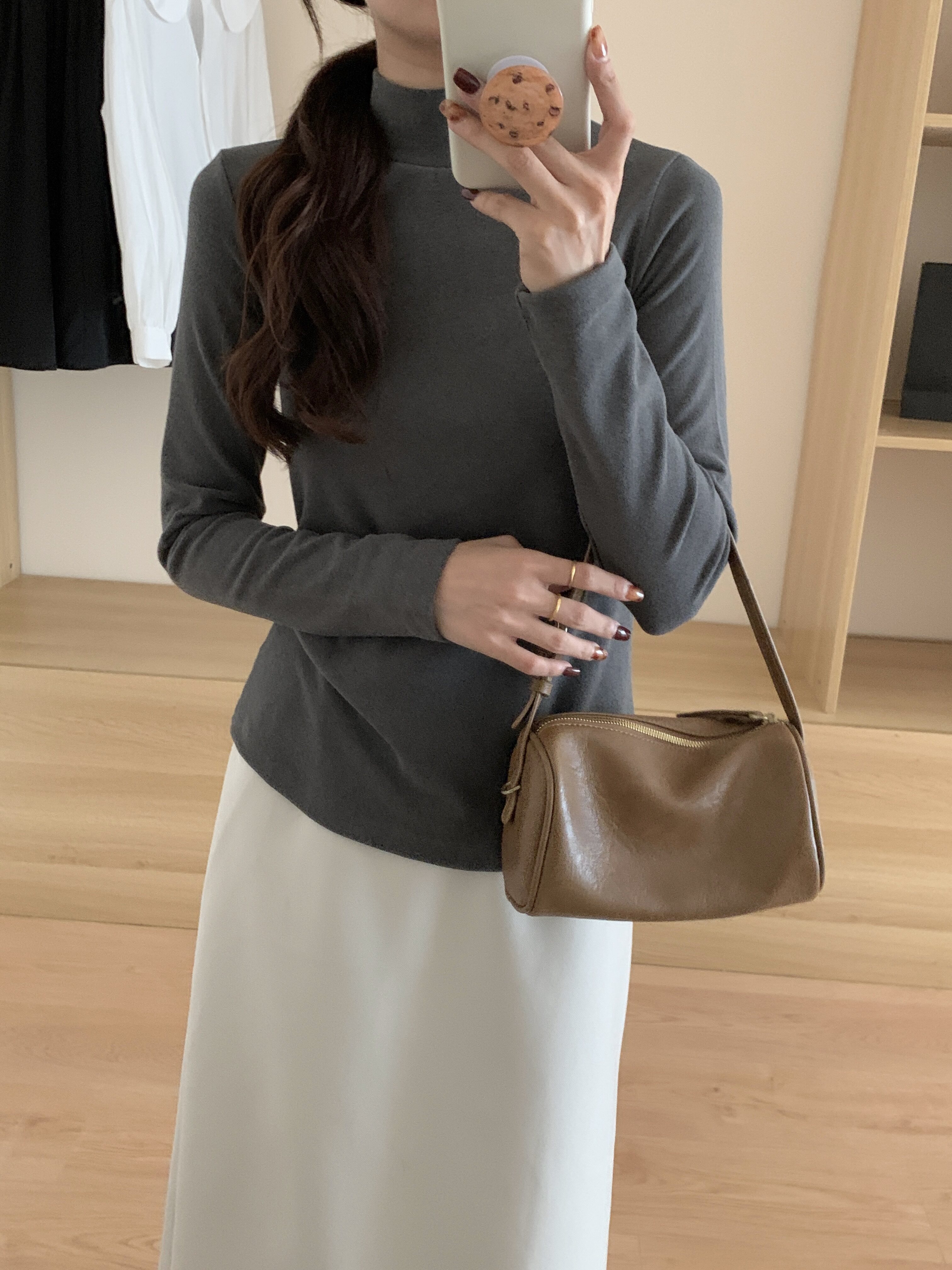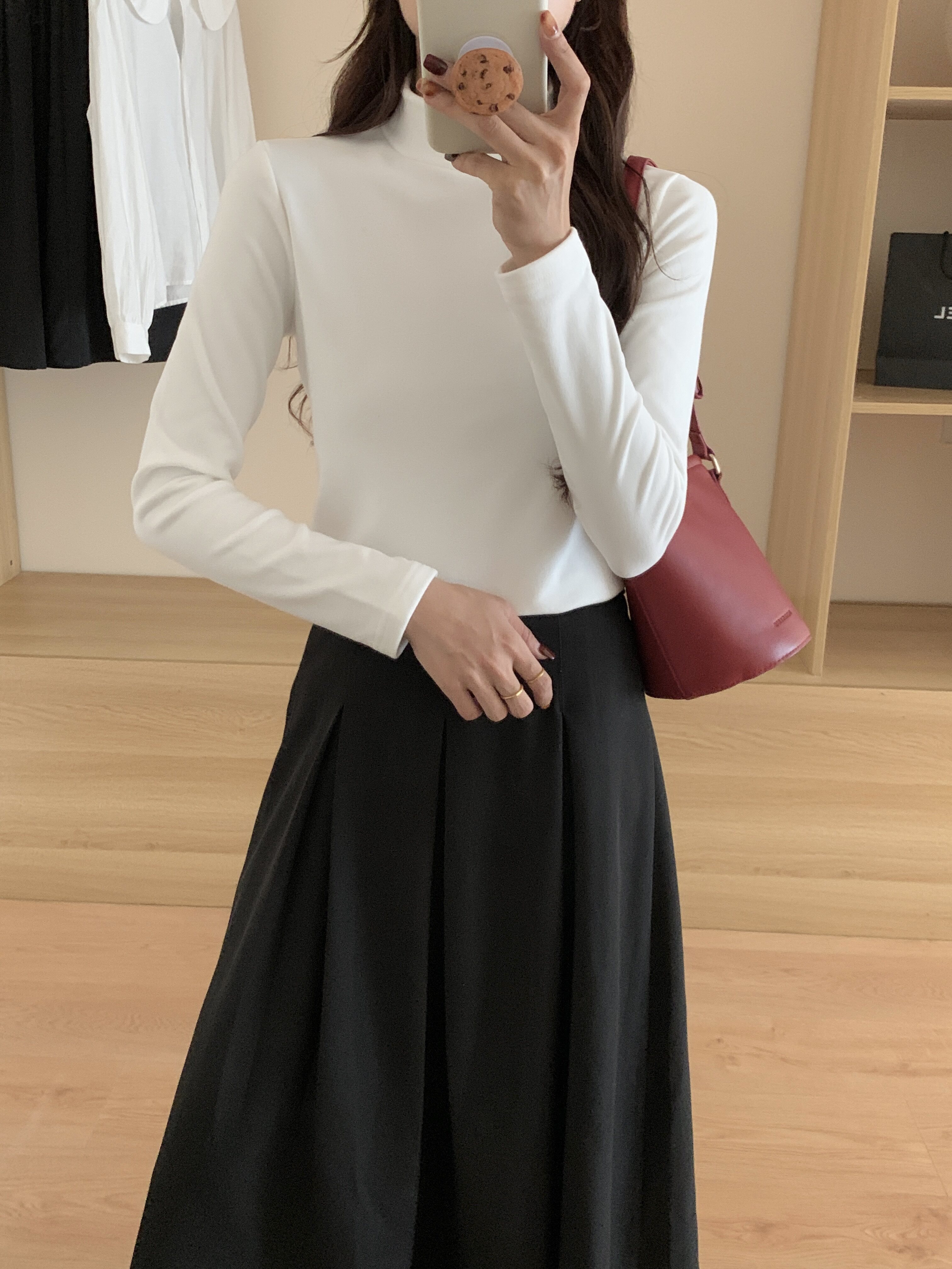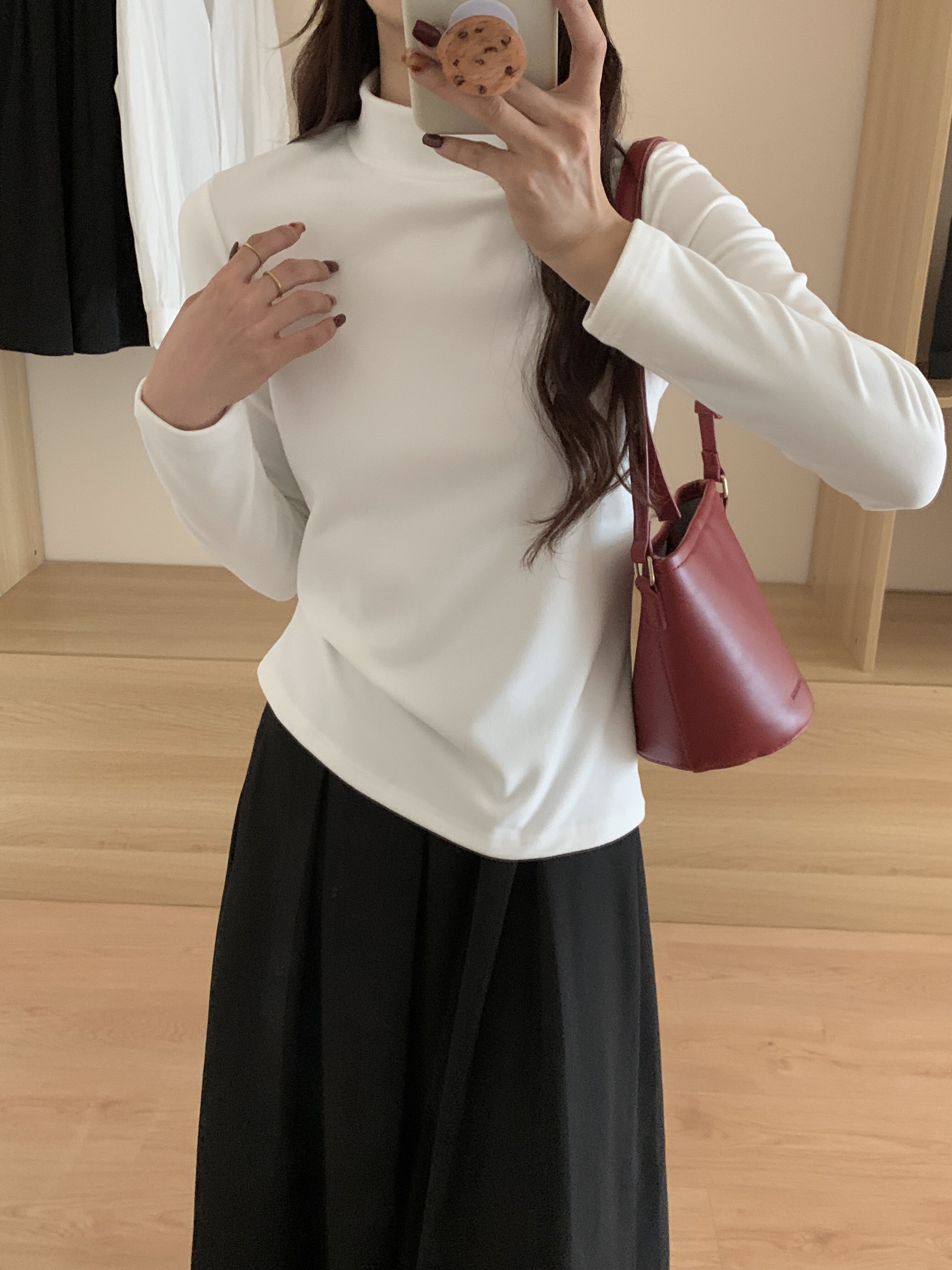 Double-sided brushed thickened warm long-sleeved T-shirt for women in autumn and winter slim-fitting half turtleneck bottoming shirt outer wear fleece top