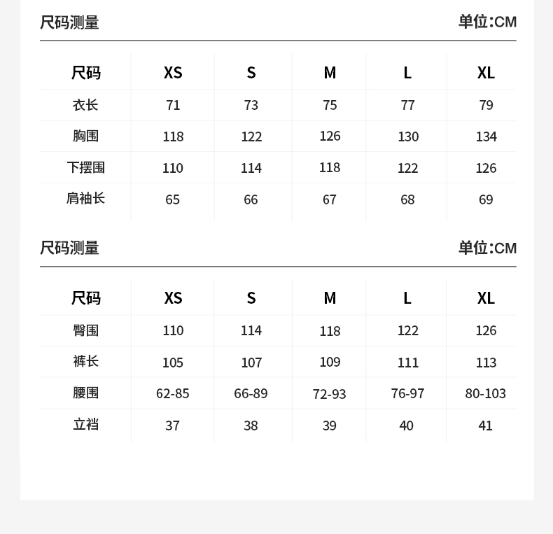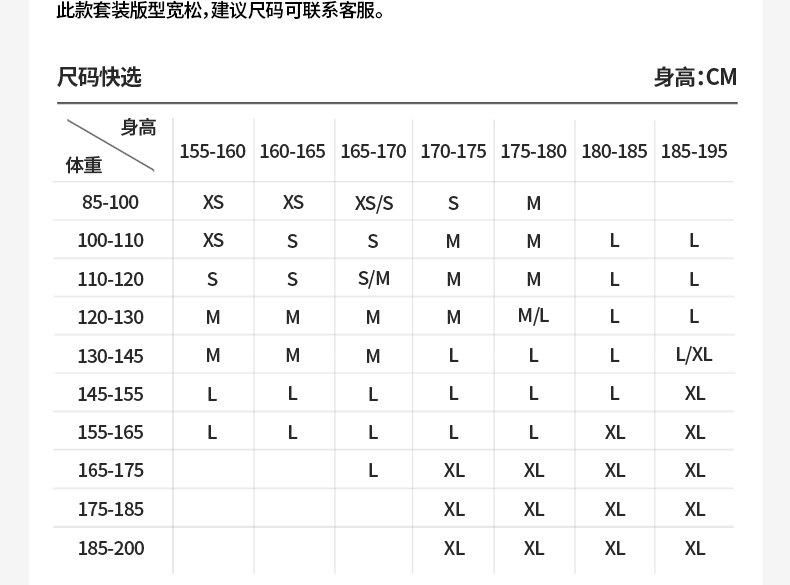 China (cm) 160-165/84-86 165-170 / 88-90 167-172 / 92-96 168-173 / 98-102 170-176 / 106-110