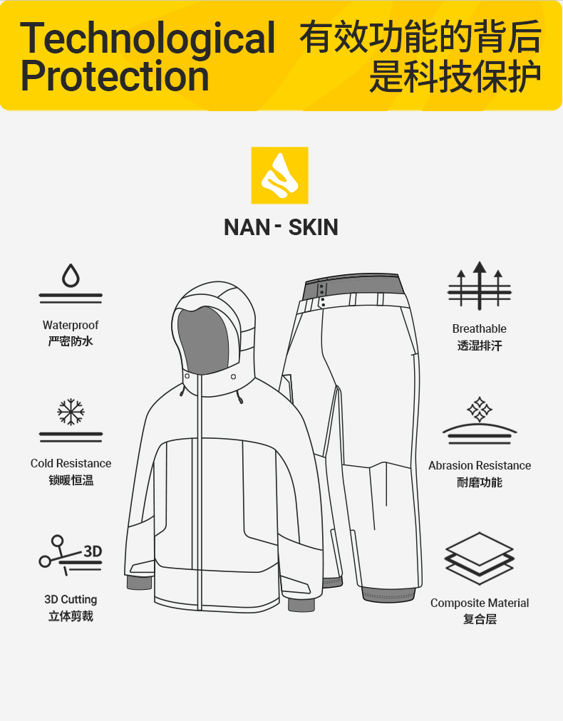 Nanend Nanen's New Breathable Loose-Fitting Ski Suit Set Is Waterproof, Windproof and Warm, Snowboard Clothing and Pants Set