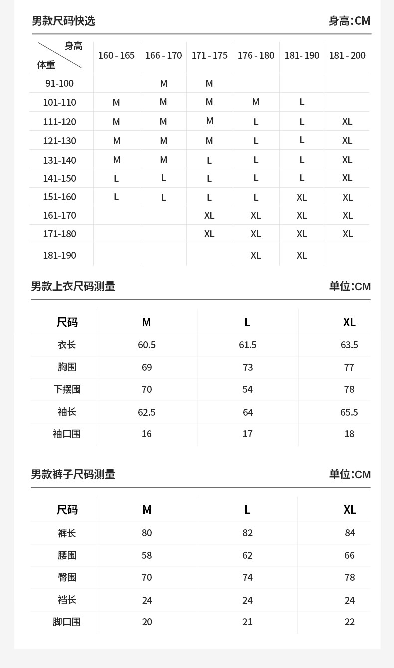 China (cm) 160-165/84-86 165-170 / 88-90 167-172 / 92-96 168-173 / 98-102 170-176 / 106-110