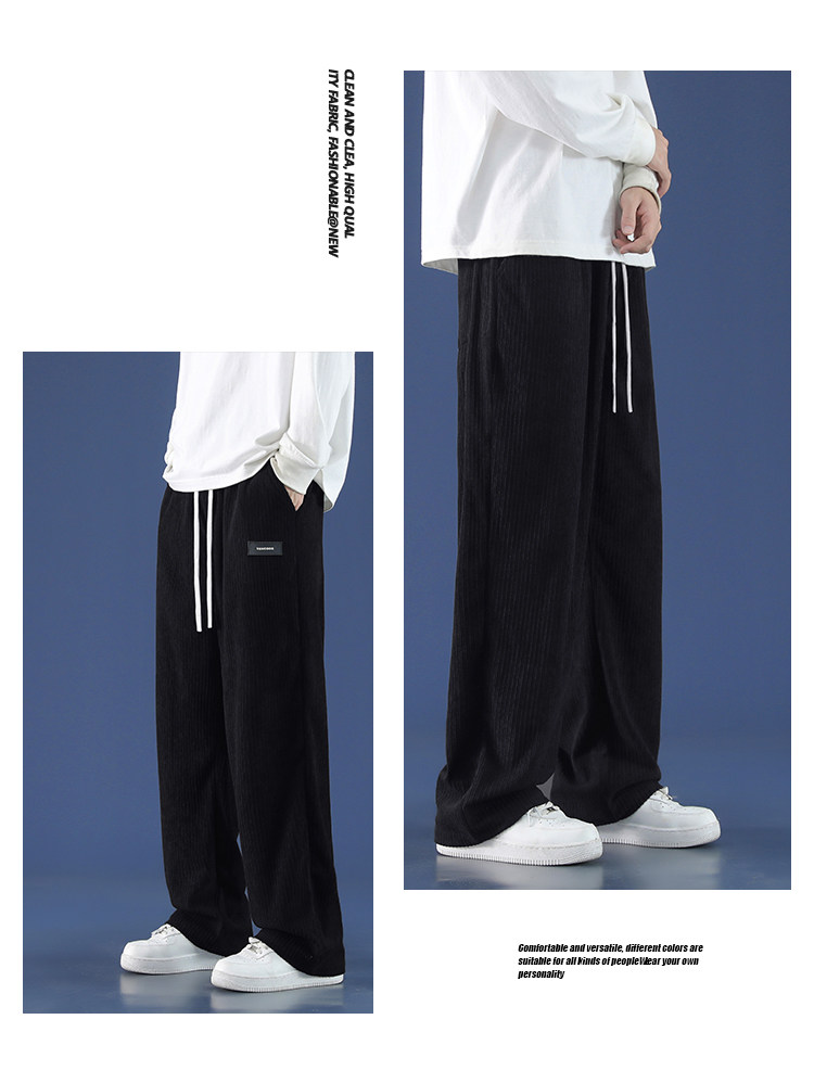 Wassup Tenet Corduroy Casual Pants for Men, Drapey Straight-Leg Versatile Loose-Fitting Sports Trendy Brand Couple's Long Pants