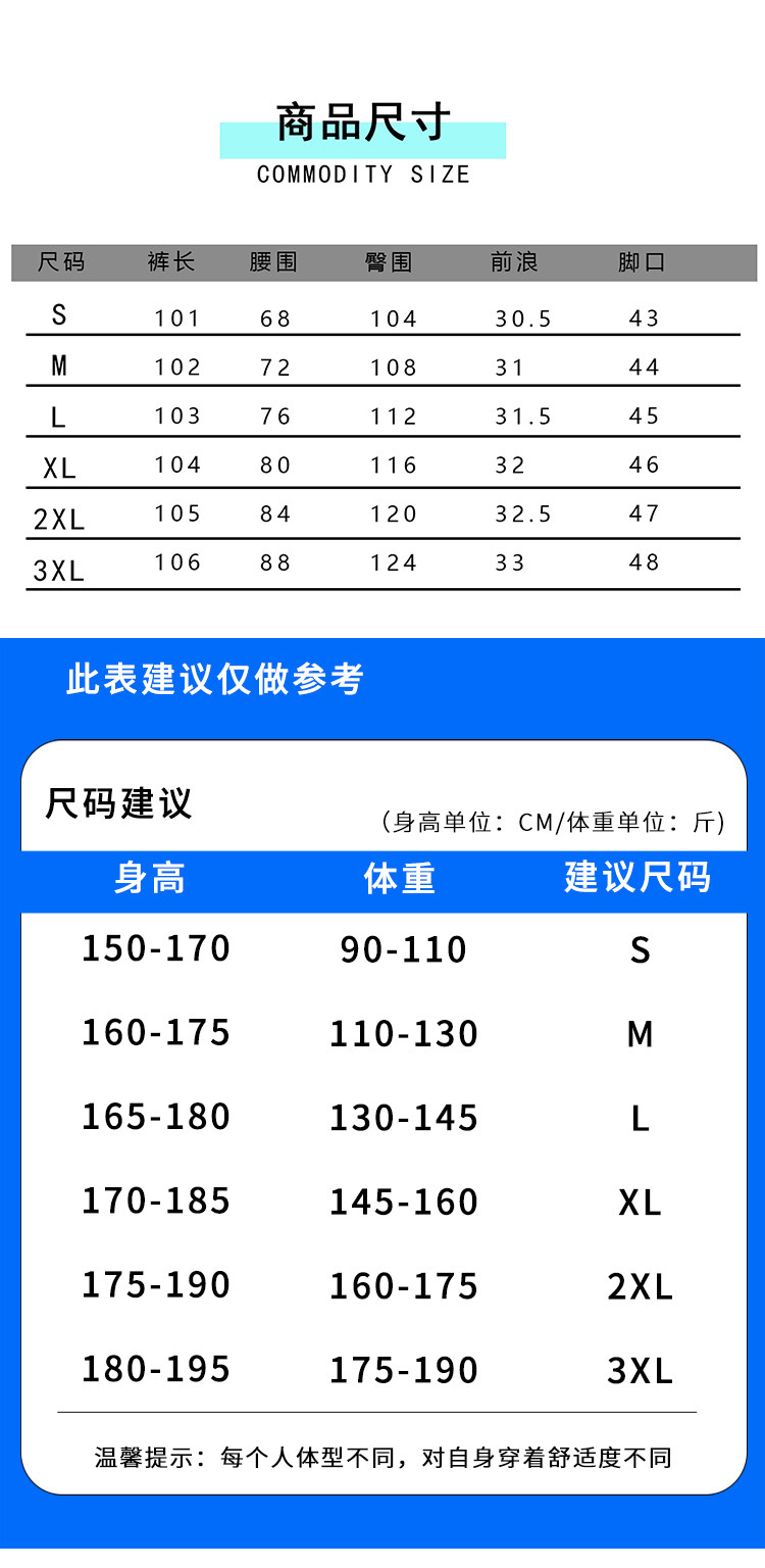 Outseam (cm) 99 cm 101.5 cm 104 cm 106.5 cm 109 cm