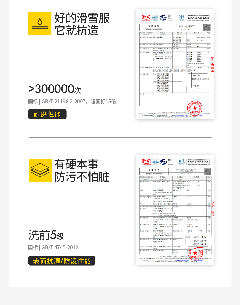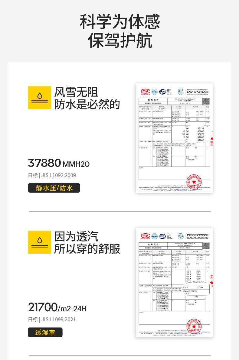 Waterproof Hydrostatic Pressure> 20000Mmh₂O,Surface Moisture Resistance: ≥4-5 Levels before Washing, ≥3-4 Levels after Washing