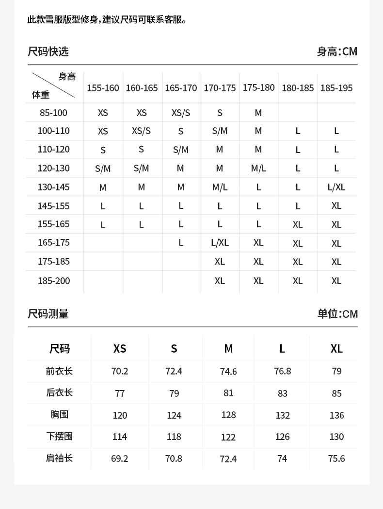 China(cm) 72-76 76-81 81-87 87-93 93-98