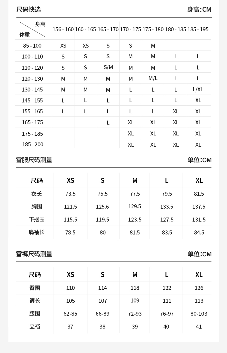 China (cm) 160-165/84-86 165-170 / 88-90 167-172 / 92-96 168-173 / 98-102 170-176 / 106-110