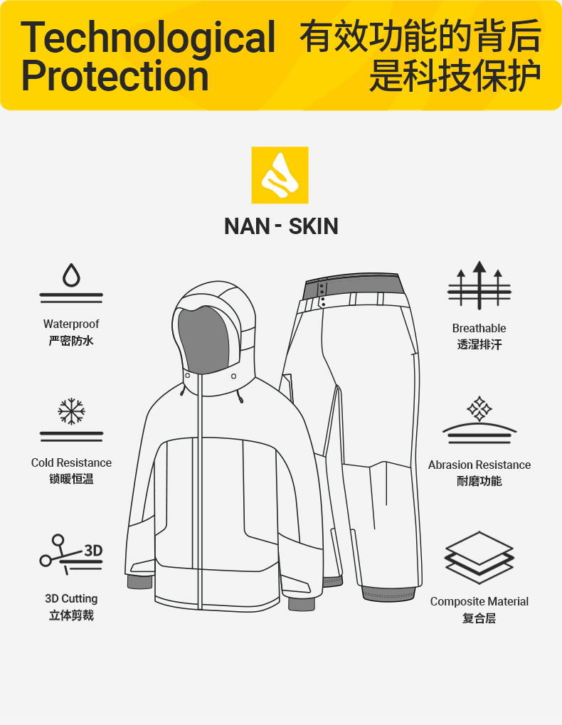 Nanend Nanen 2025 new windproof ski suit suit P cotton waterproof and warm snowboard snow suit suit