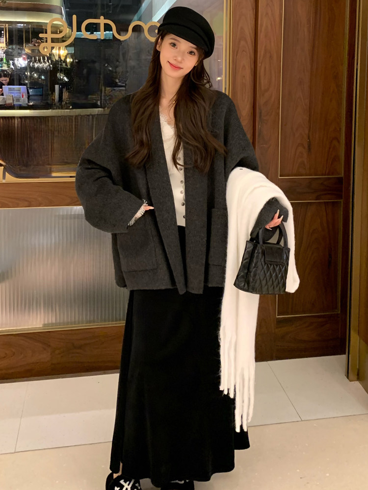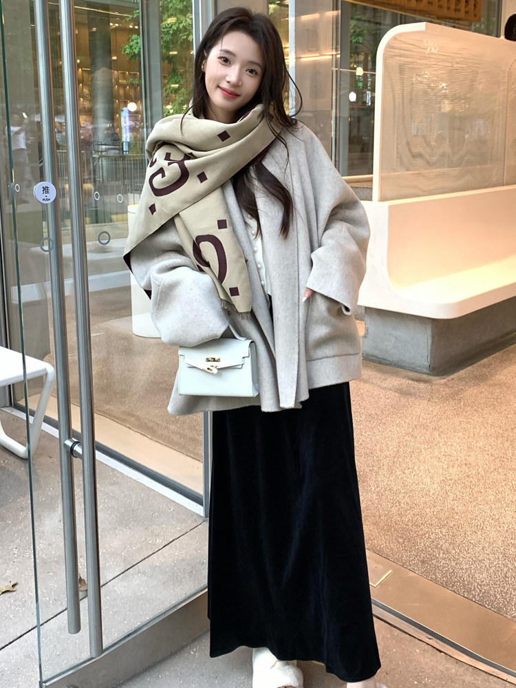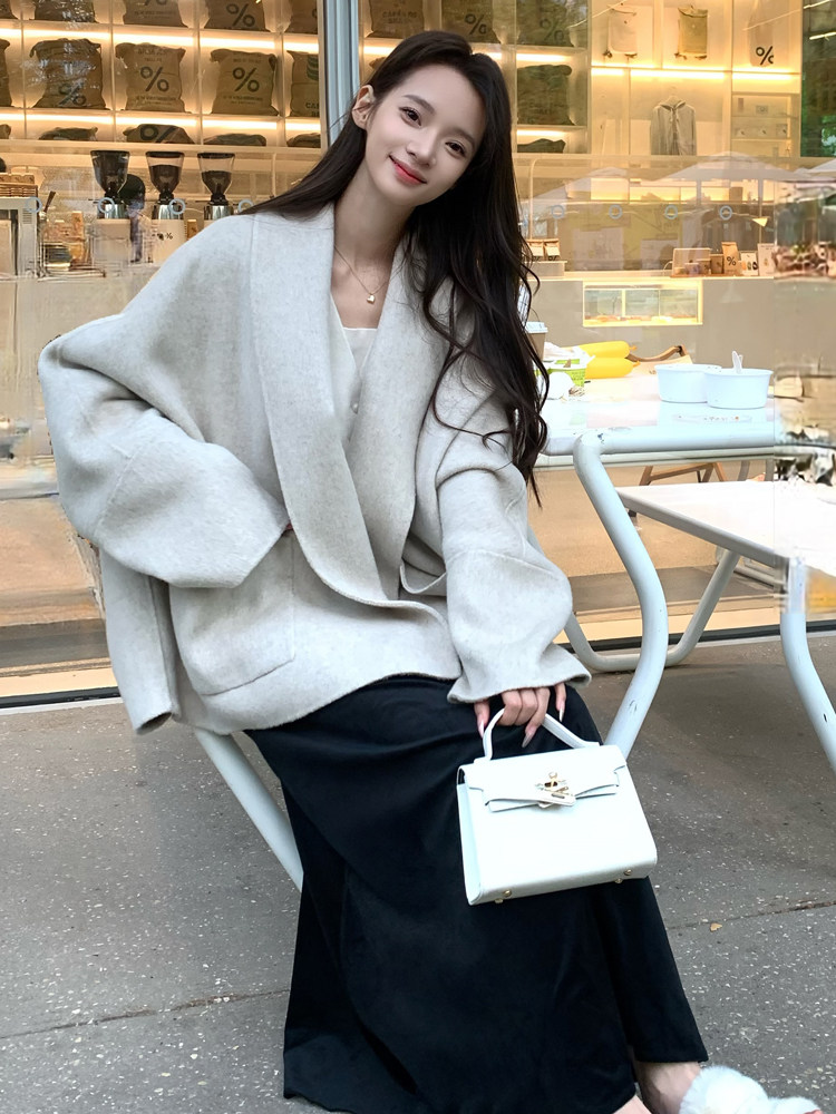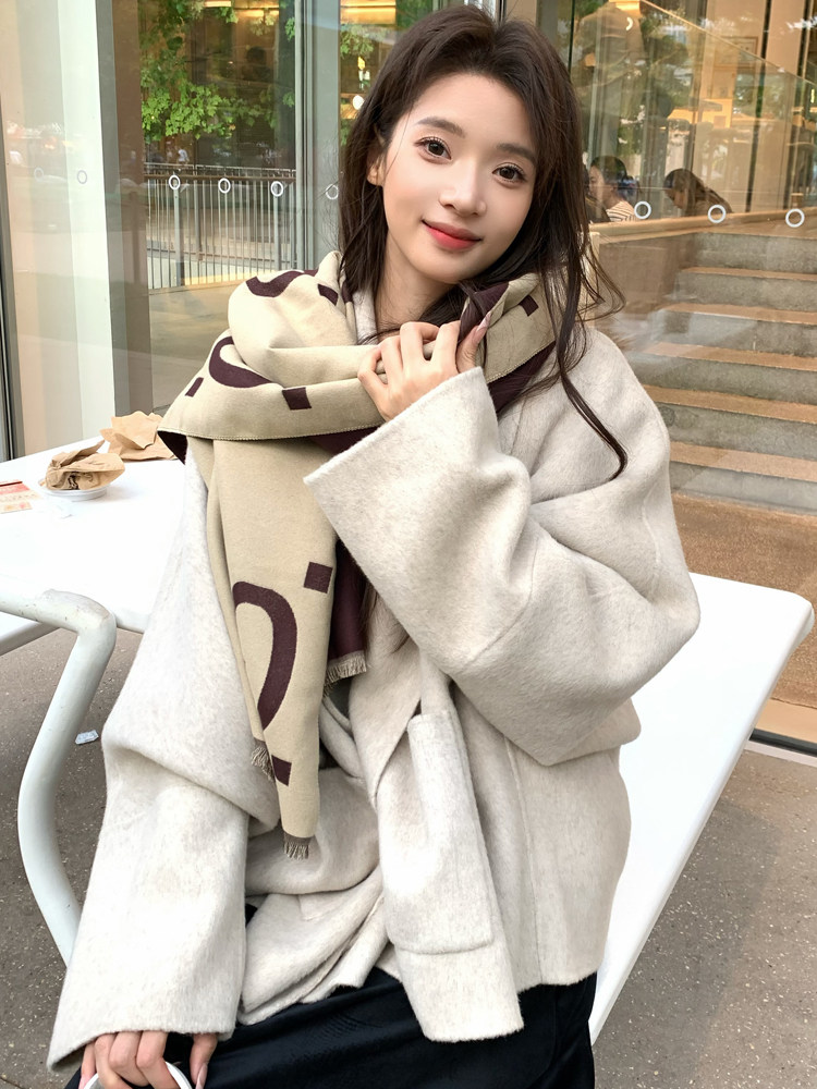 Double-Sided Wool Coat 2025 Autumn and Winter New Style Petite Scarf Collar Loose Silhouette High-End Wool Coat for Women