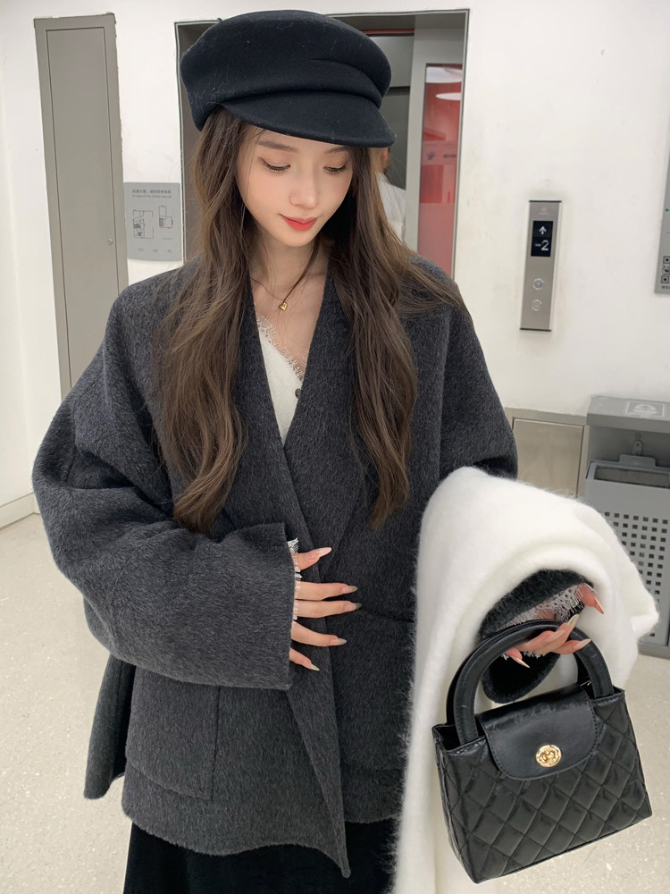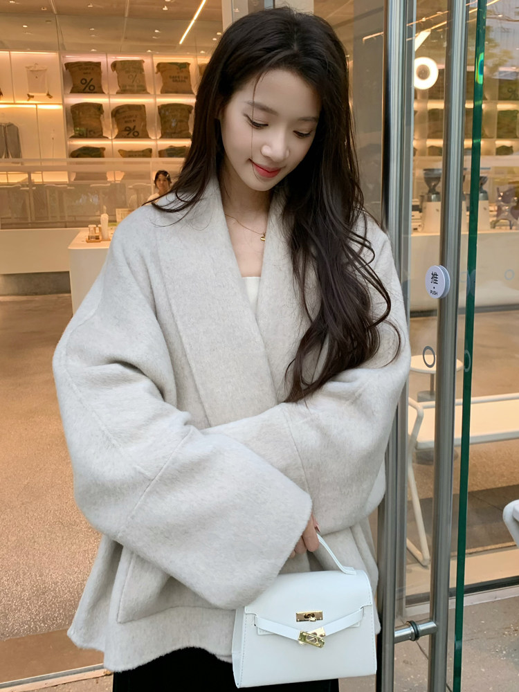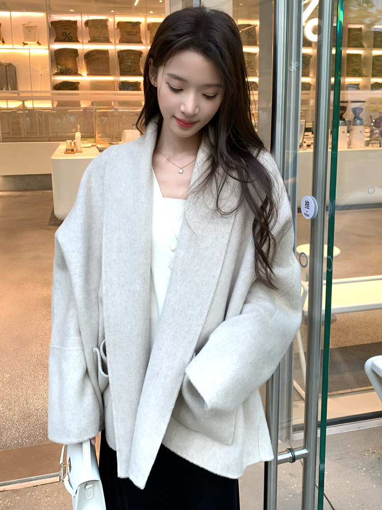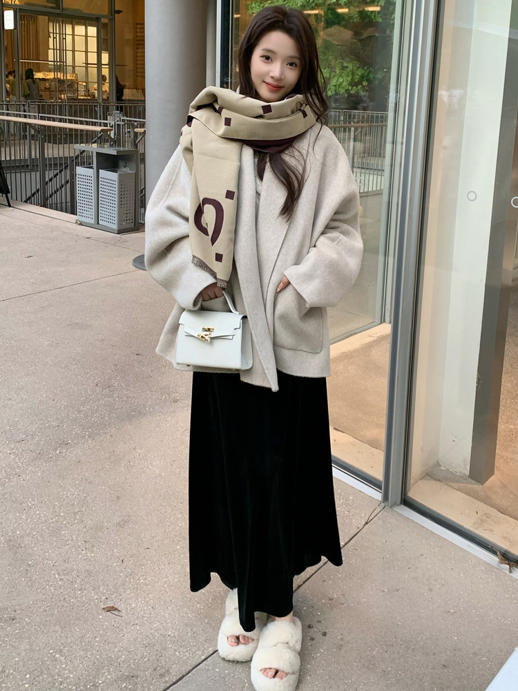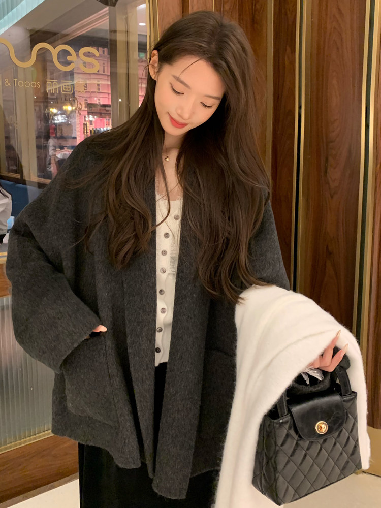 Double-Sided Wool Coat 2025 Autumn and Winter New Style Petite Scarf Collar Loose Silhouette High-End Wool Coat for Women
