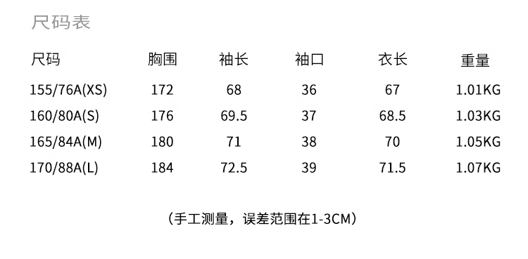 China (cm) 160-165/84-86 165-170 / 88-90 167-172 / 92-96 168-173 / 98-102 170-176 / 106-110