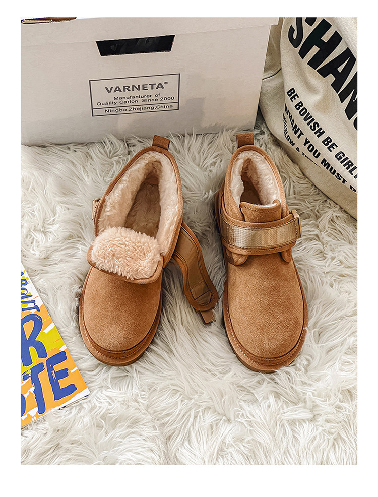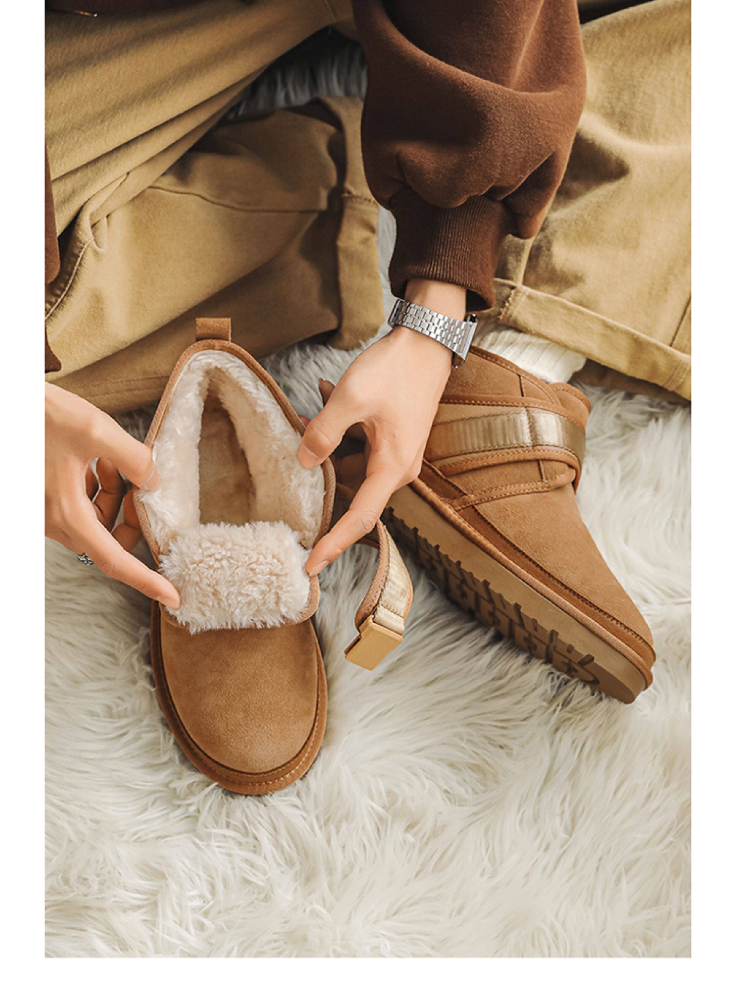 Men's Winter Snow Boots with Extra Fleece and Thick Insulation, Women's Warm Couple's Loafers, Genuine Leather Cold-Resistant Cotton Boots