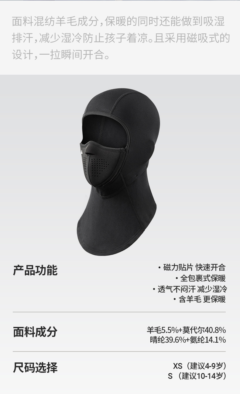 Nanend Children's Ski Face Shield Magnetic Face Mask Snowboard Headgear Breathable and Warm Ski Face Shield Nk93
