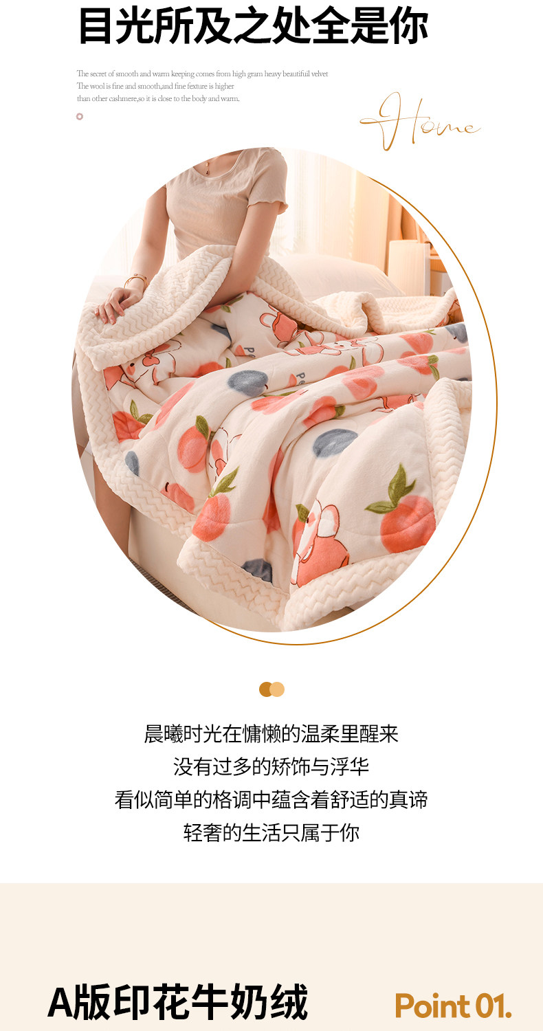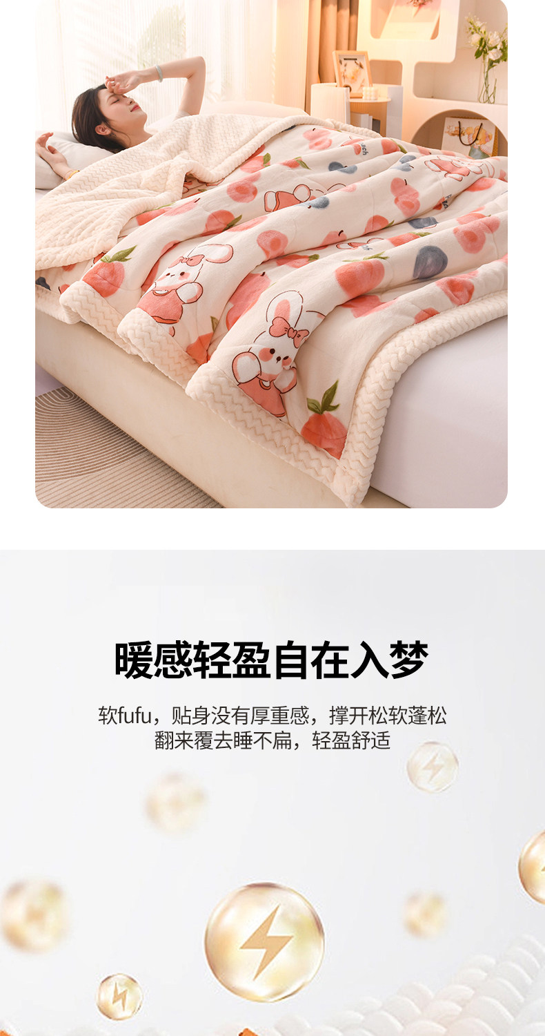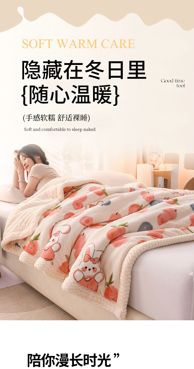 Coral Fleece Blanket Quilt, Winter Three-Layer Thickened Flannel Milk Fleece Blanket for Bed, Air Conditioning Cover Blanket for Nap