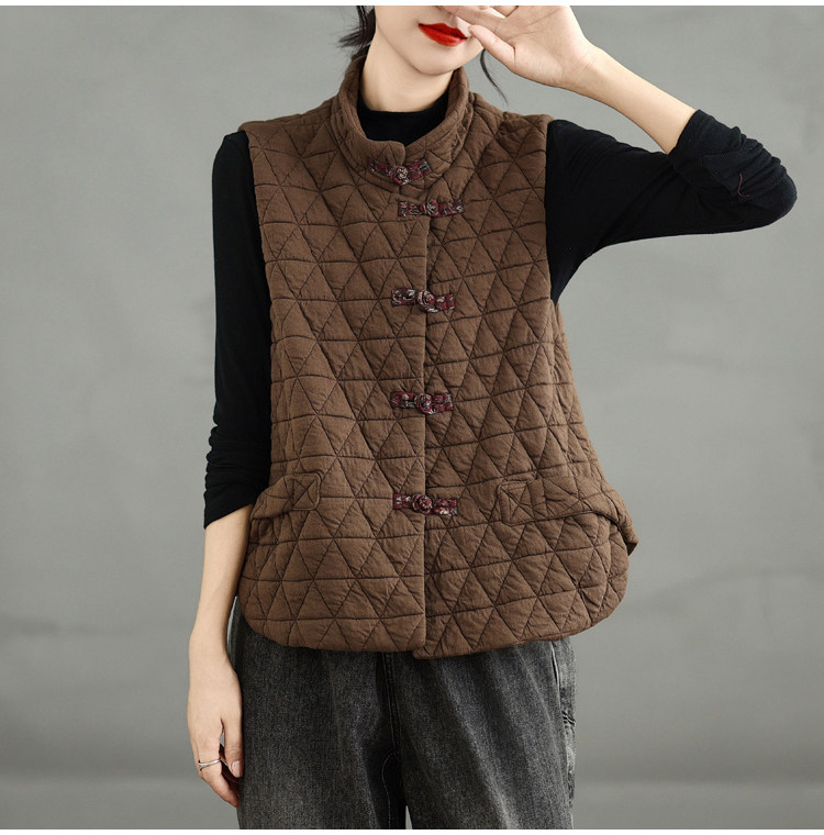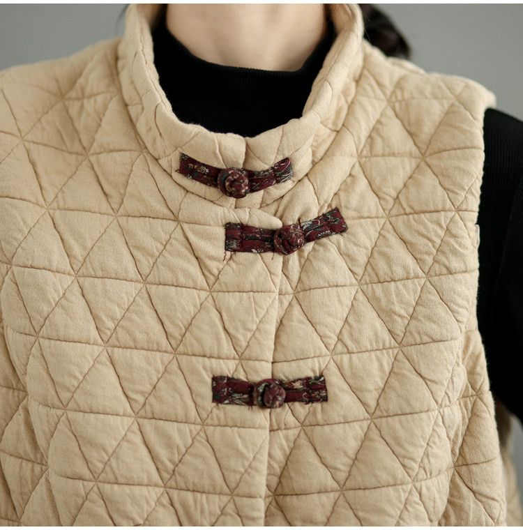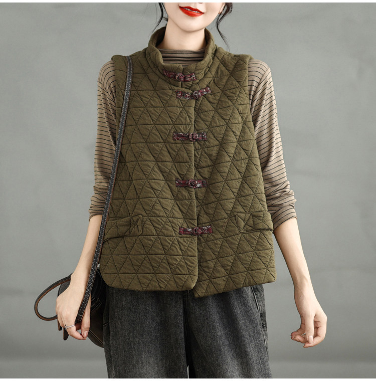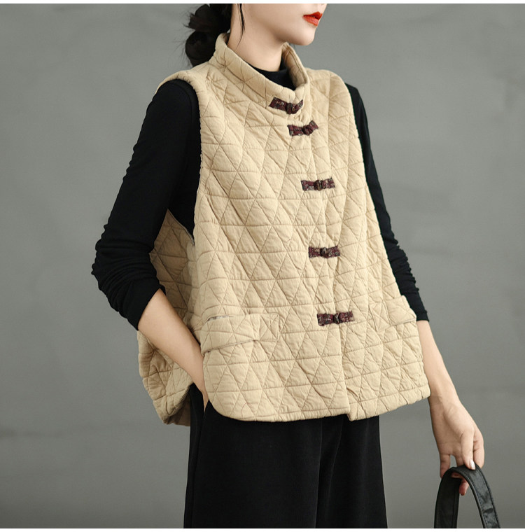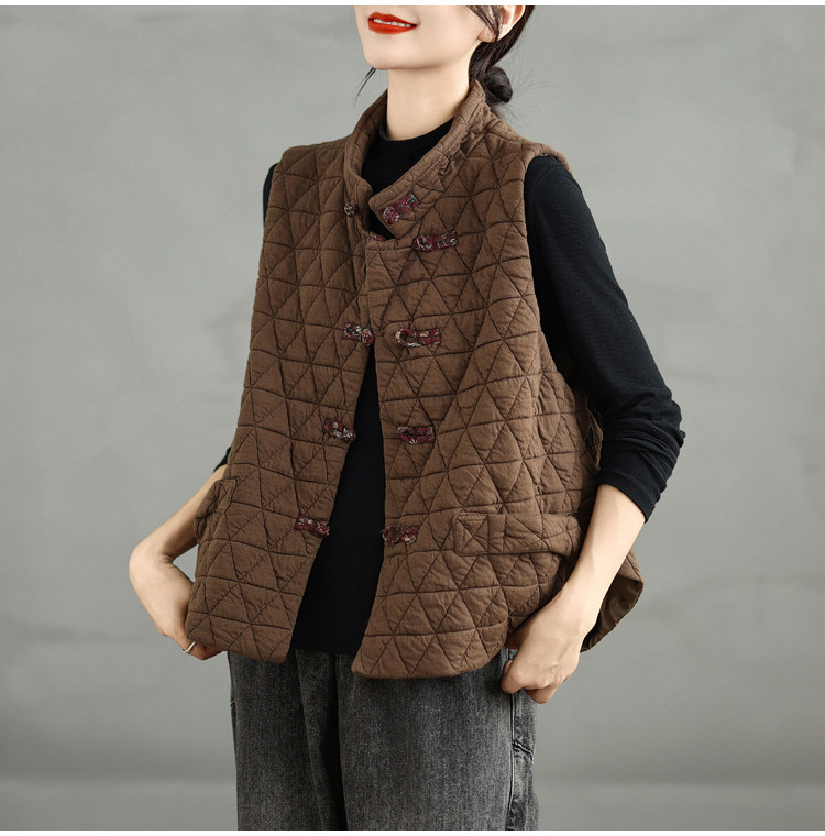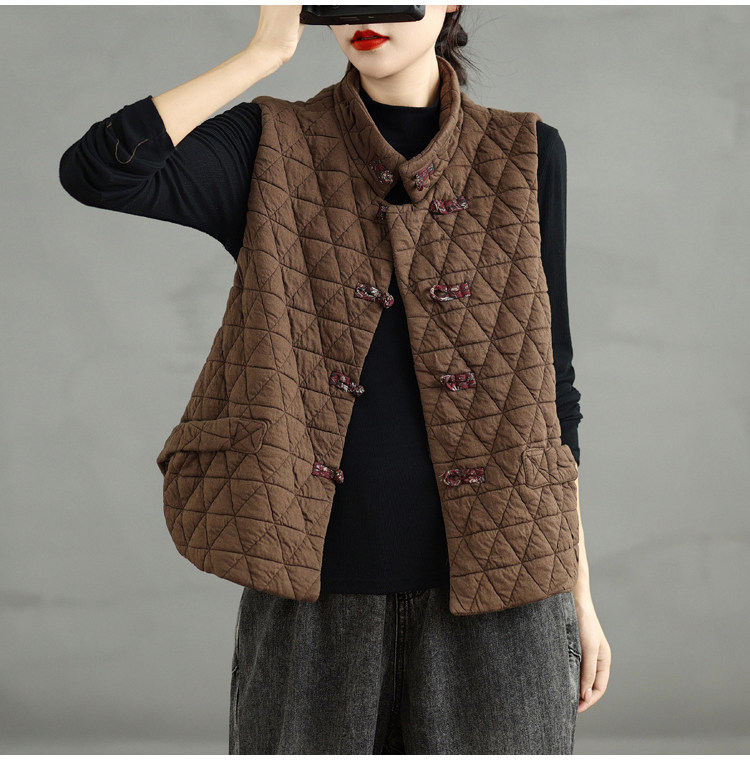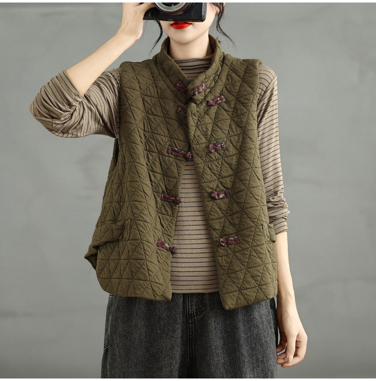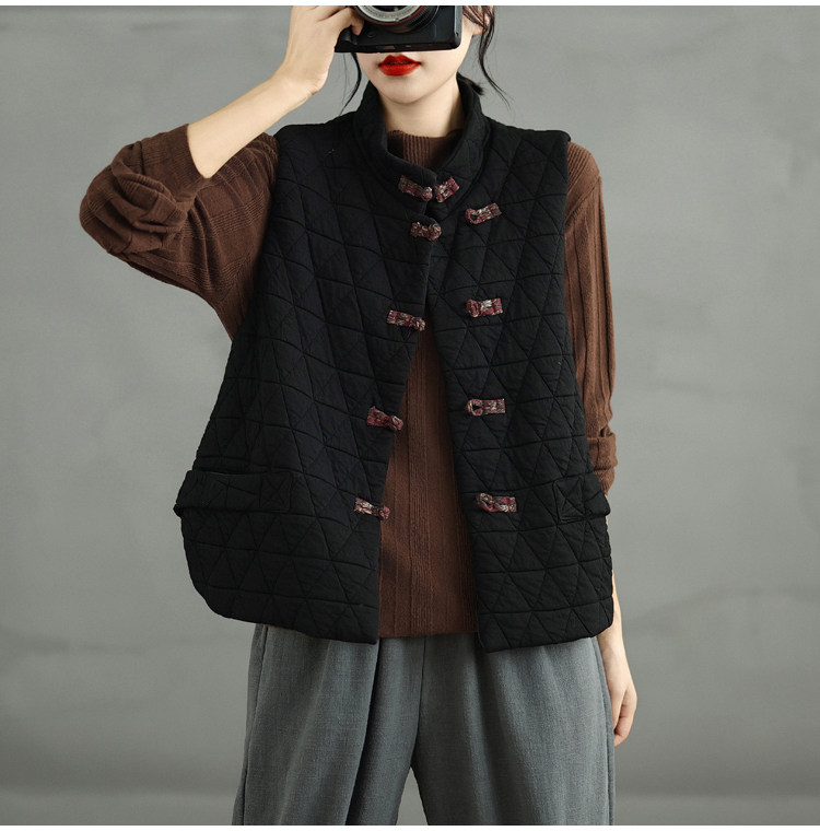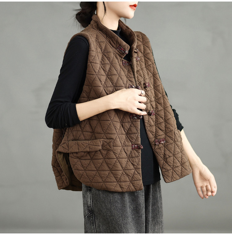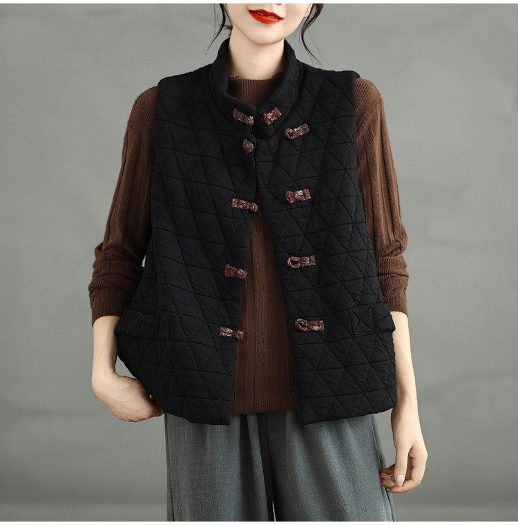 2025 Autumn/Winter New Style Mom's New Chinese Style National Style Button Design Quilted Warm Padded Vest Coat Cotton Jacket