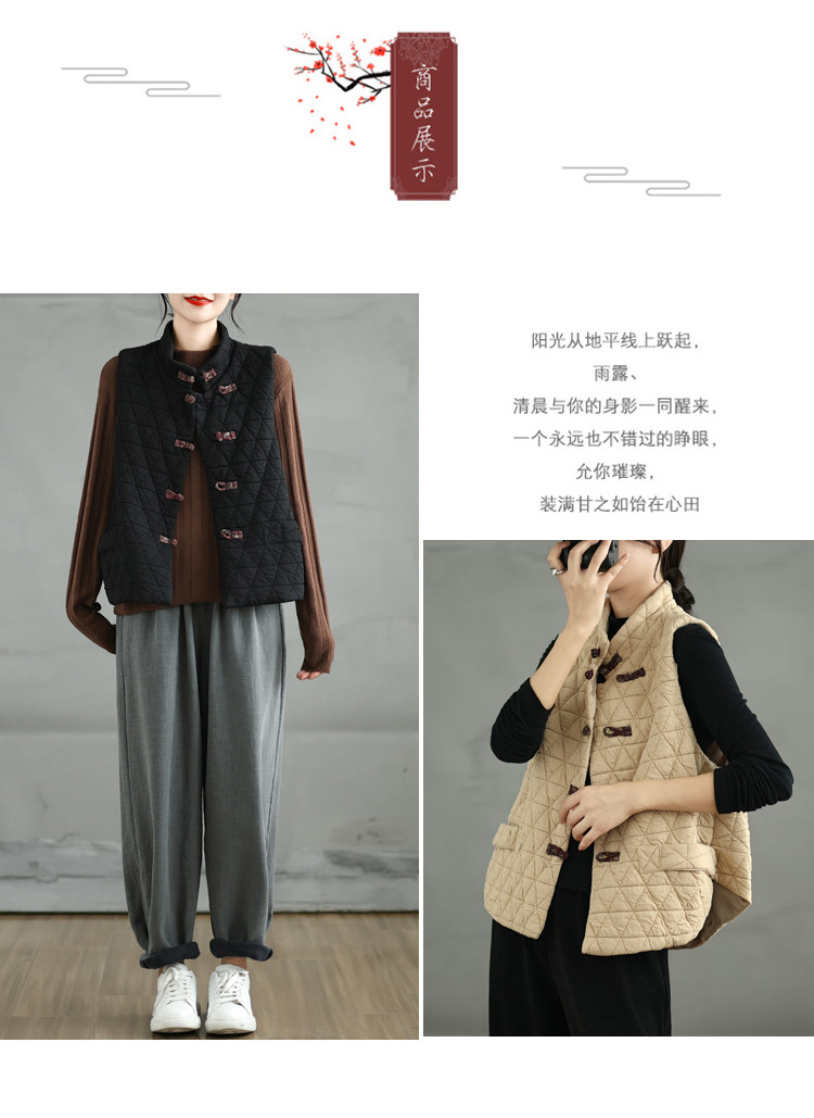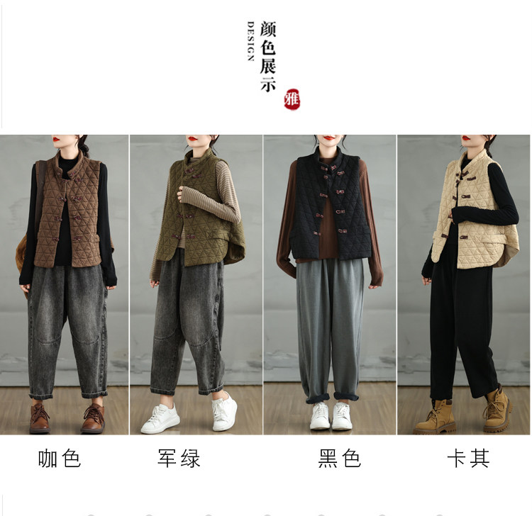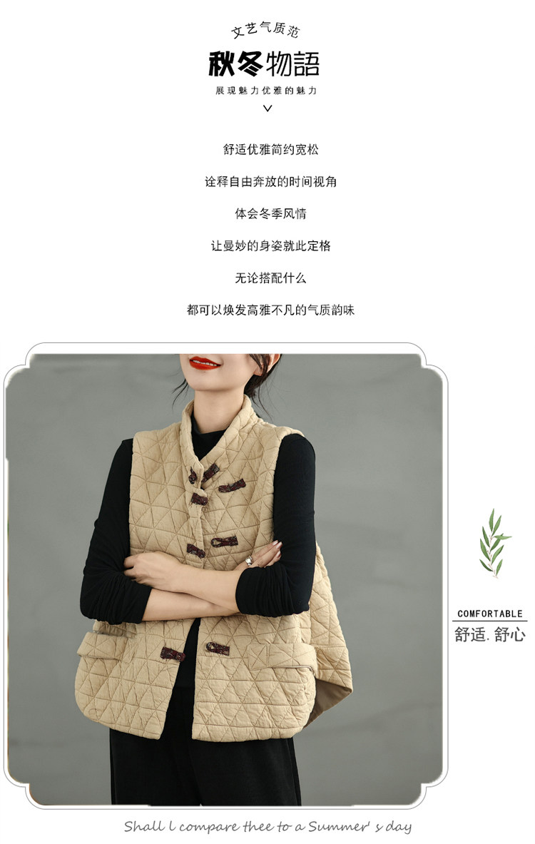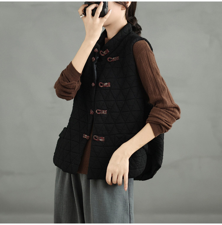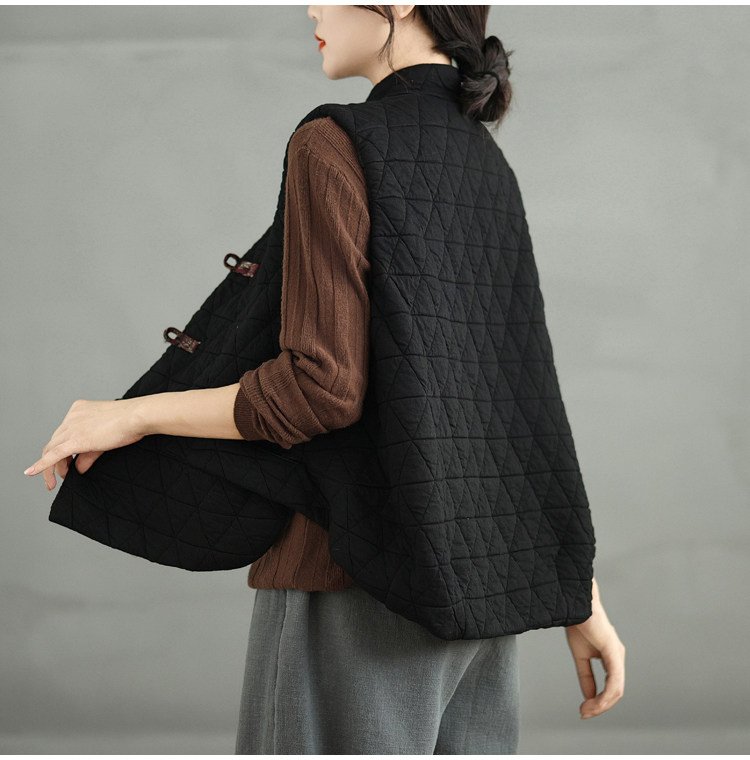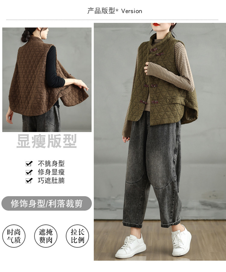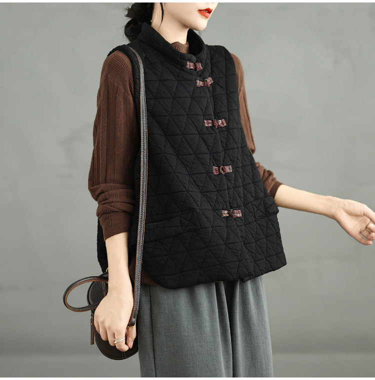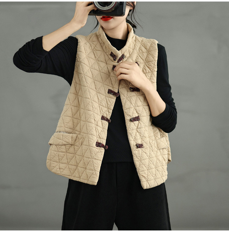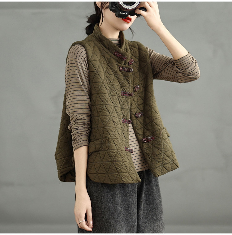 2025 Autumn/Winter New Style Mom's New Chinese Style National Style Button Design Quilted Warm Padded Vest Coat Cotton Jacket