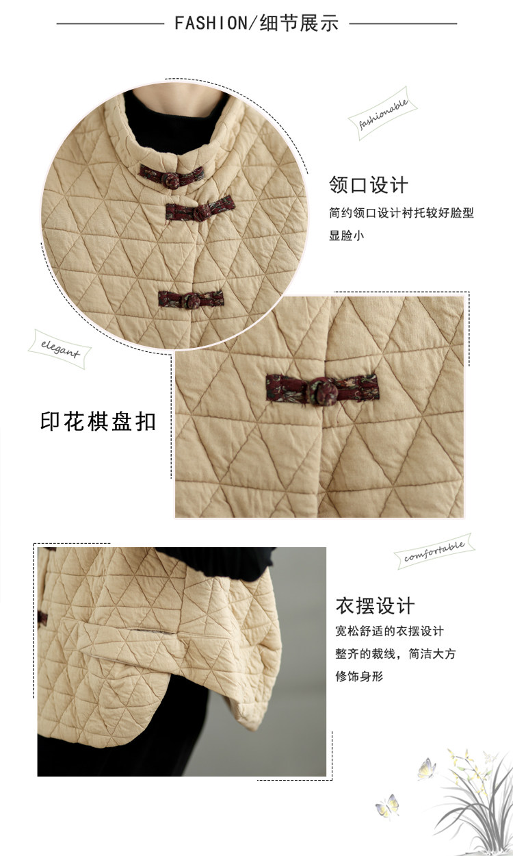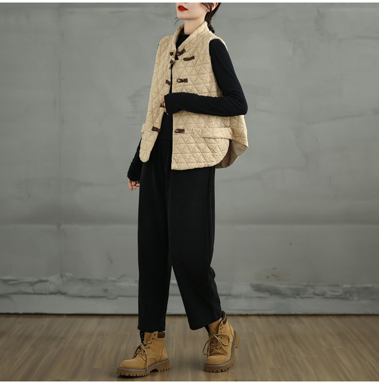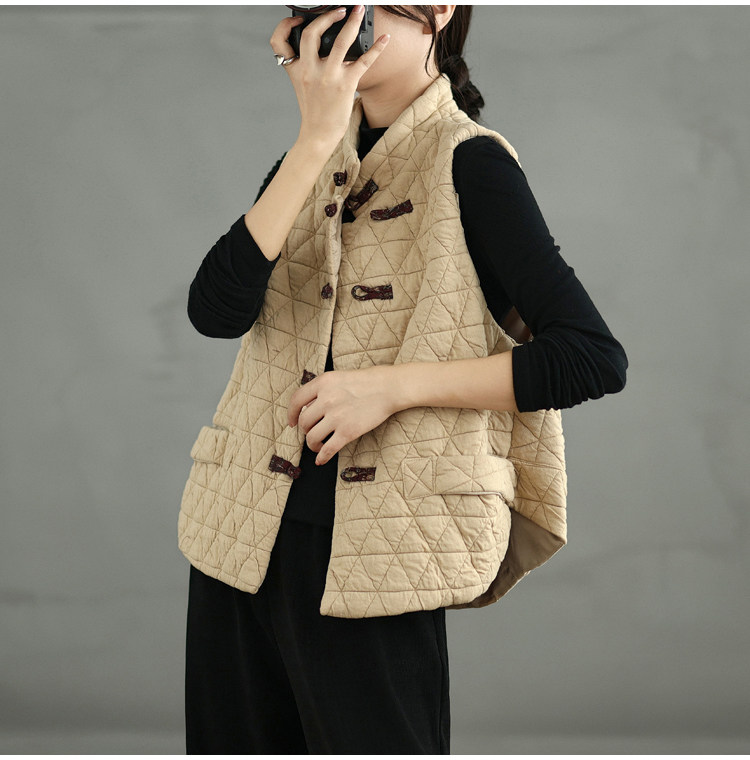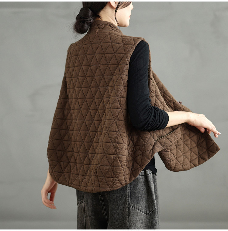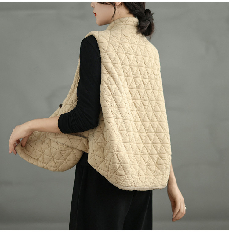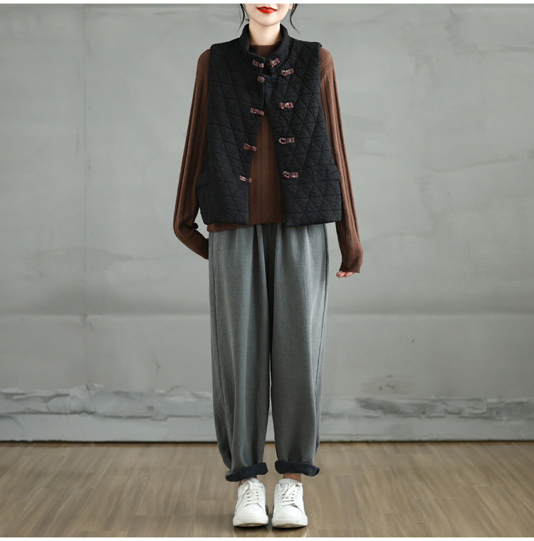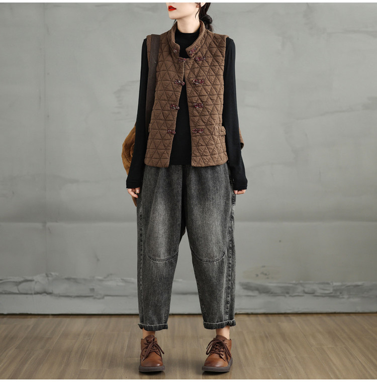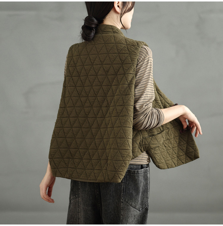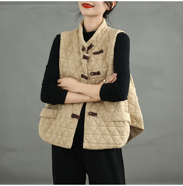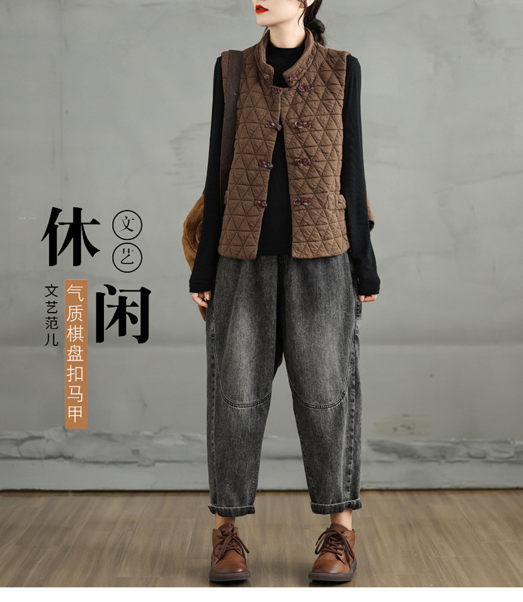 2025 Autumn/Winter New Style Mom's New Chinese Style National Style Button Design Quilted Warm Padded Vest Coat Cotton Jacket