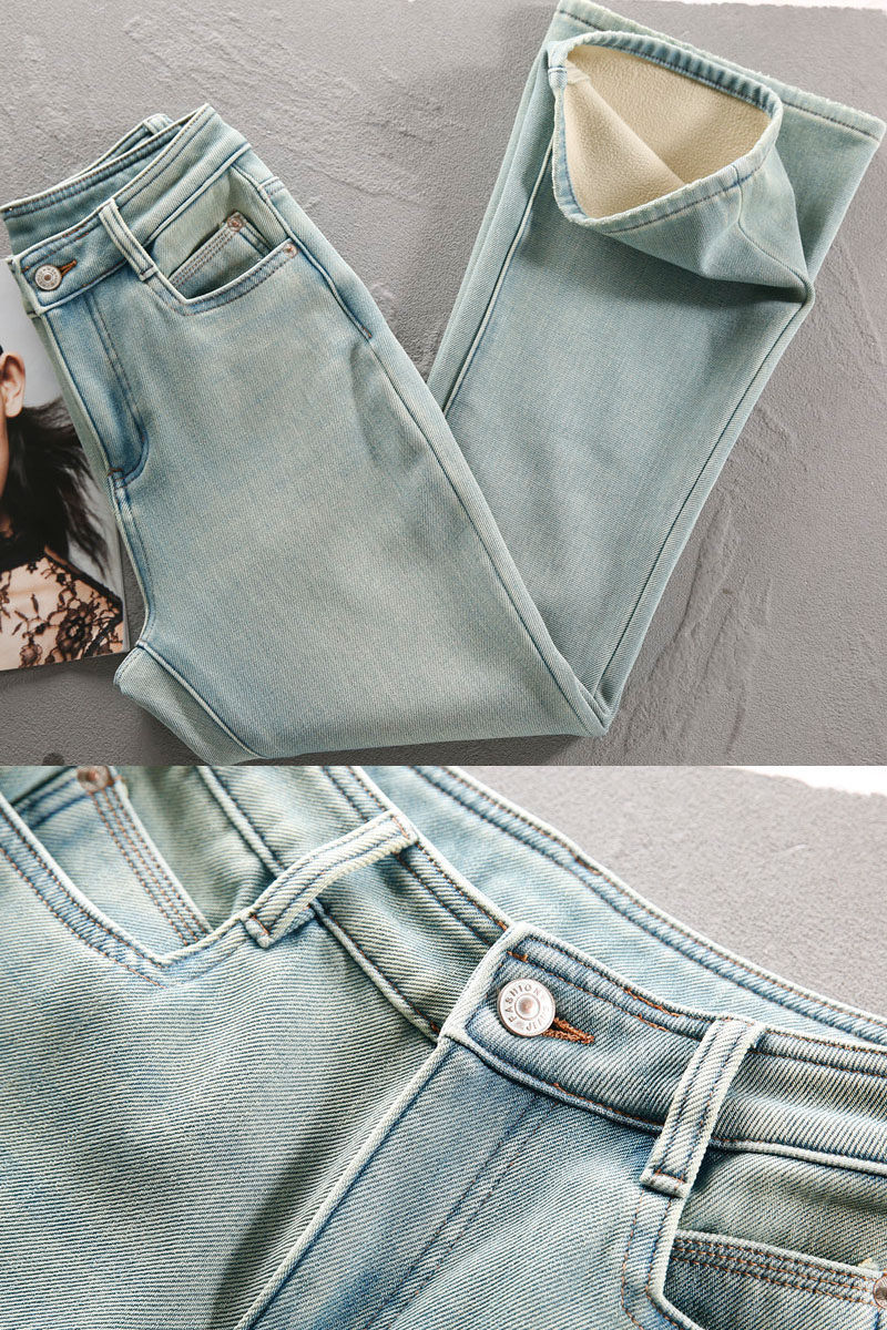 Flared Jeans for Women, Slim Fit, High Waist, 2025 Autumn and Winter New Style, Thickened and Fleece-Lined, Four-Way Stretch, Drapey, Light-Colored Bell-Bottom Pants
