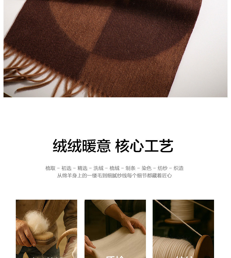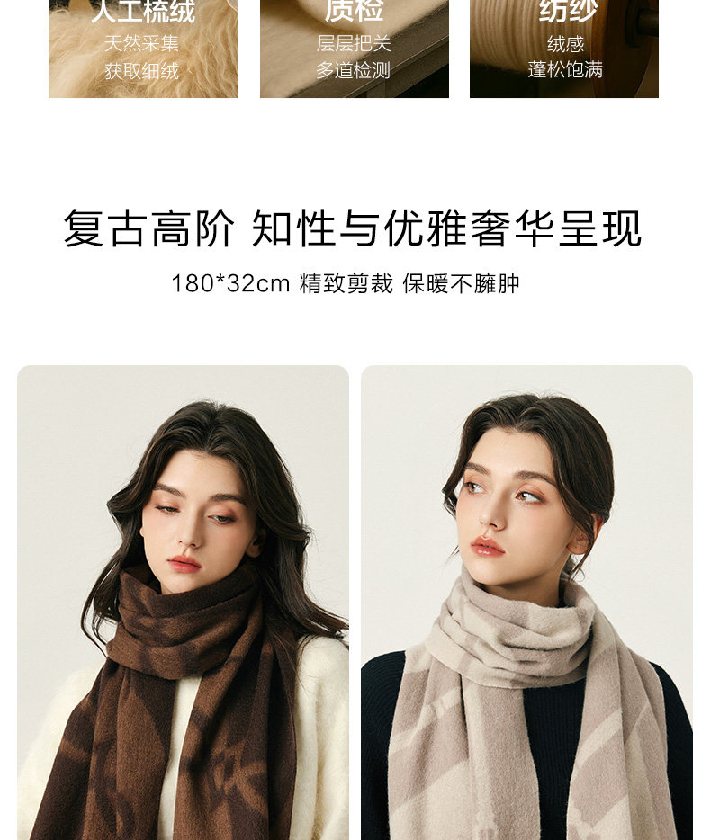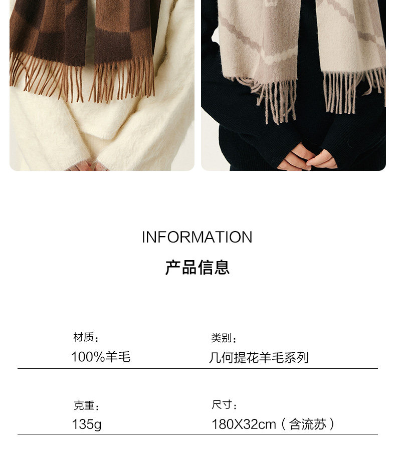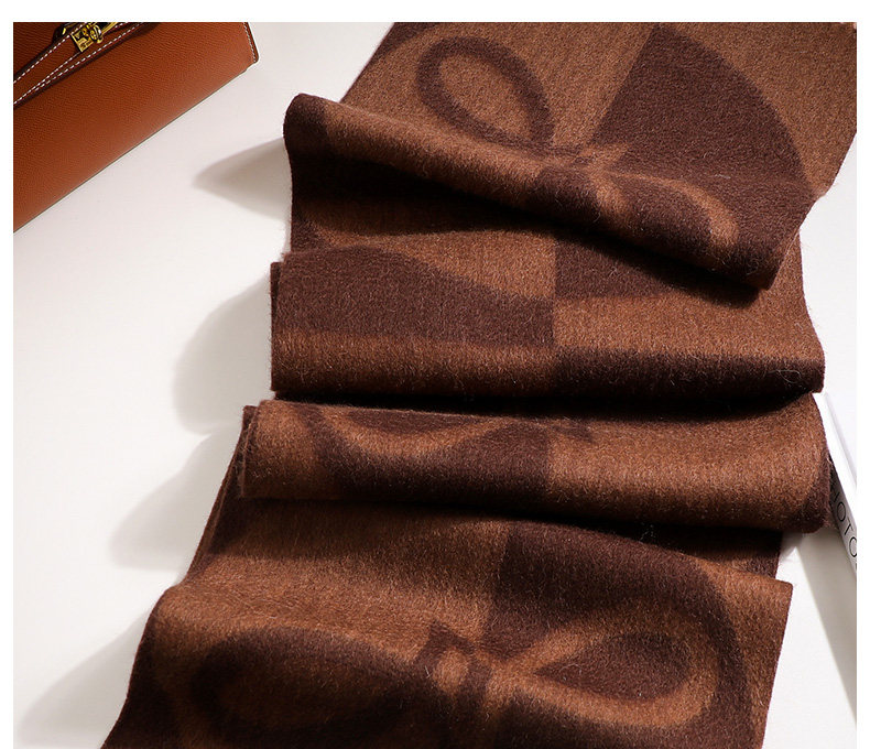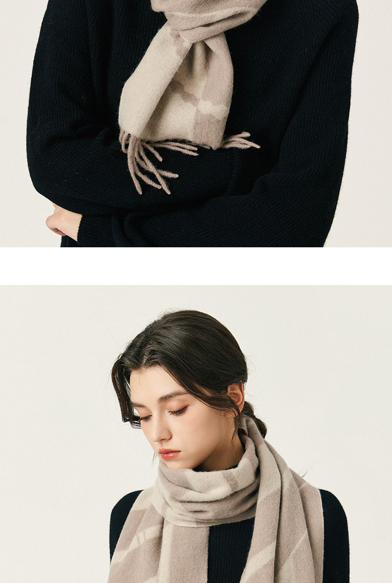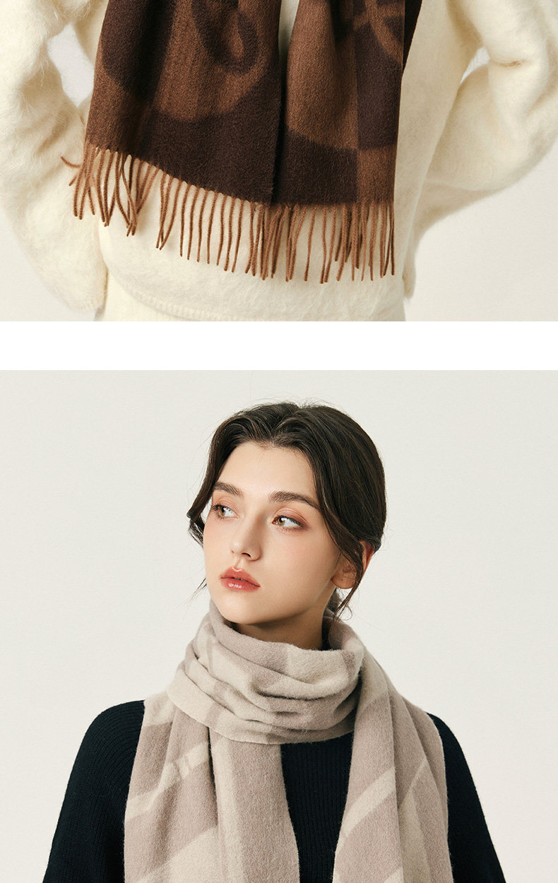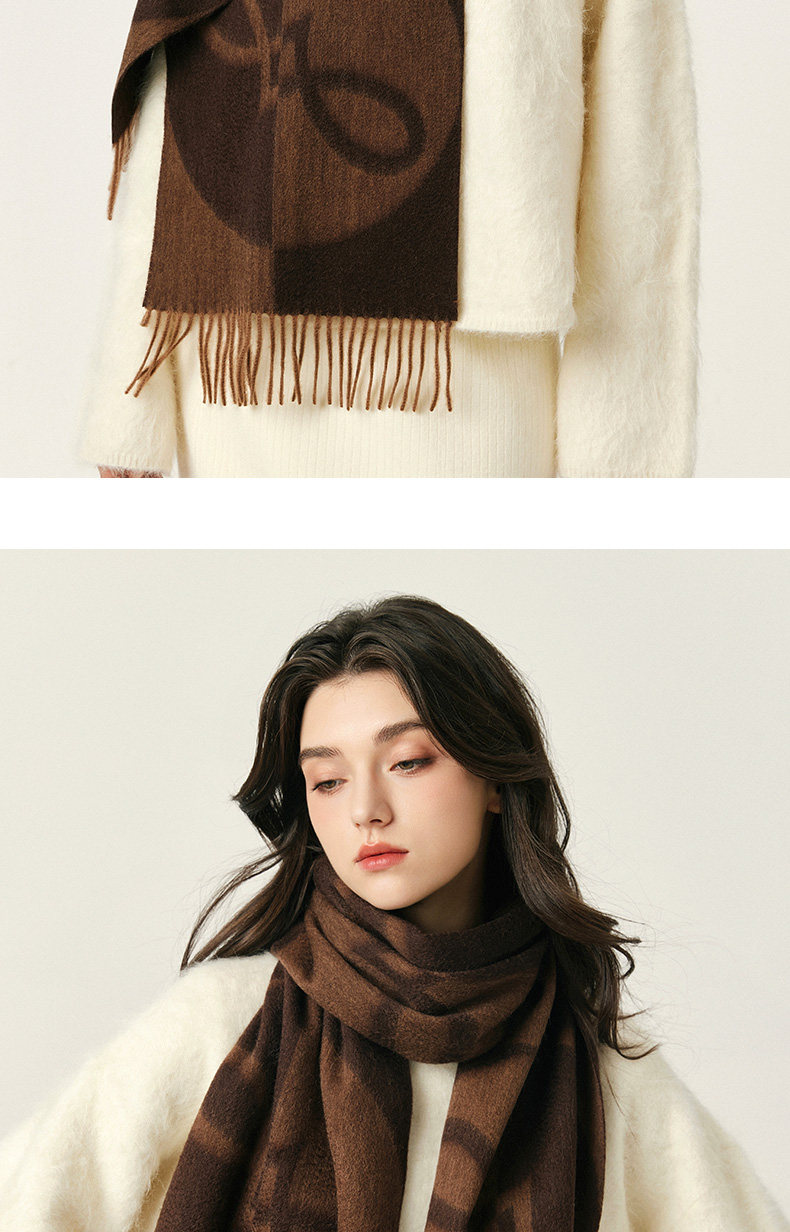 100% Wool Scarf Winter Women's 2025 New Geometric Brown High-End Scarf Shawl to Match Coat