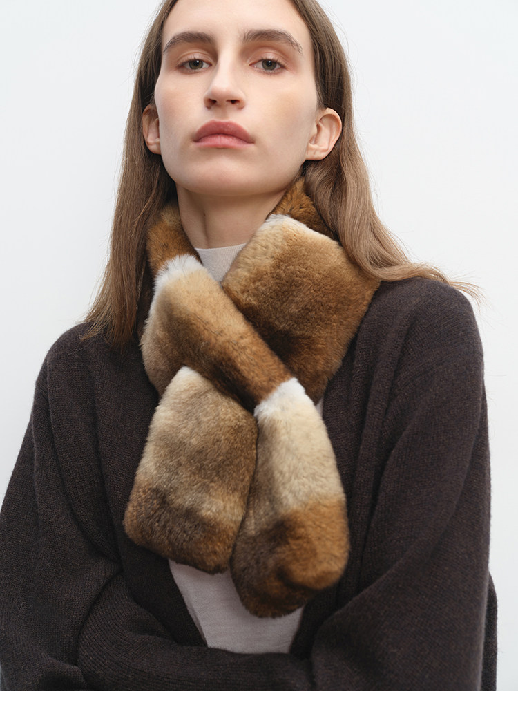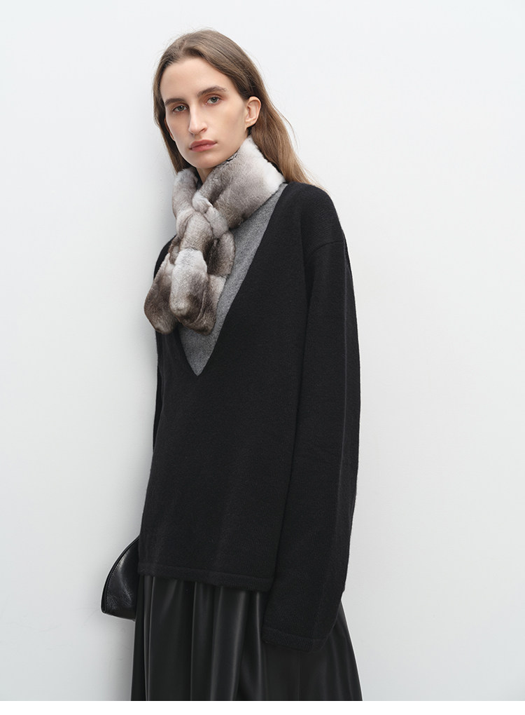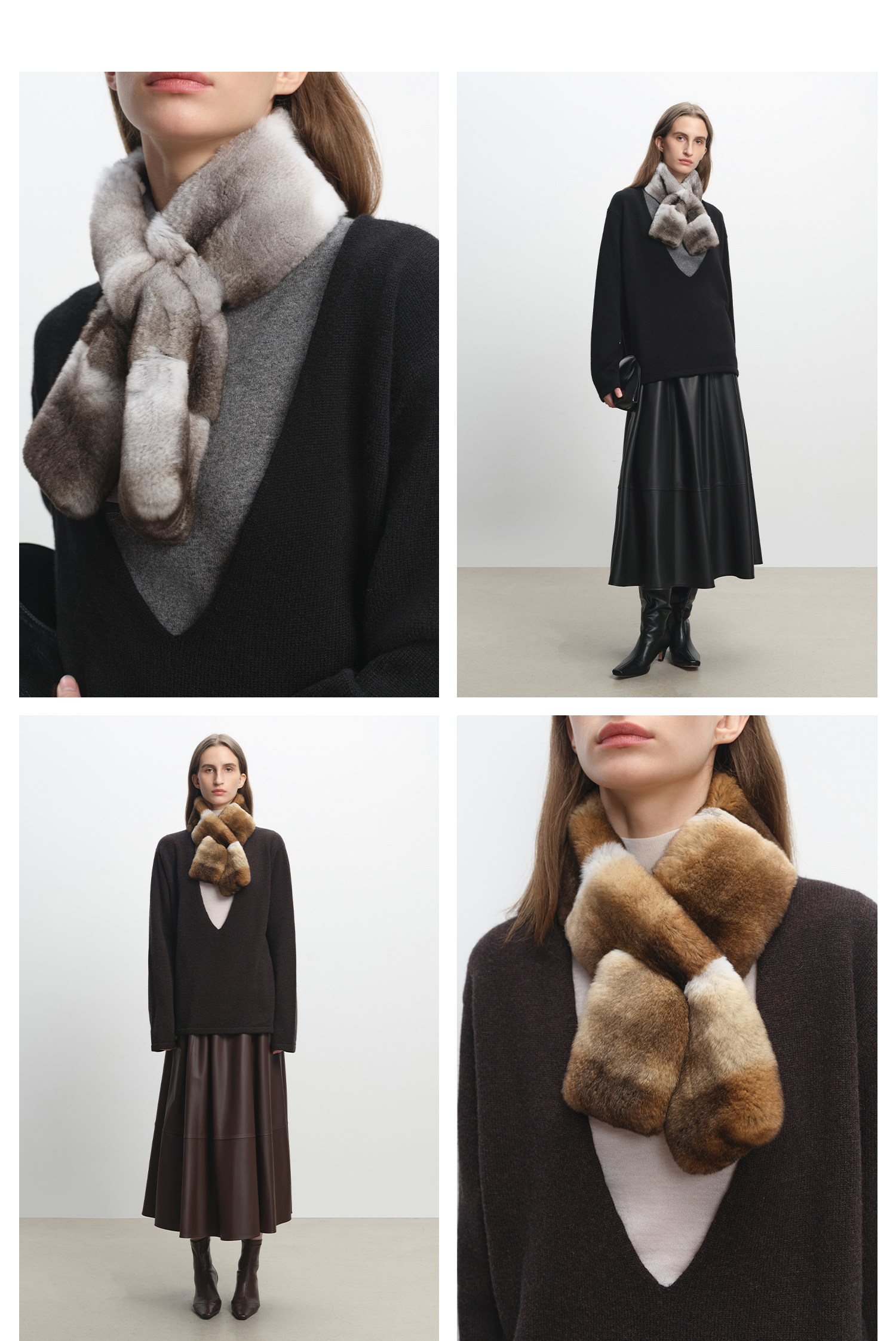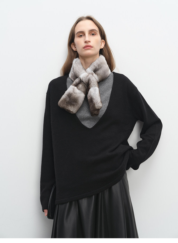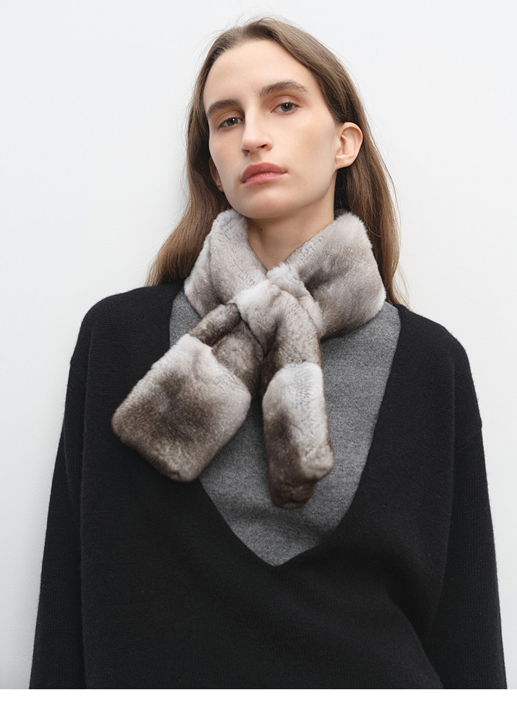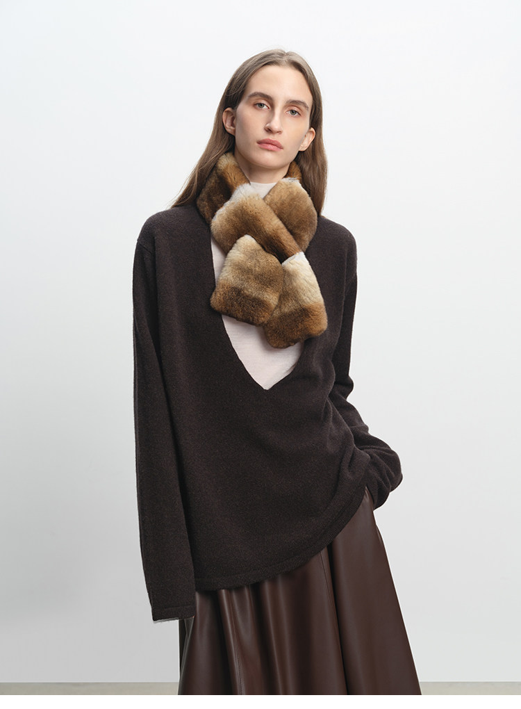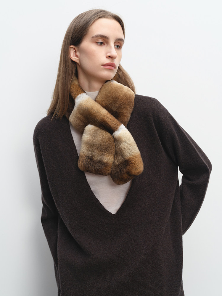 MSBEAST stacking finishing touch double-sided thickened warm original color rex rabbit fur cross-type neck scarf/scarf