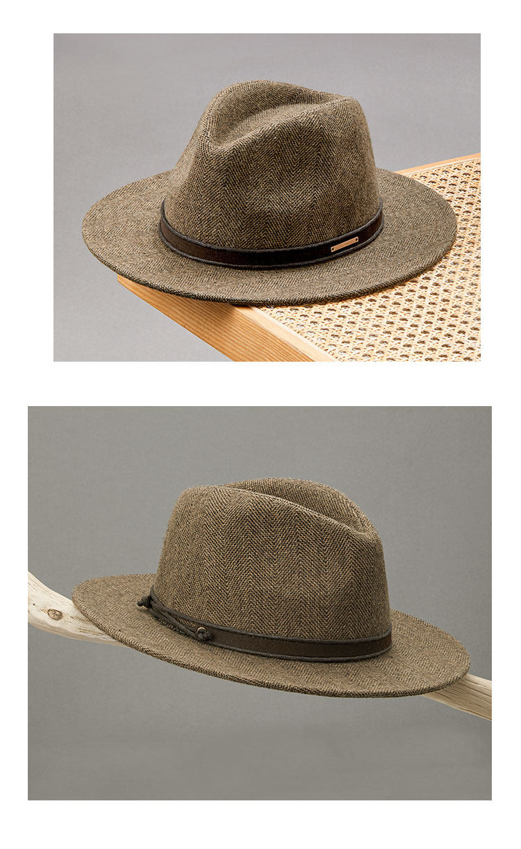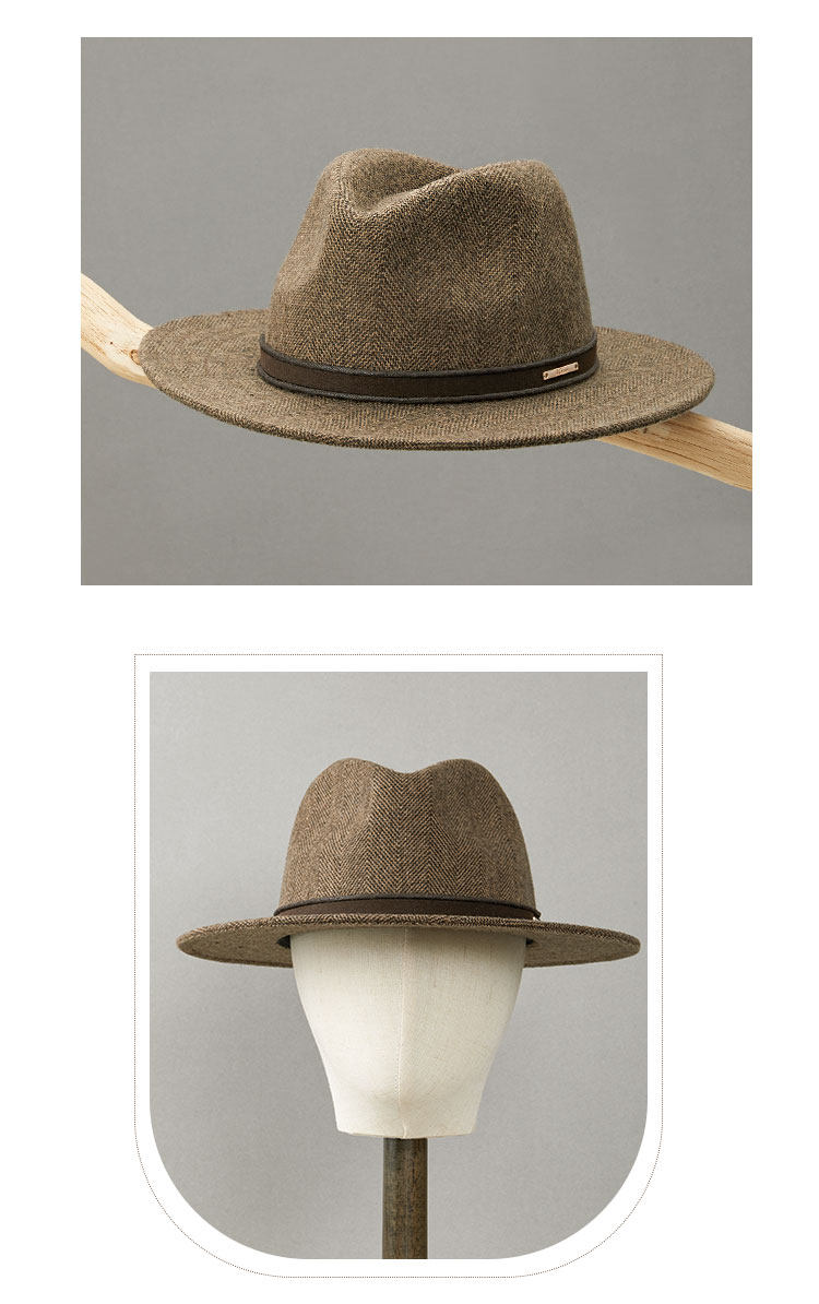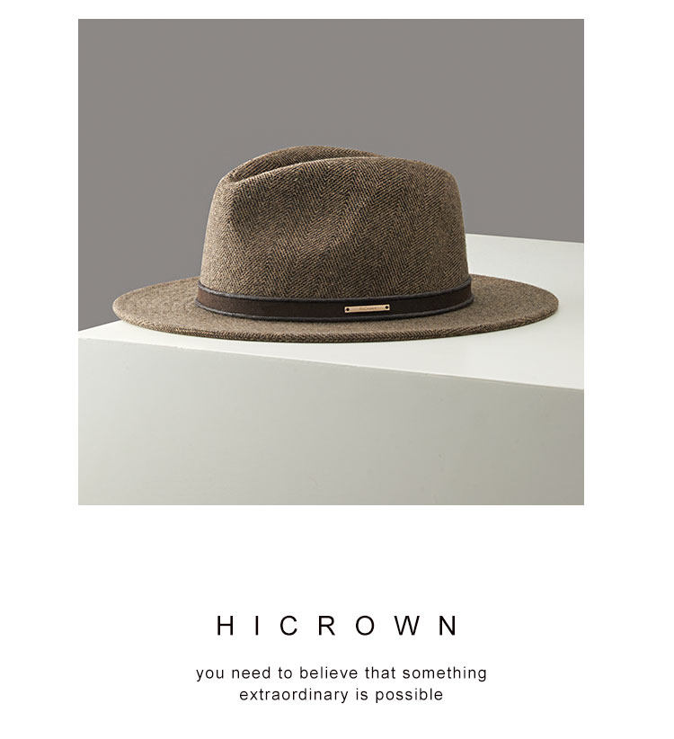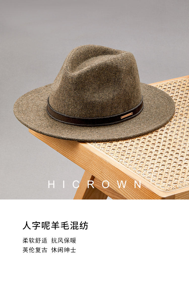 New autumn and winter men's classic retro herringbone wool flat brim hat casual fashion large head hat