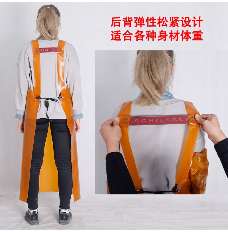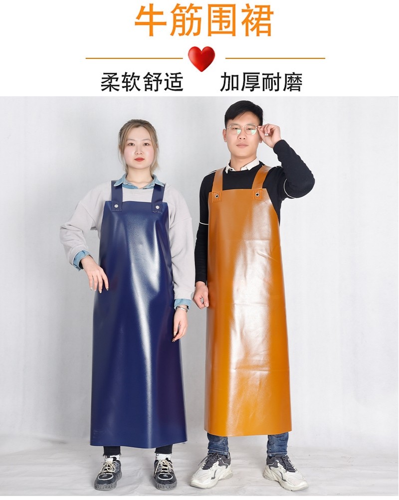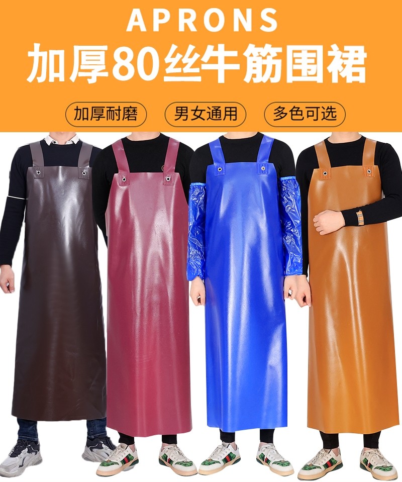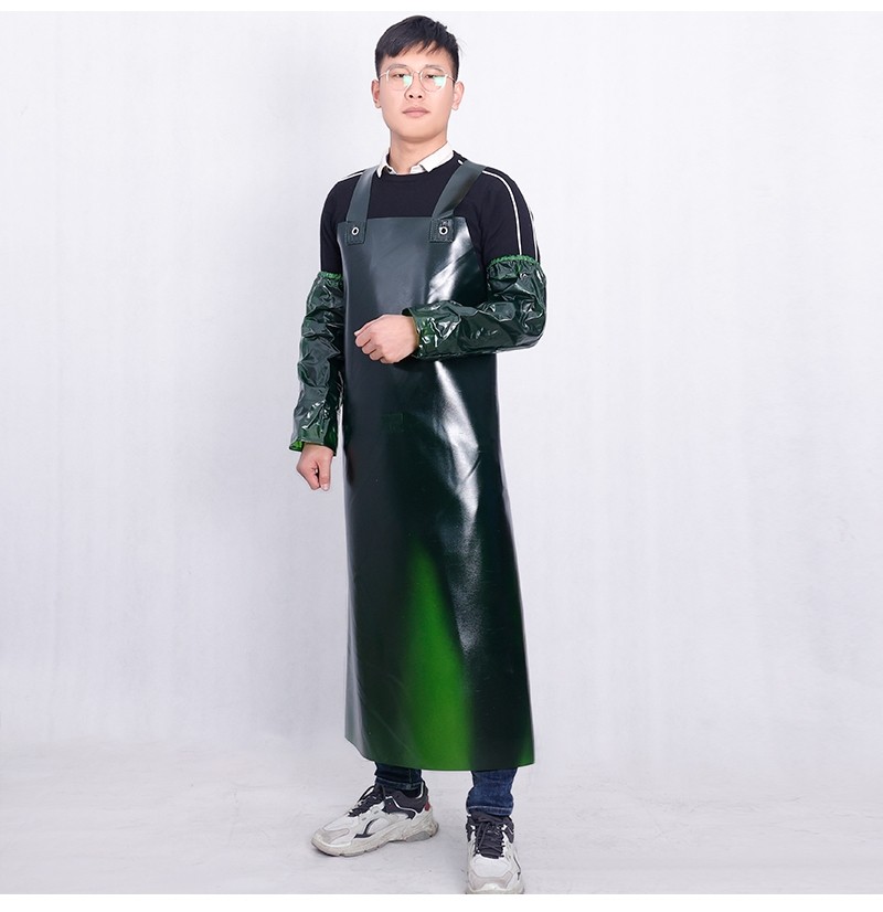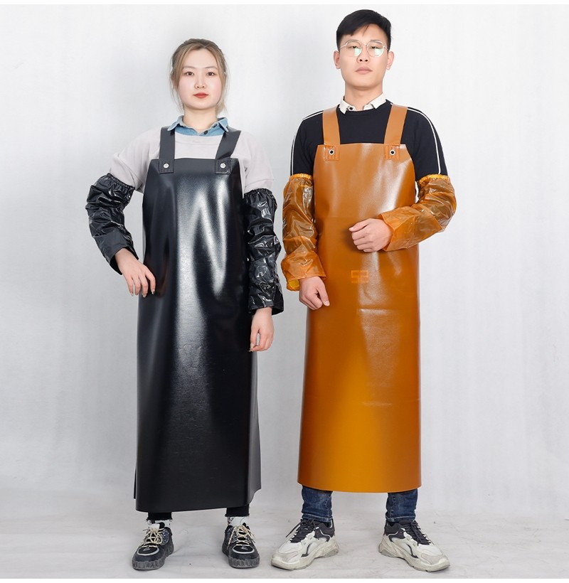Thickened Beef Tendon Apron, Waterproof, Oil-Resistant, Acid-Alkali-Resistant, Wear-Resistant, Suitable for Stone Handling, Butchering, Chemical Work, and Aquatic Product Processing, with Sleeves