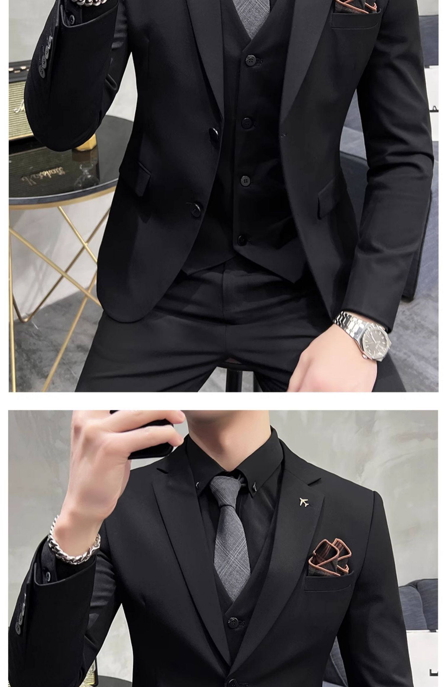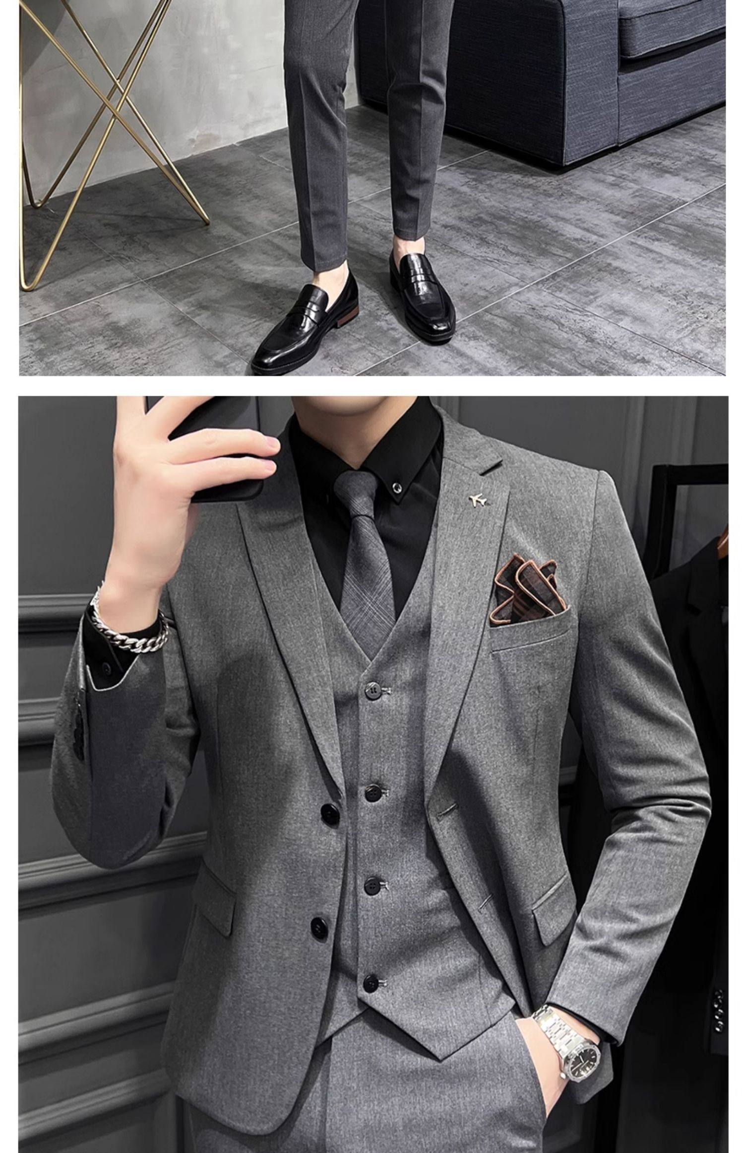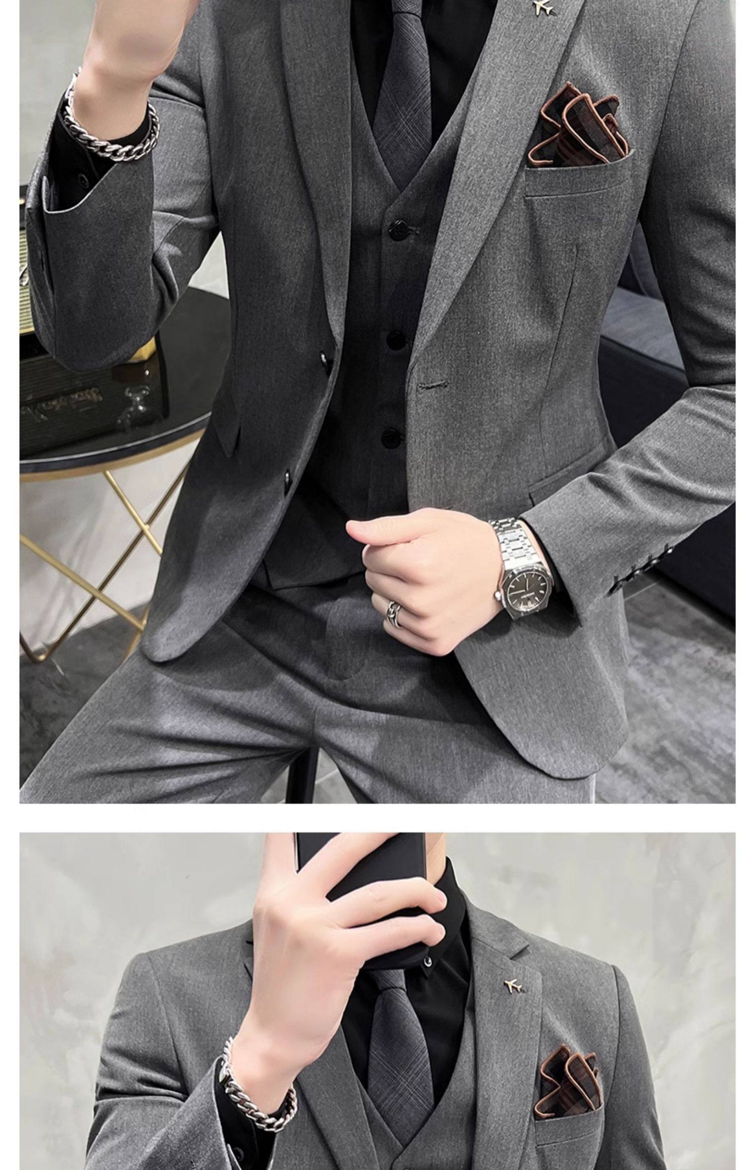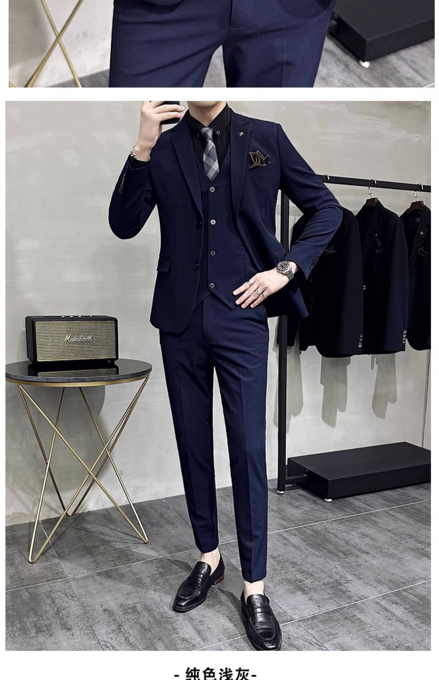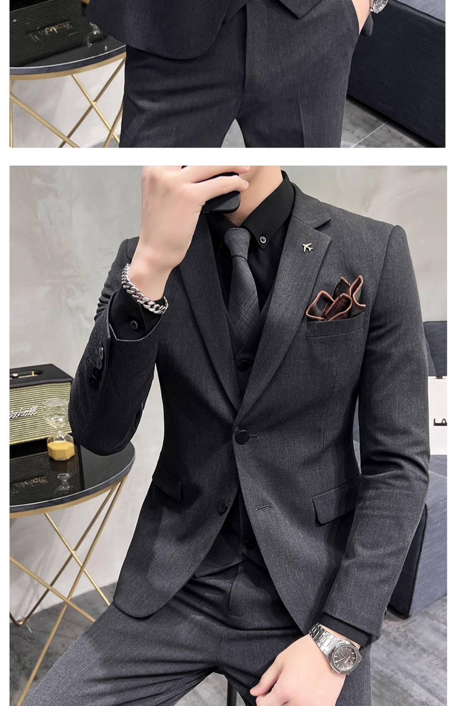 Свадебный костюм жениха, мужской деловой костюм в корейском стиле, тонкий профессиональный деловой костюм, мужская повседневная куртка, комплект из трех предметов