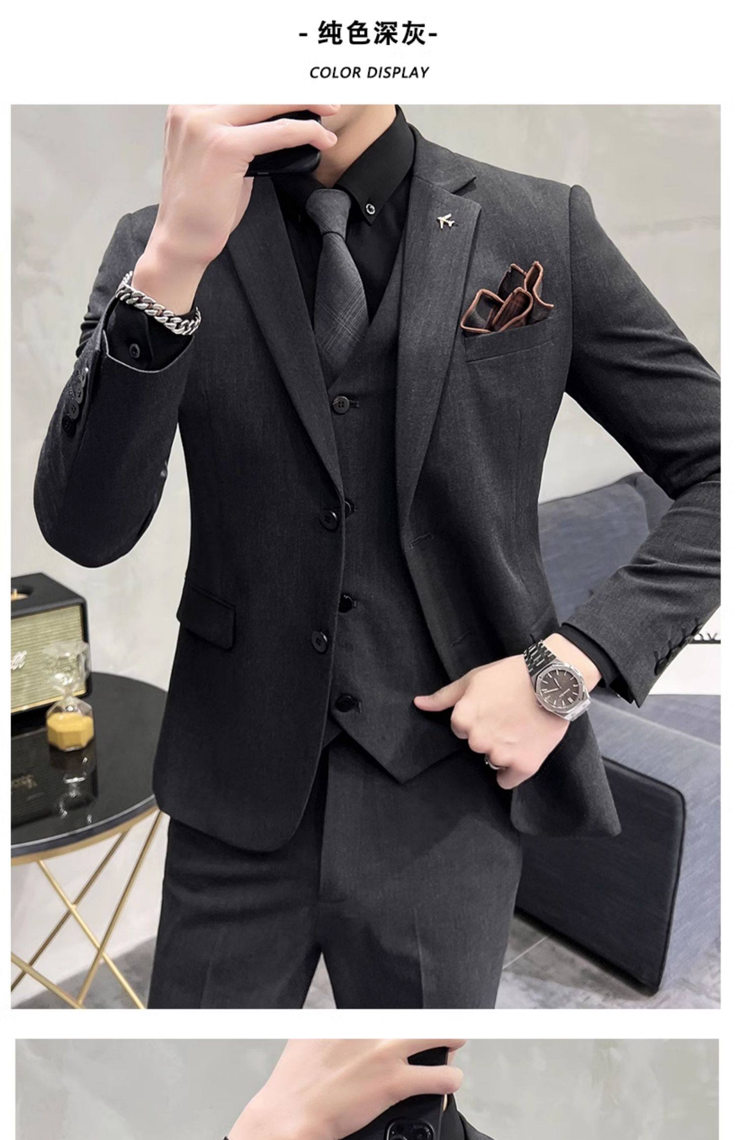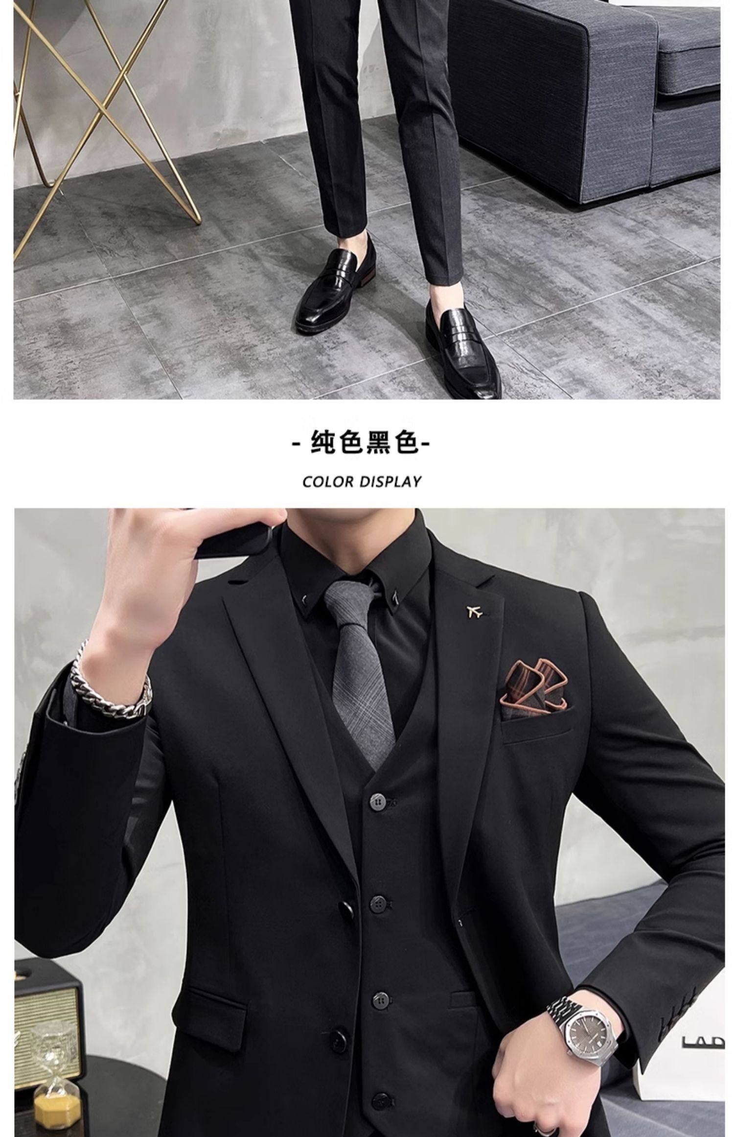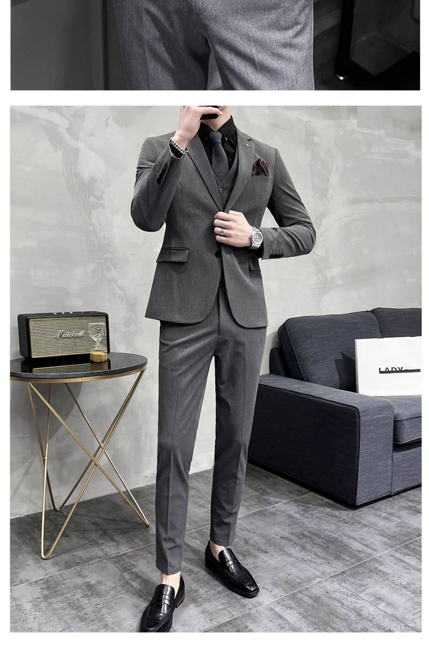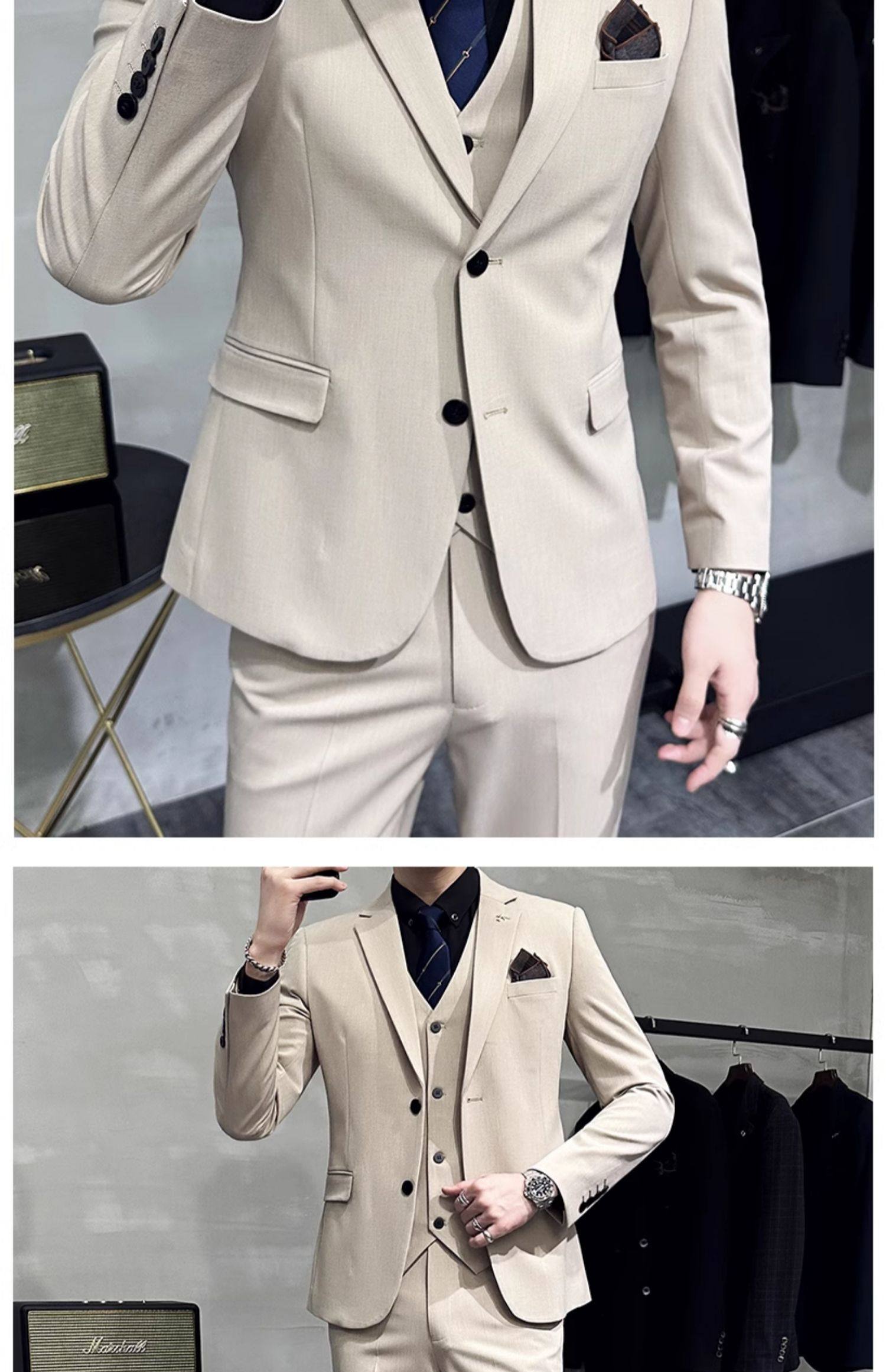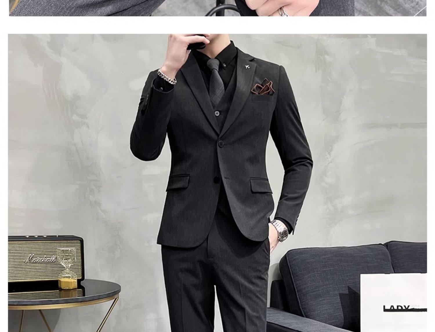 Свадебный костюм жениха, мужской деловой костюм в корейском стиле, тонкий профессиональный деловой костюм, мужская повседневная куртка, комплект из трех предметов