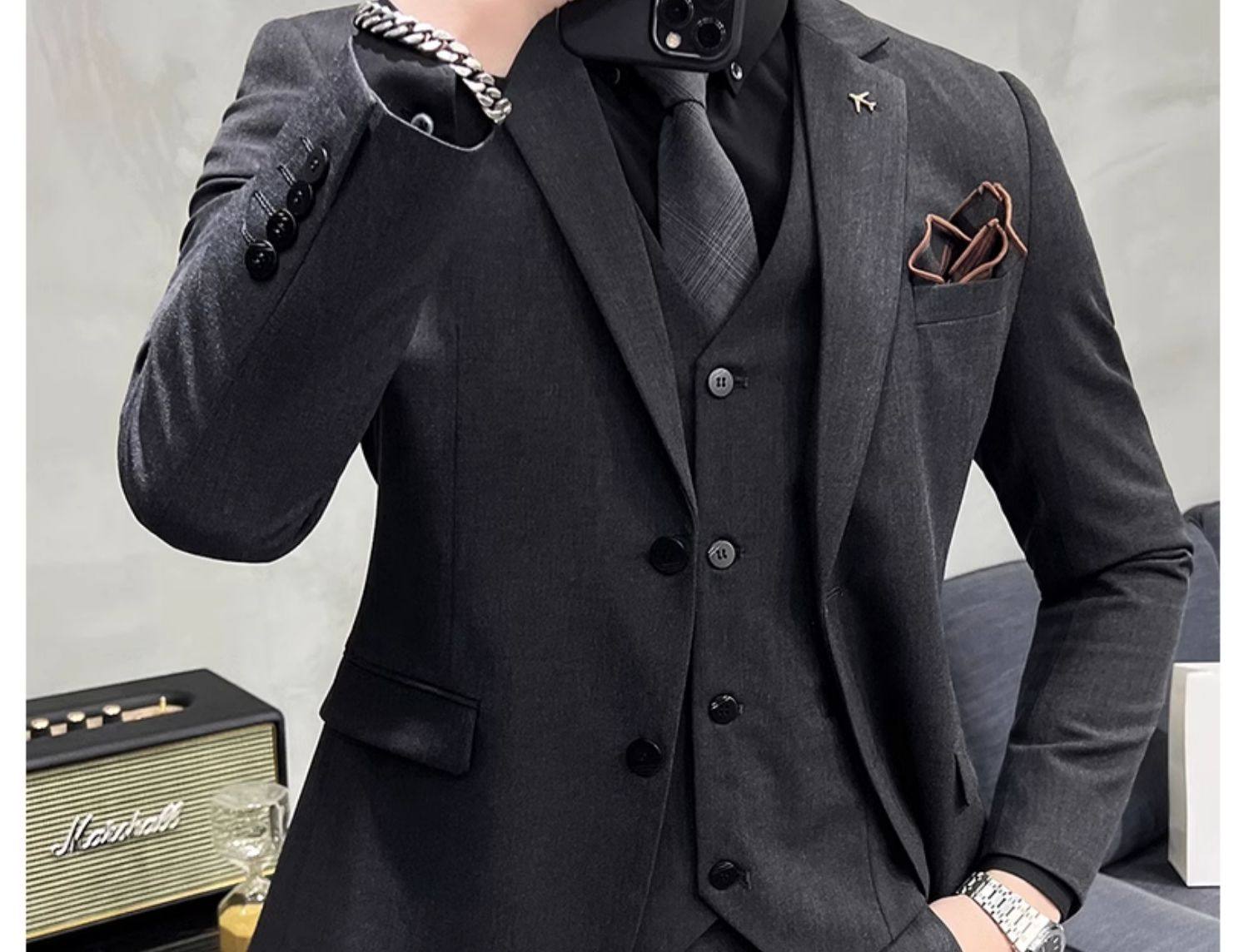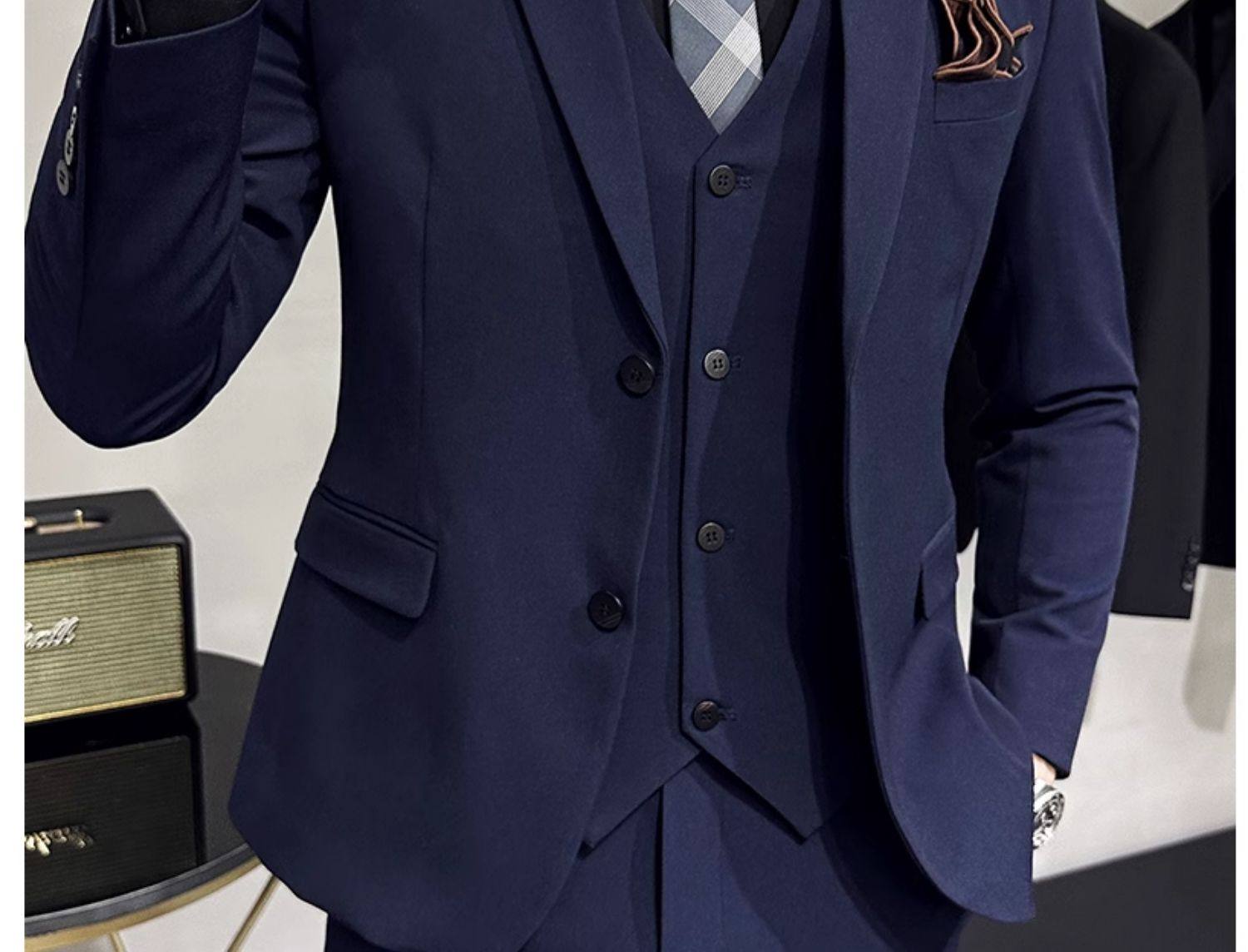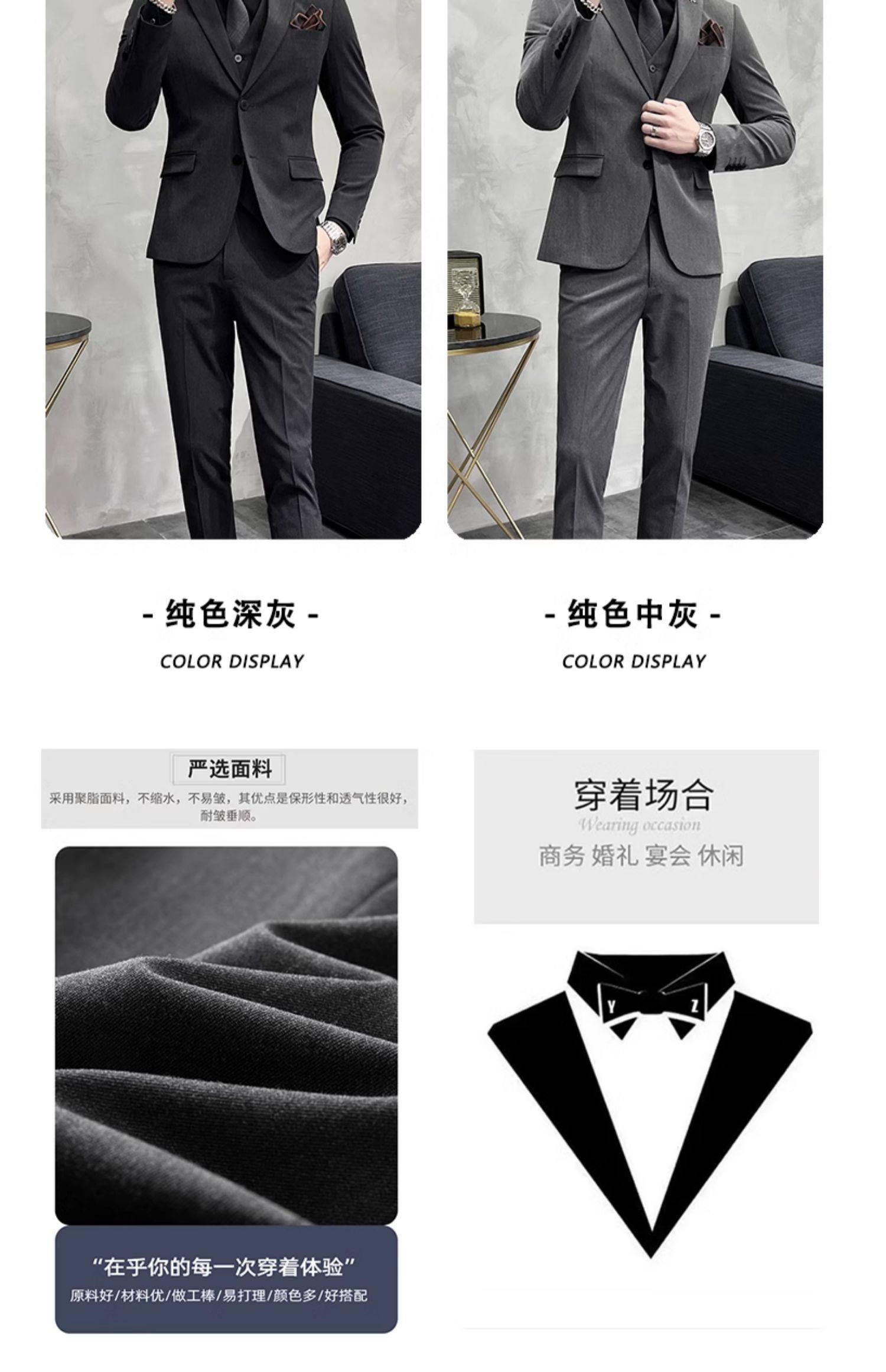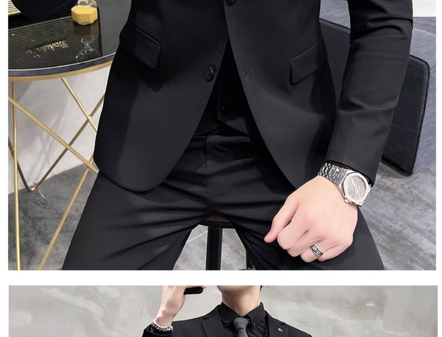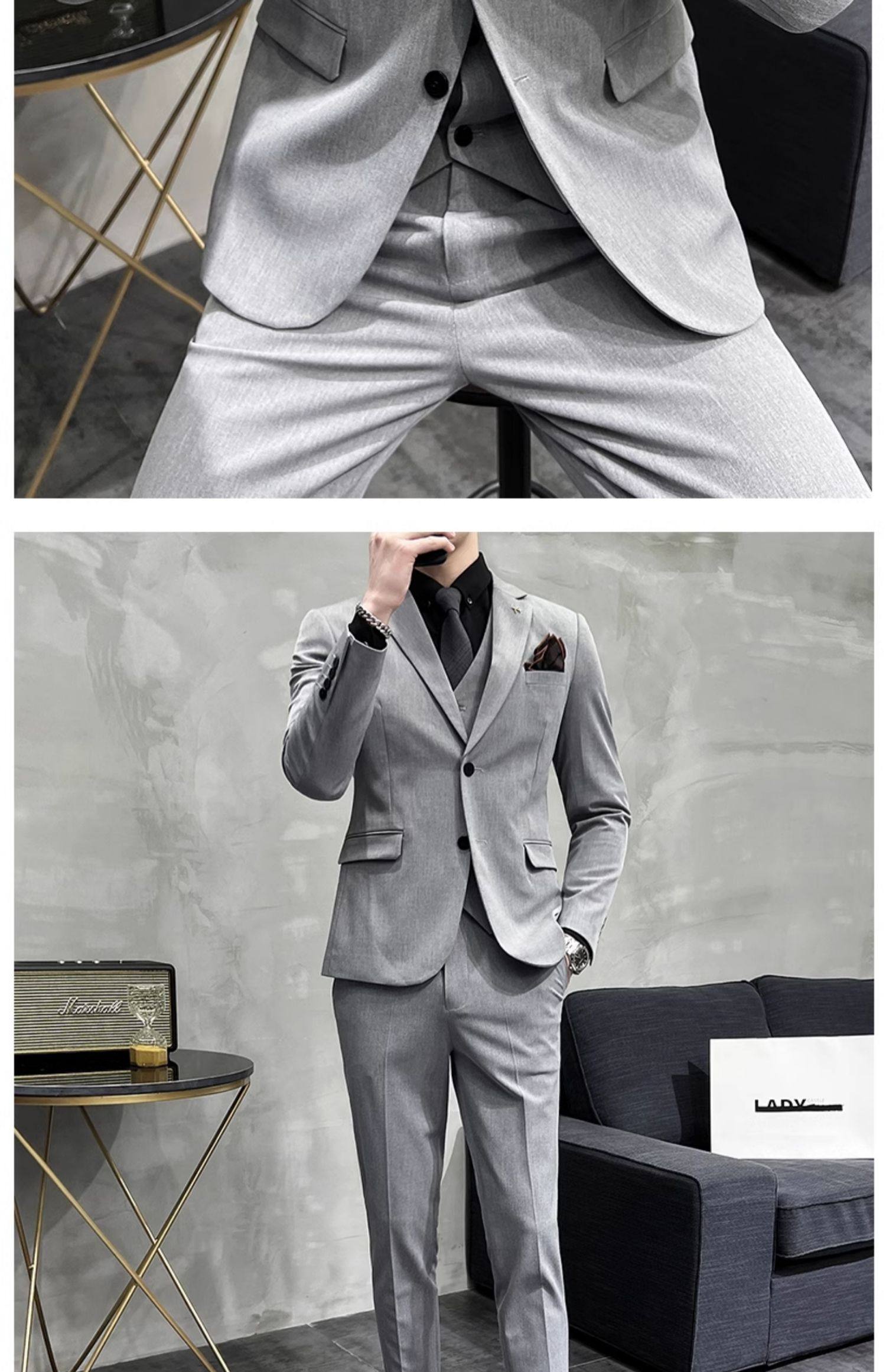 Свадебный костюм жениха, мужской деловой костюм в корейском стиле, тонкий профессиональный деловой костюм, мужская повседневная куртка, комплект из трех предметов