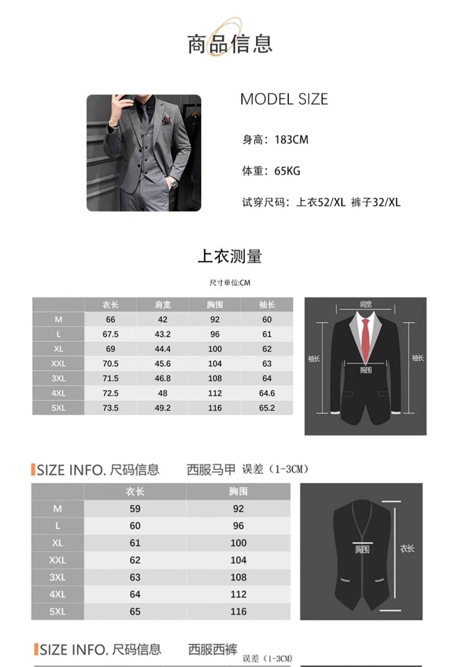 China (cm) 165 / 88-90 170 / 96-98 175 / 108-110 180 / 118-122 185 / 126-130
