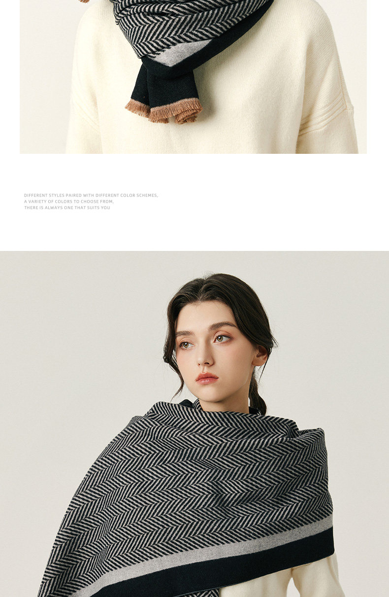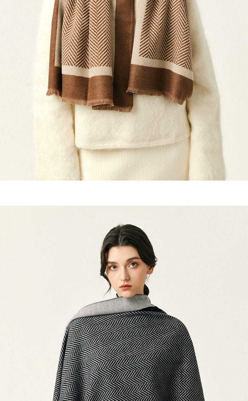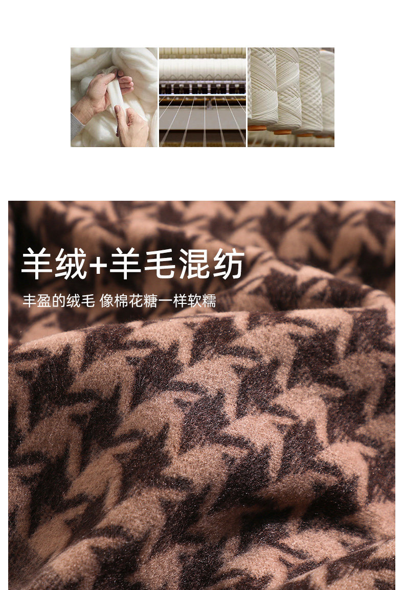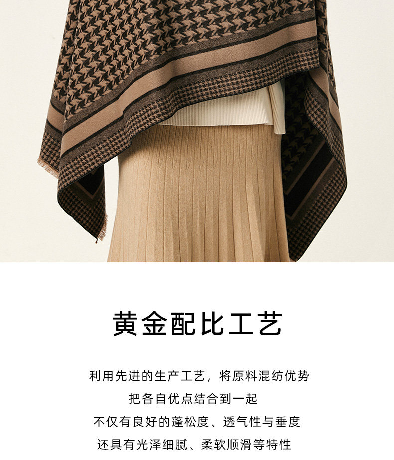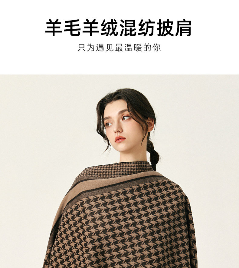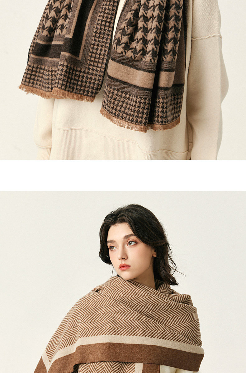 2025 New Women's Scarf for Winter, Wool and Cashmere Blend, Houndstooth Pattern, Double-Sided, High-End Feel, Thickened for Warmth