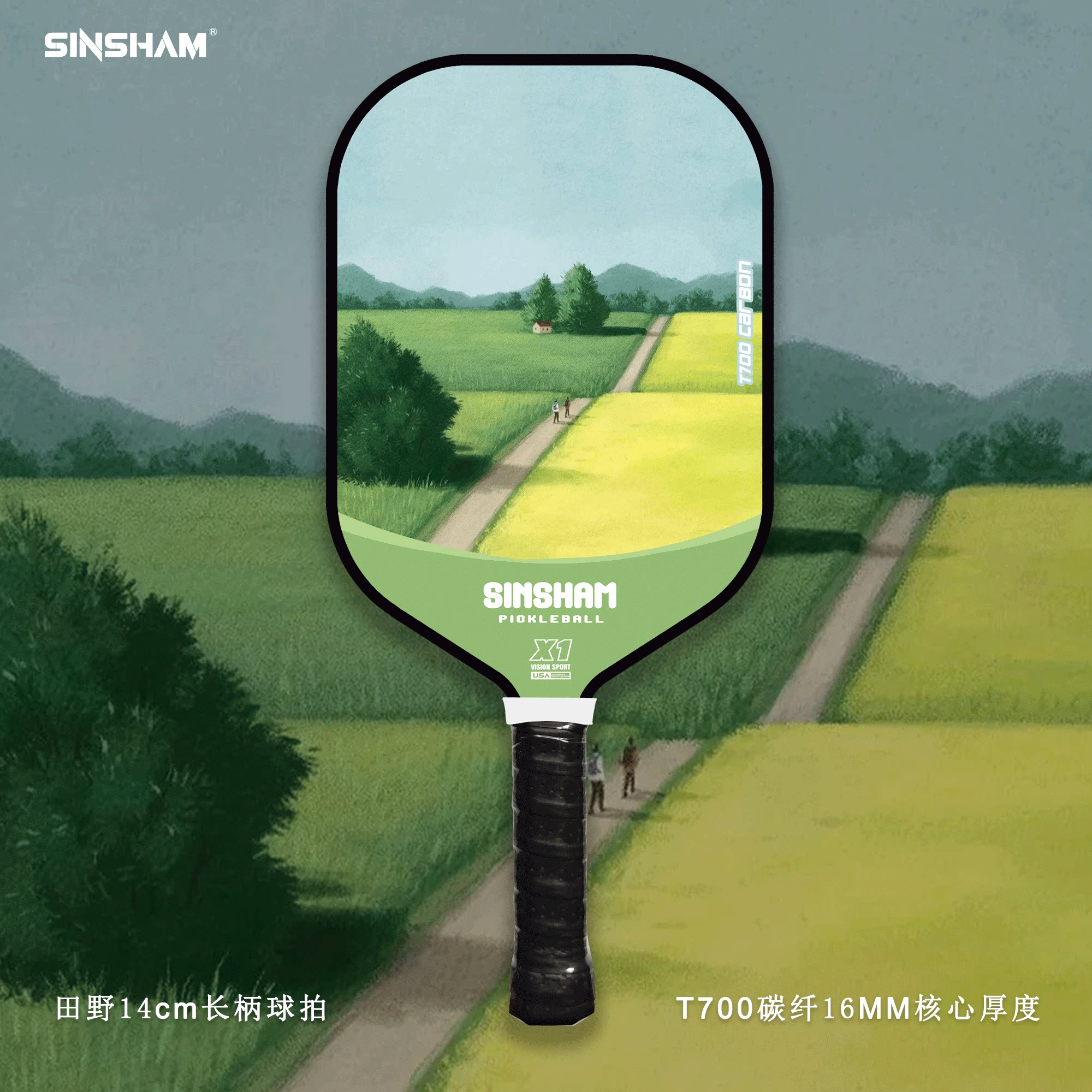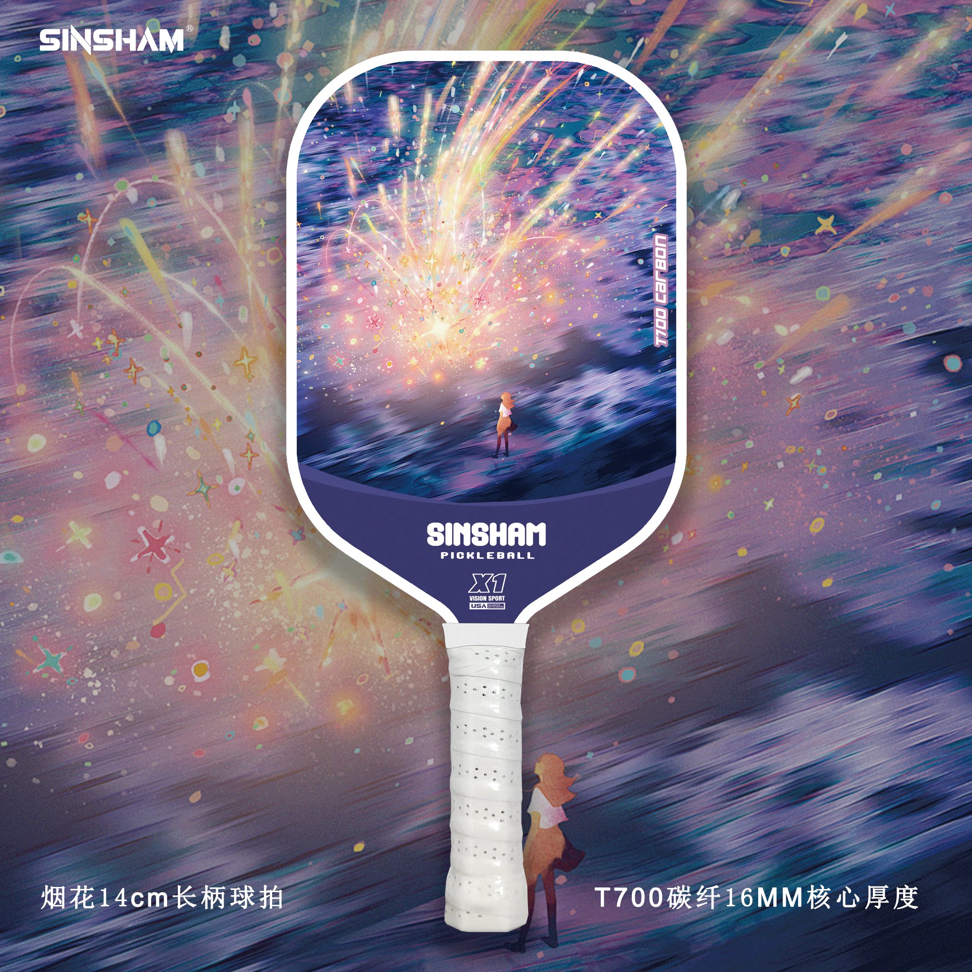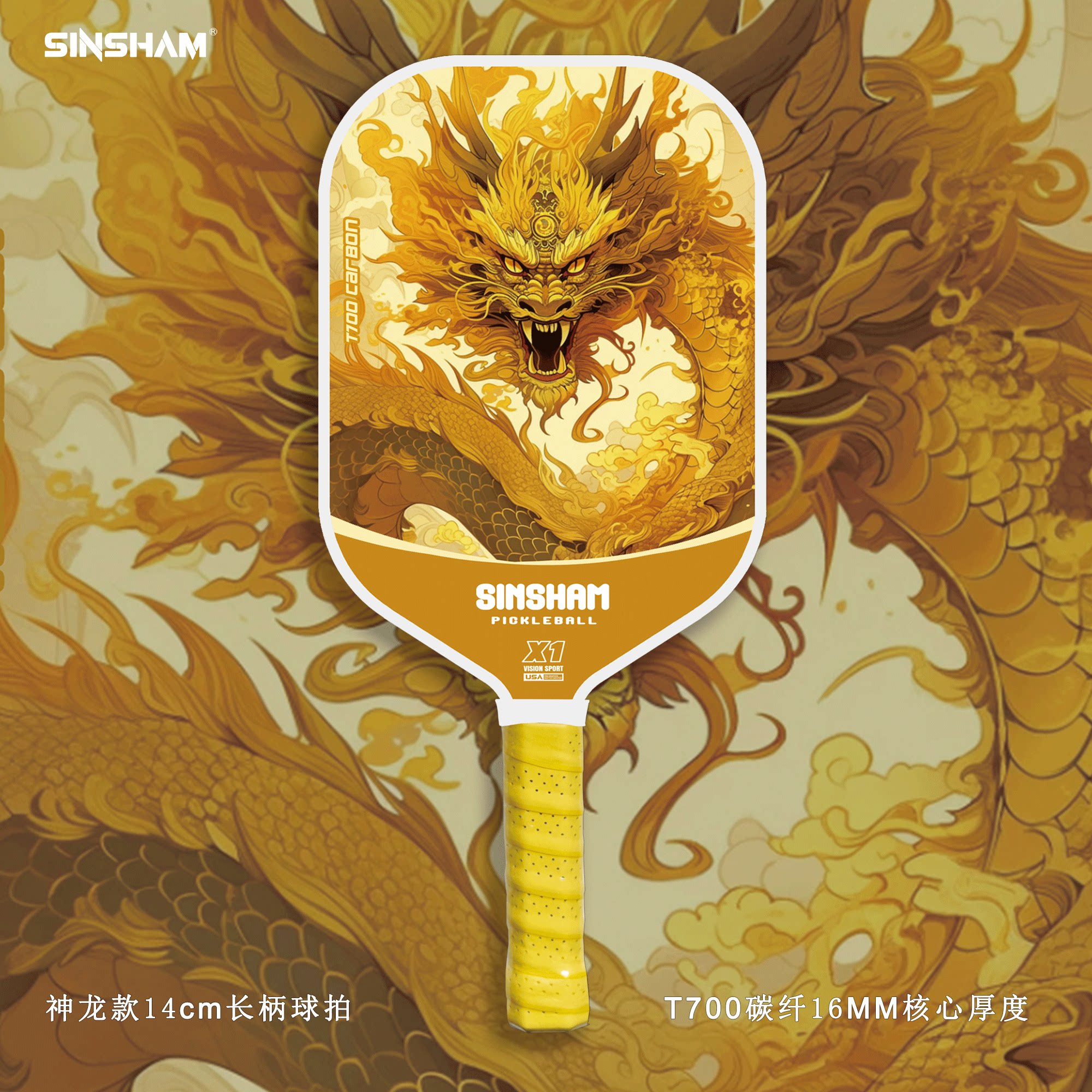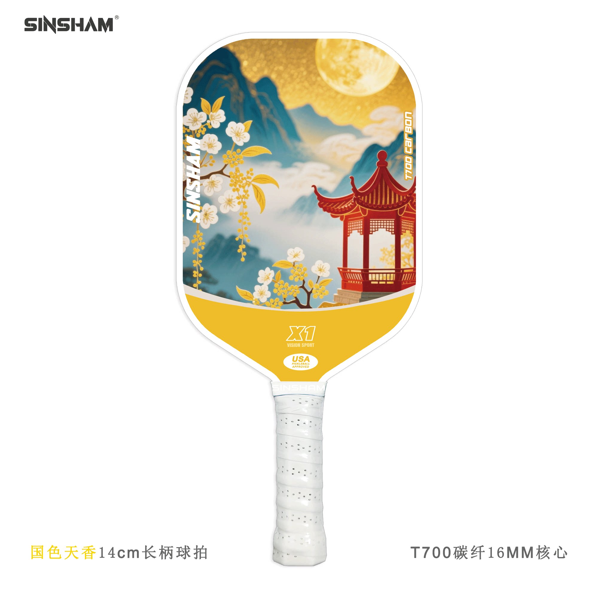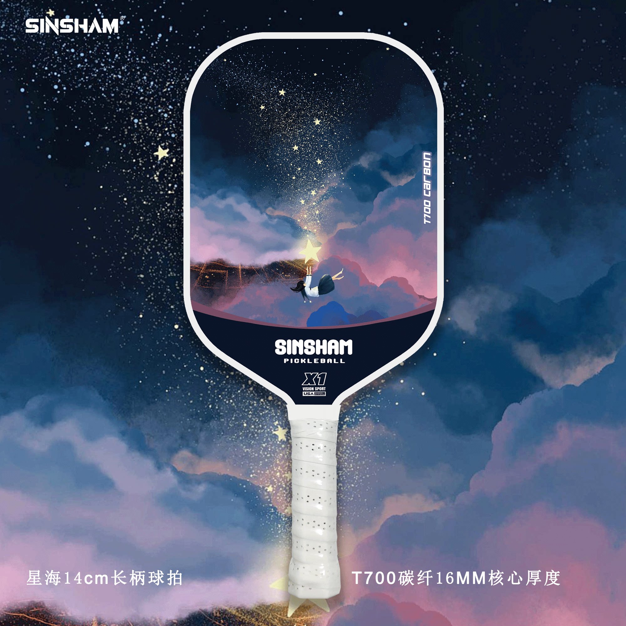 Sinsham T700 Carbon Fiber 16mm Thick Ultra-Light Matte Long-Handled Pickleball Paddle