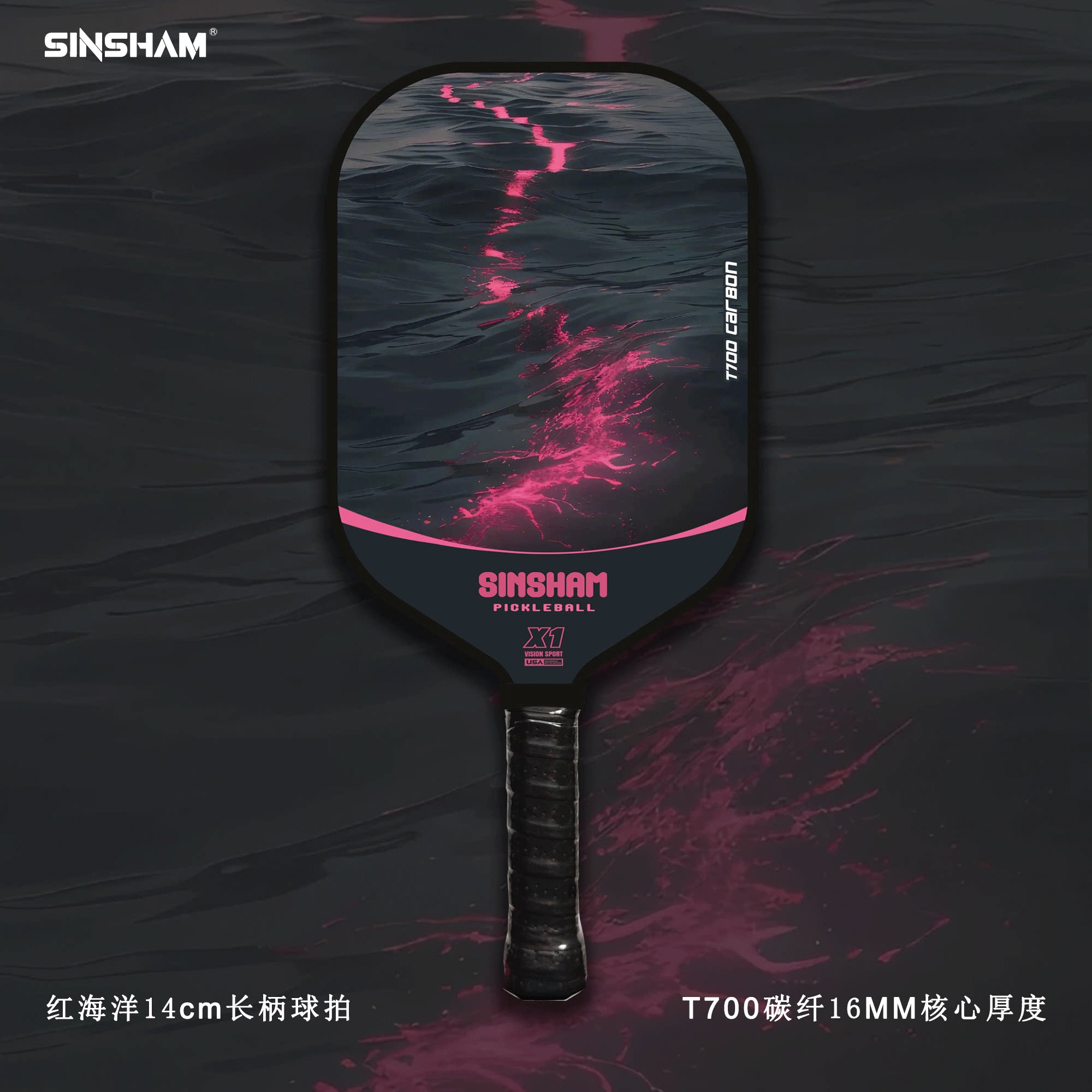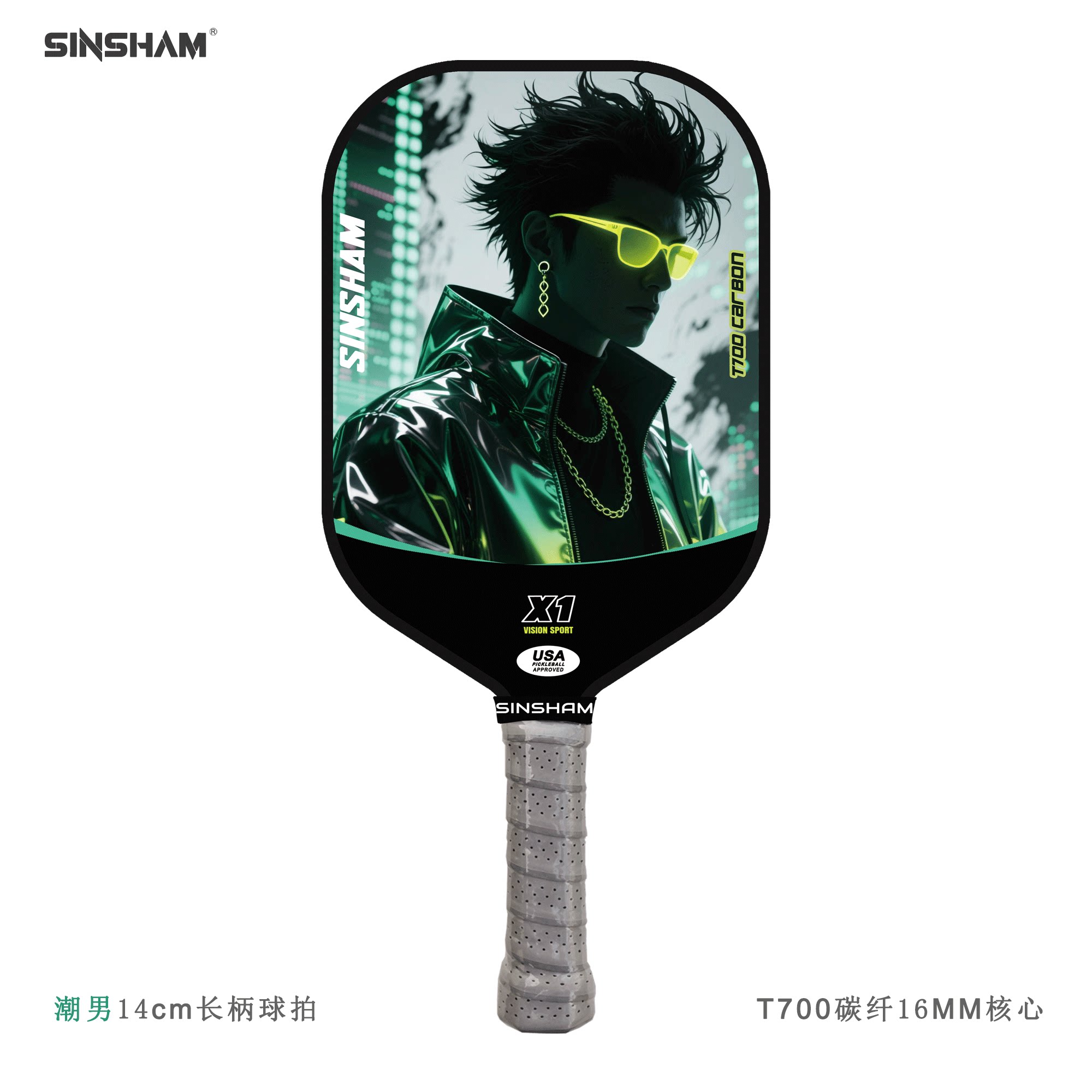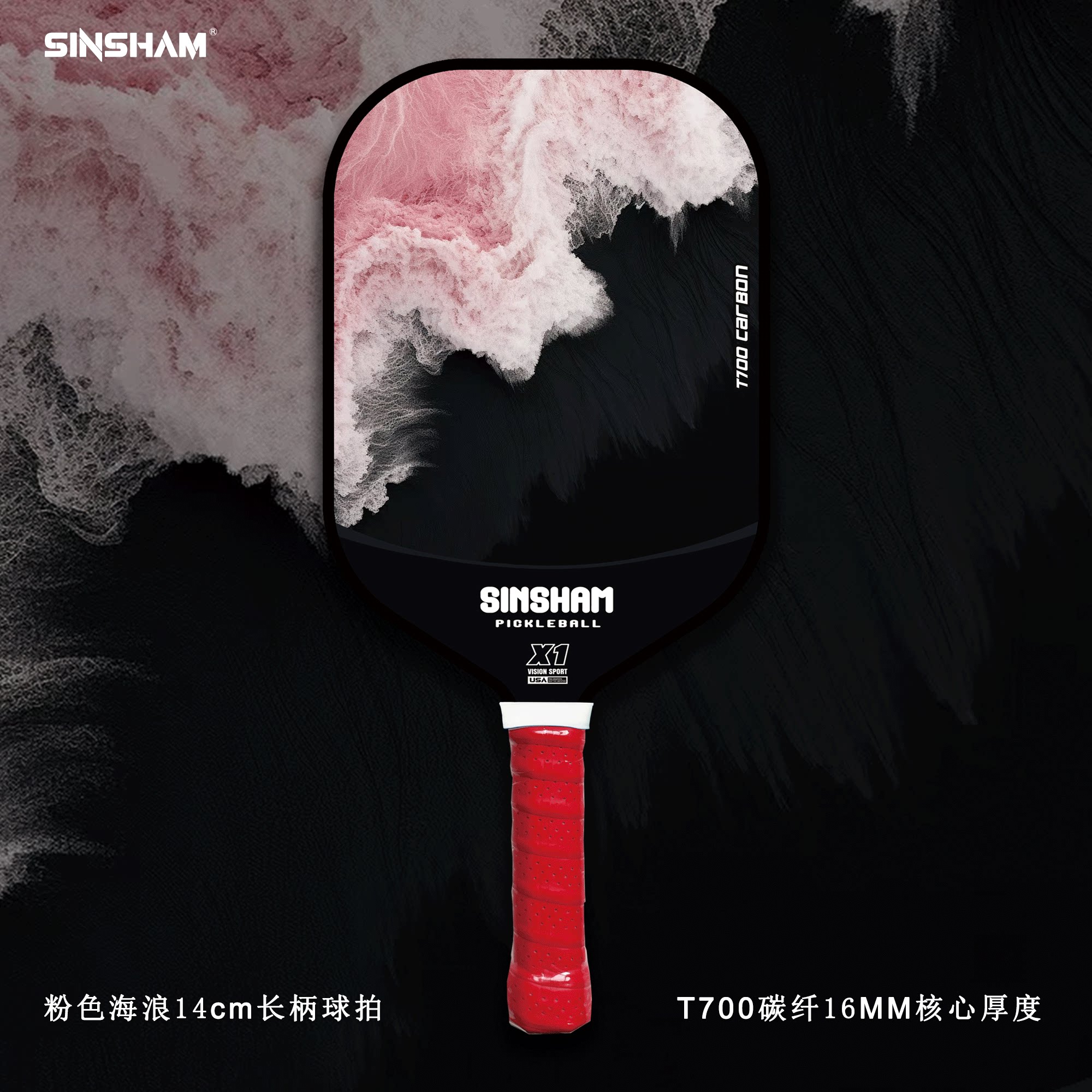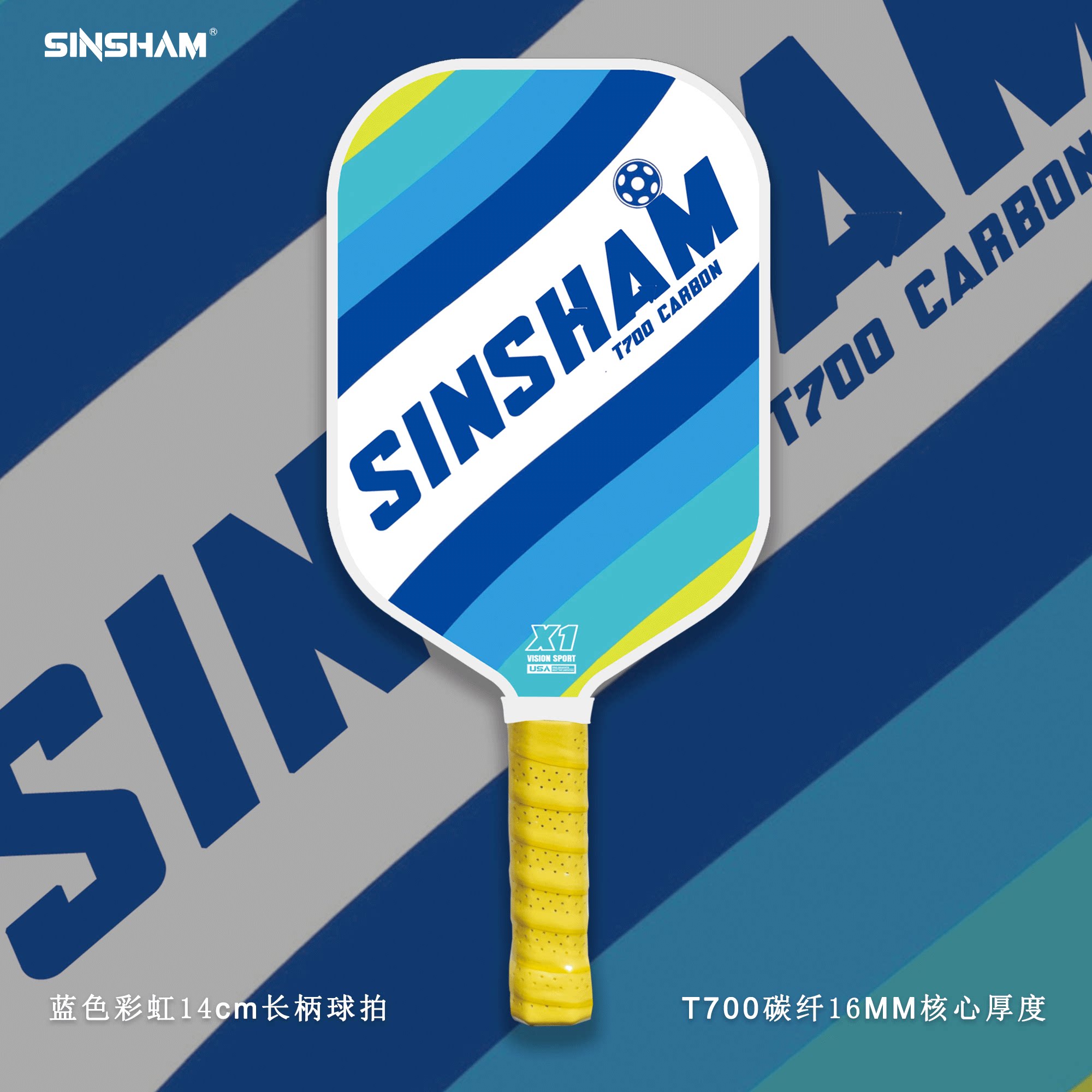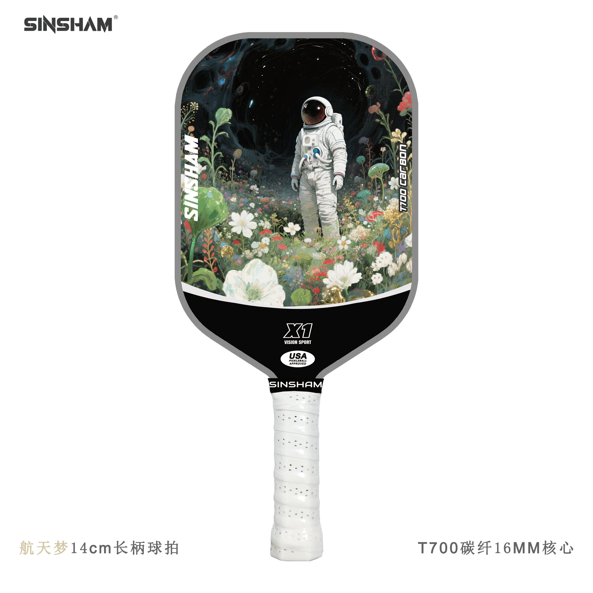 Sinsham T700 Carbon Fiber 16mm Thick Ultra-Light Matte Long-Handled Pickleball Paddle