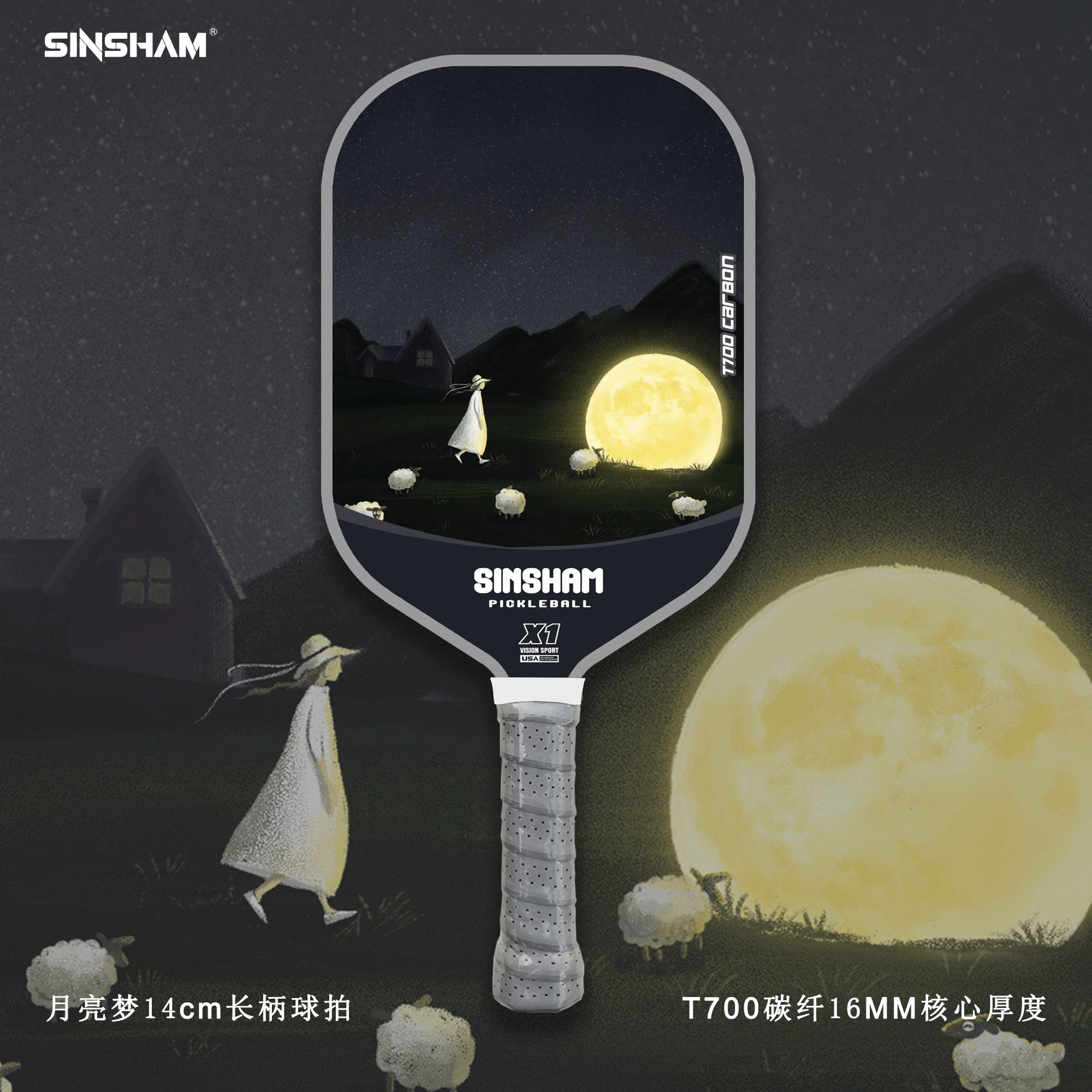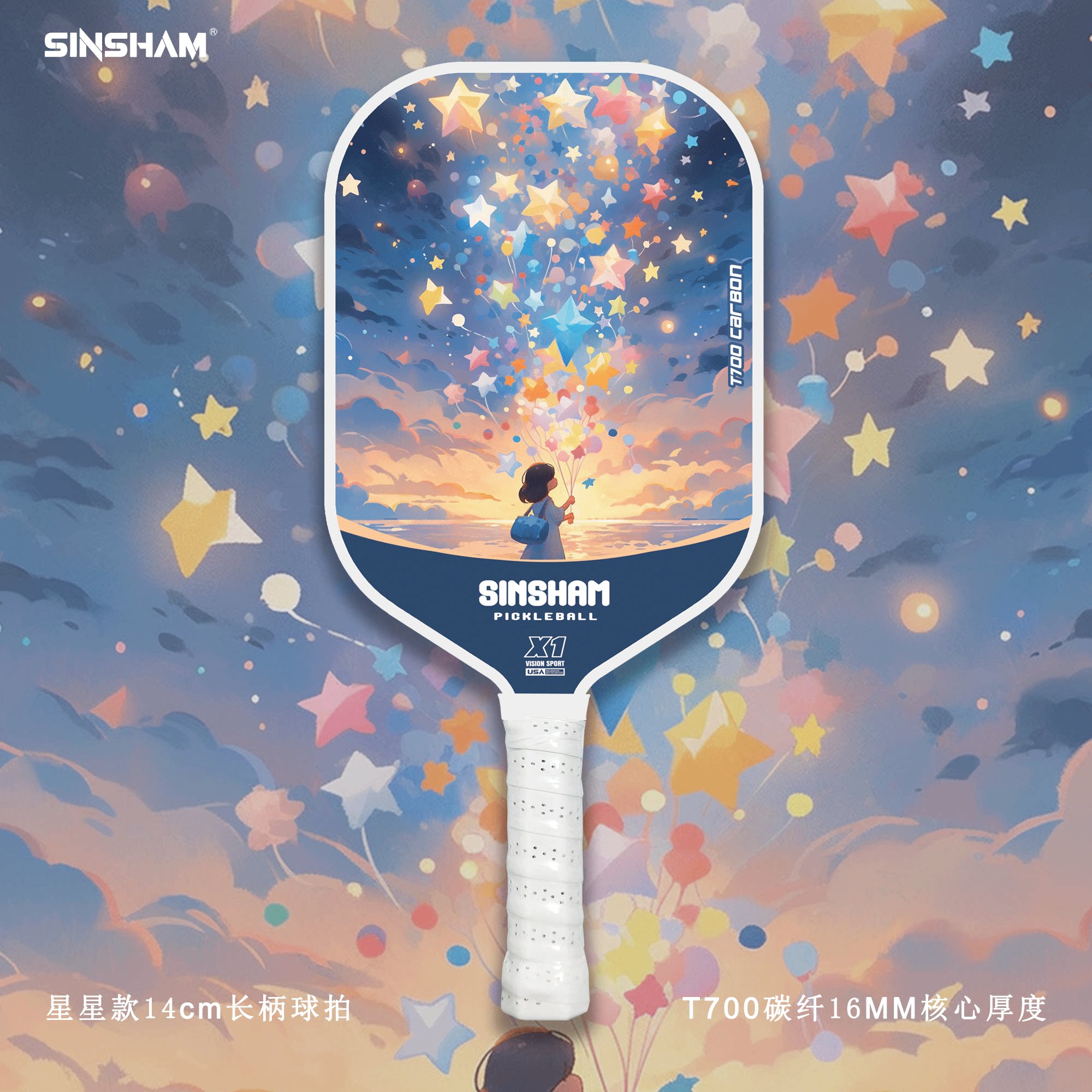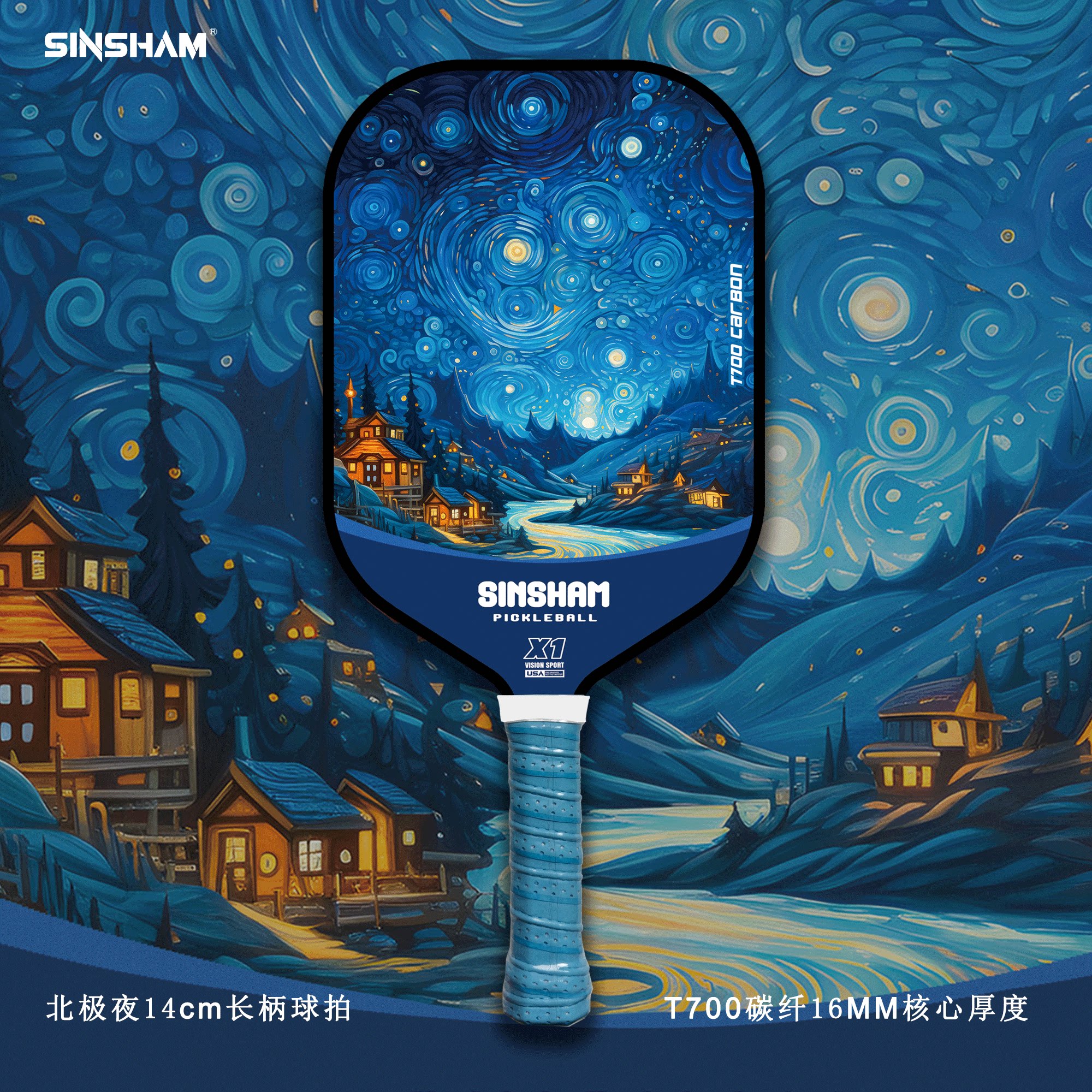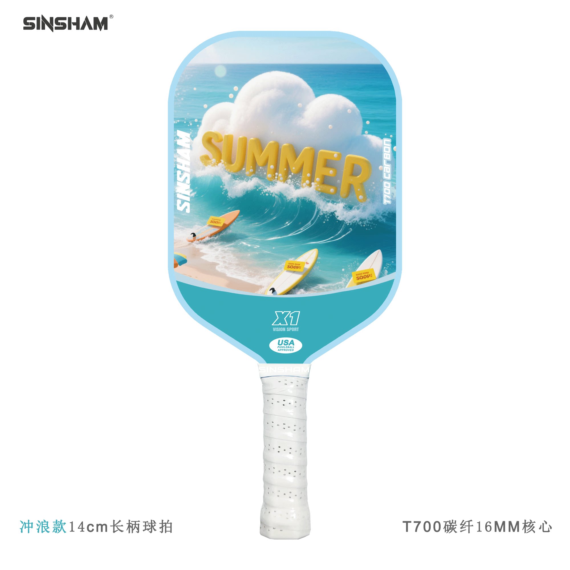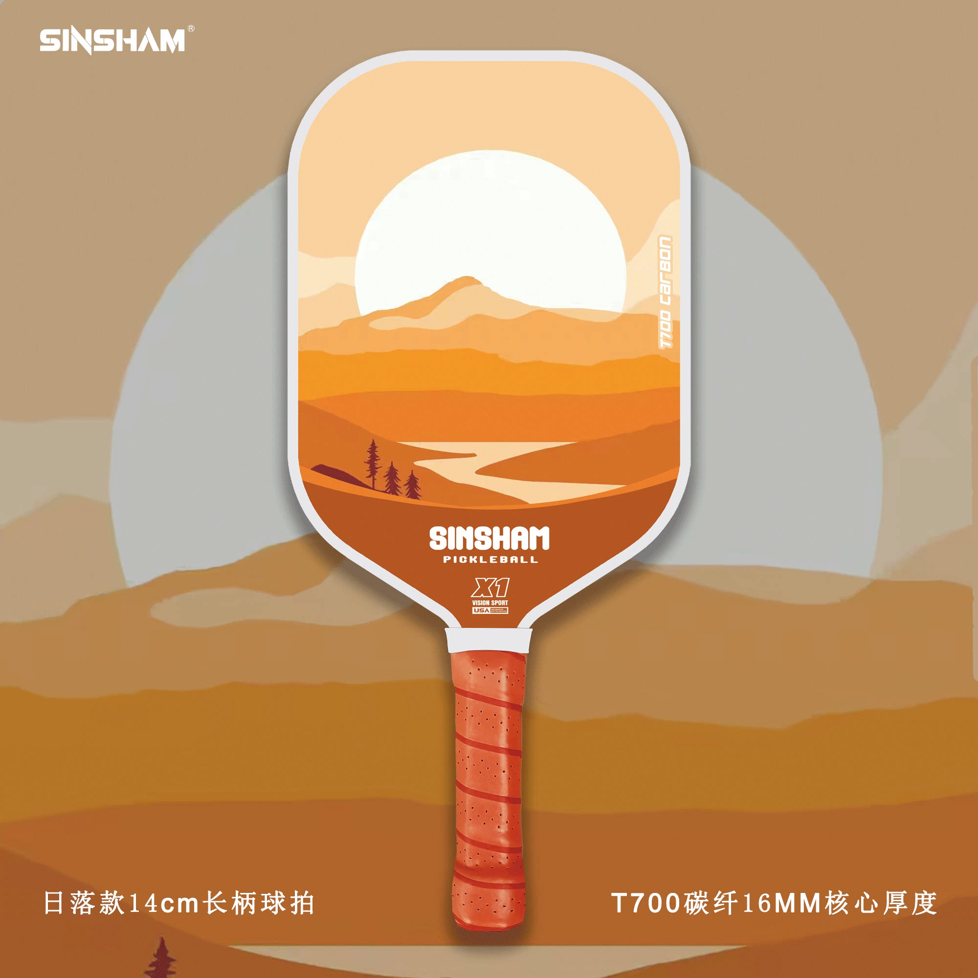 Sinsham T700 Carbon Fiber 16mm Thick Ultra-Light Matte Long-Handled Pickleball Paddle