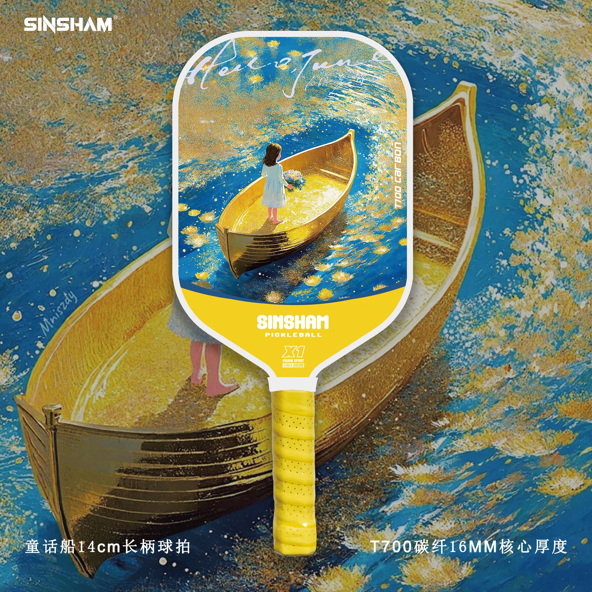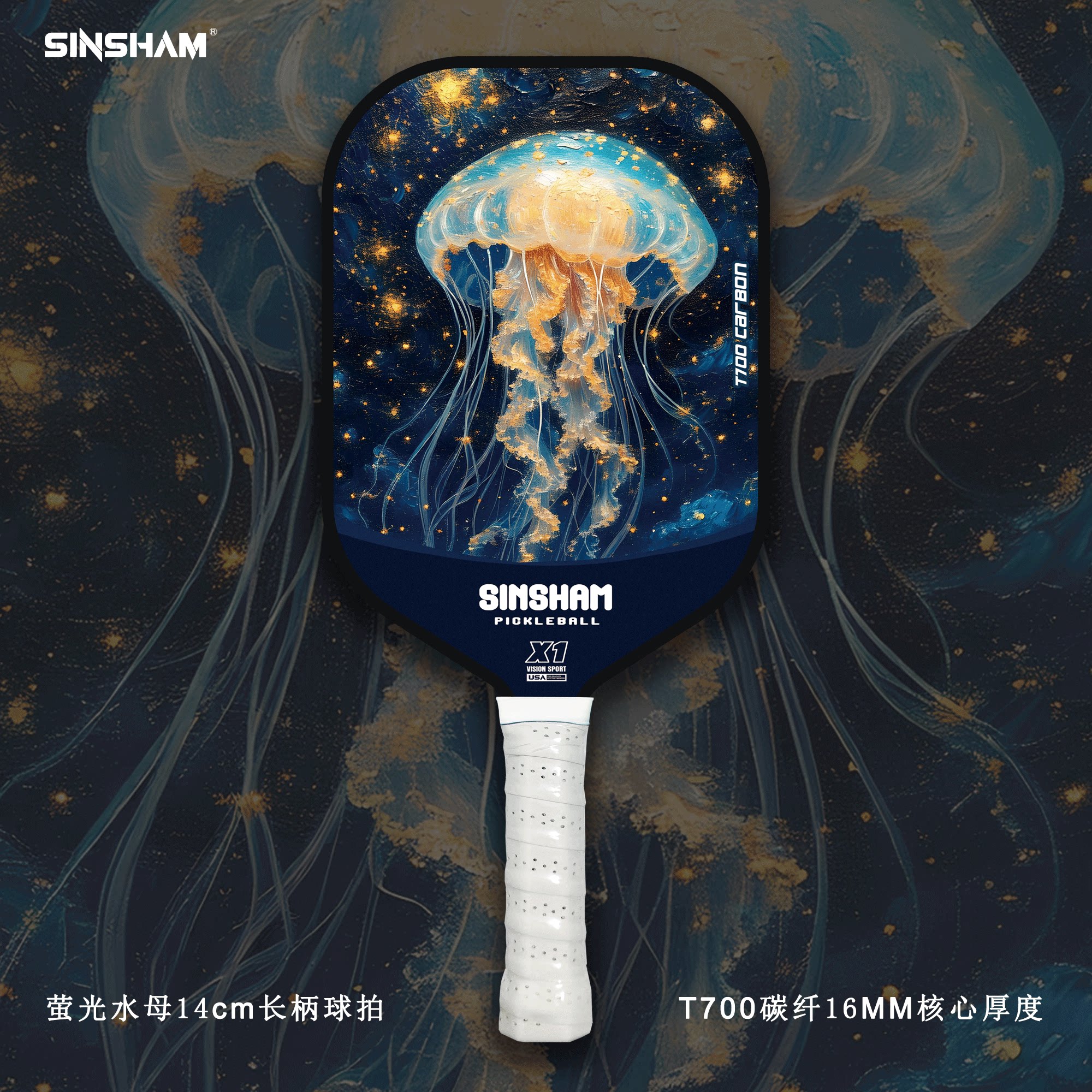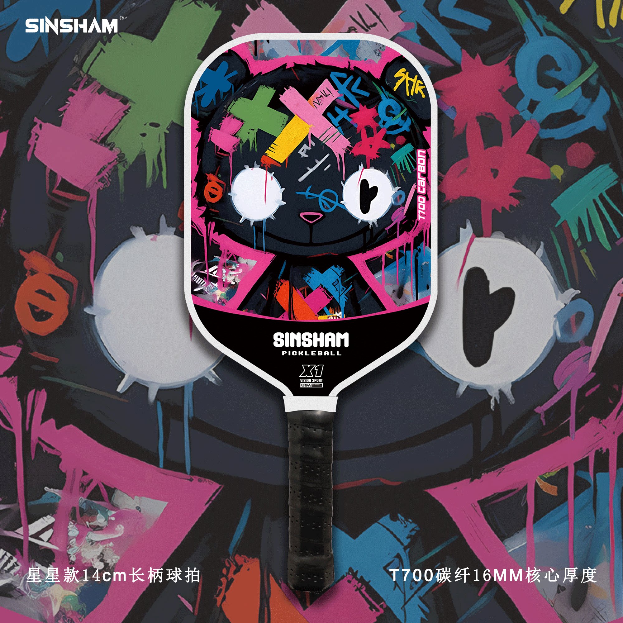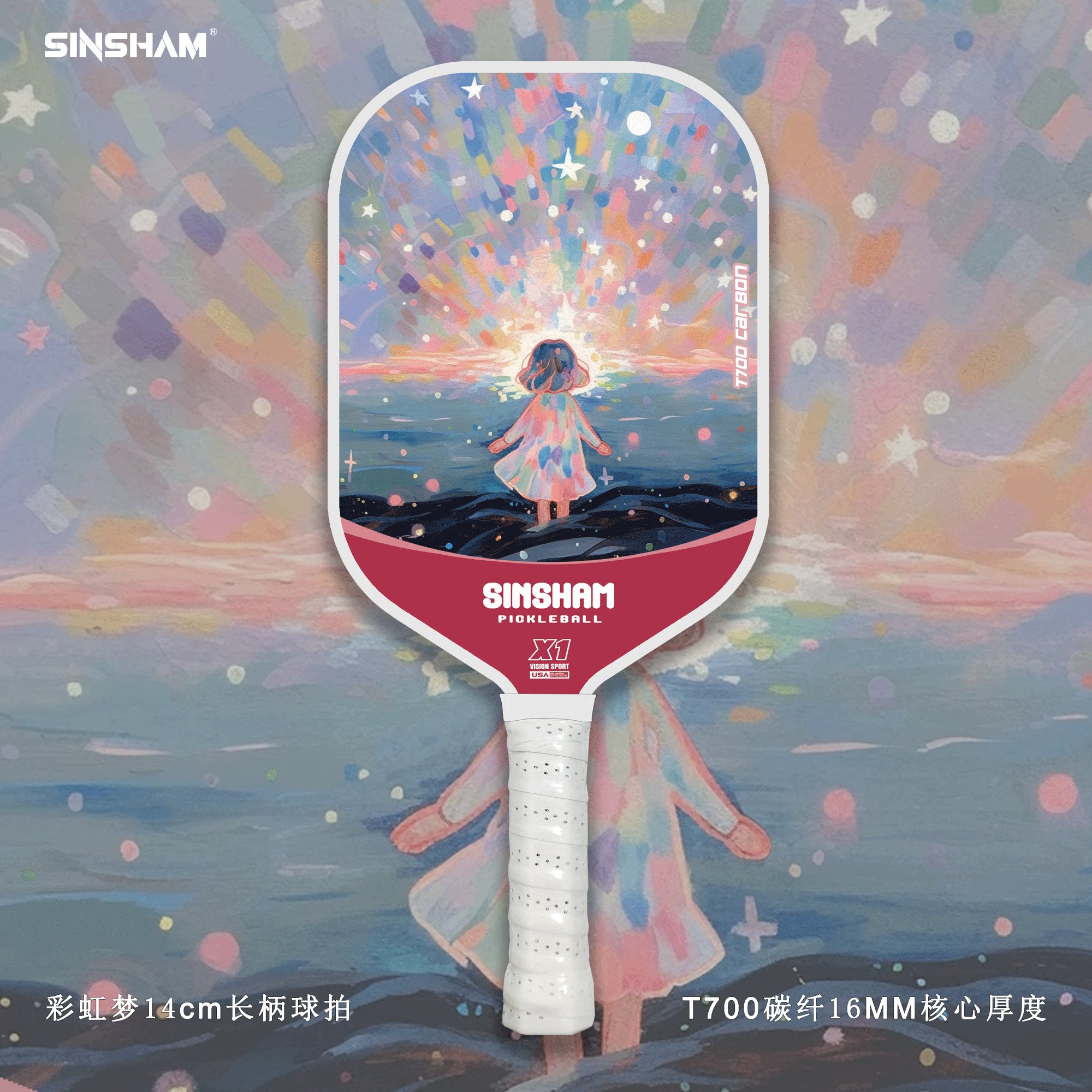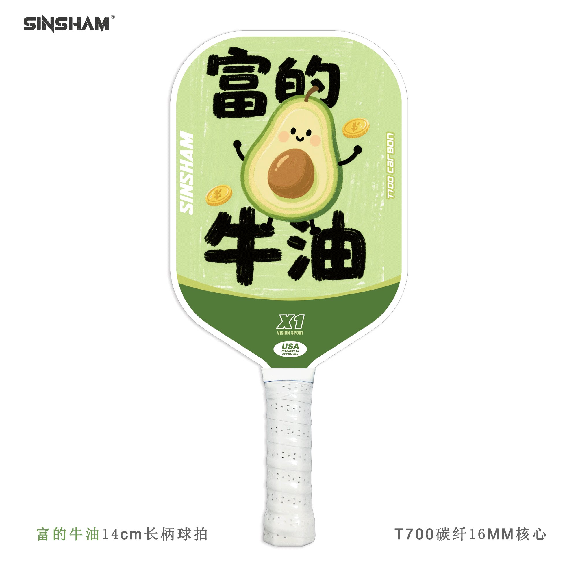 Sinsham T700 Carbon Fiber 16mm Thick Ultra-Light Matte Long-Handled Pickleball Paddle