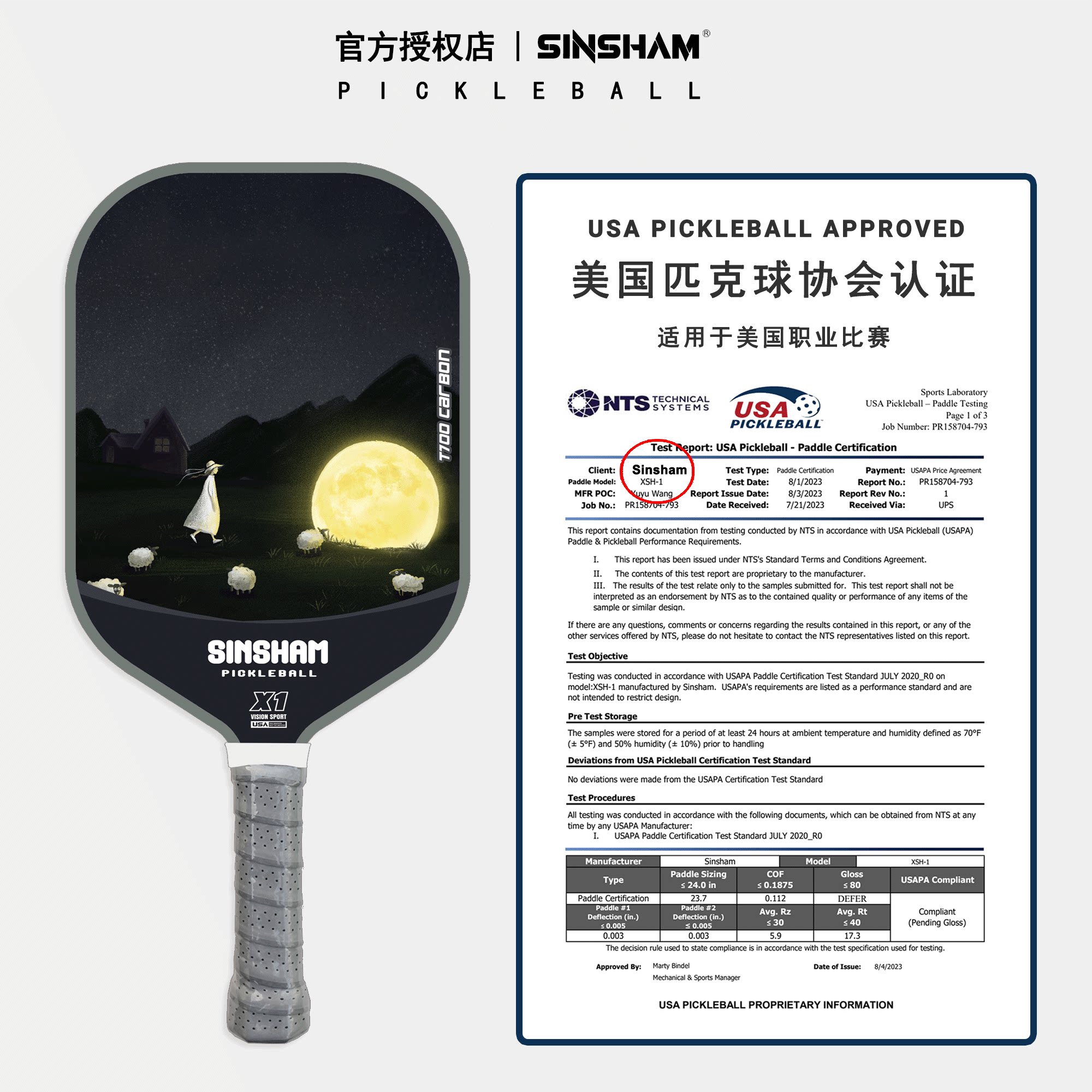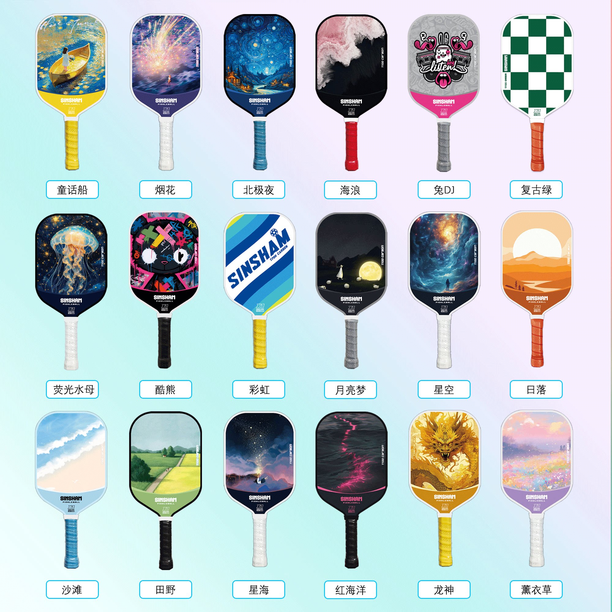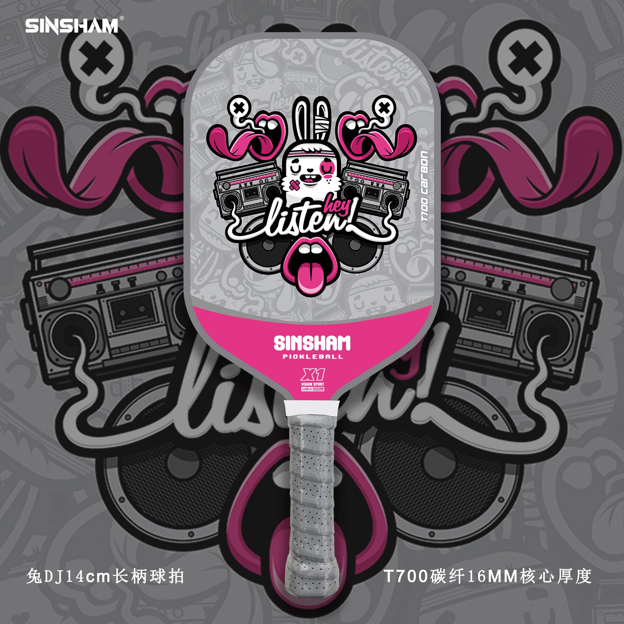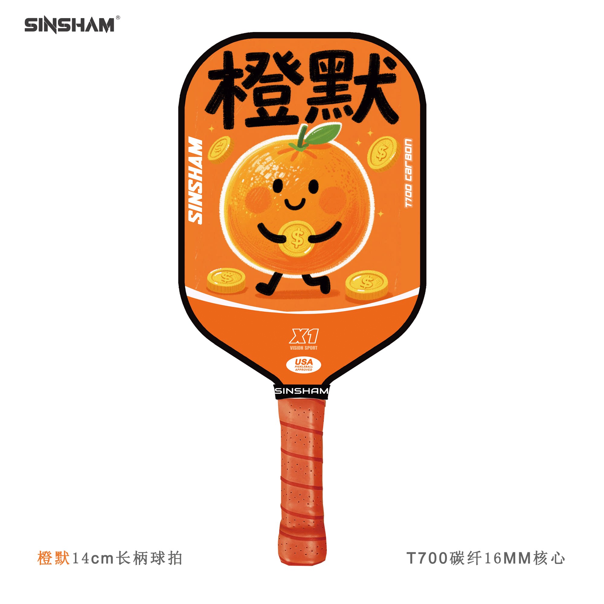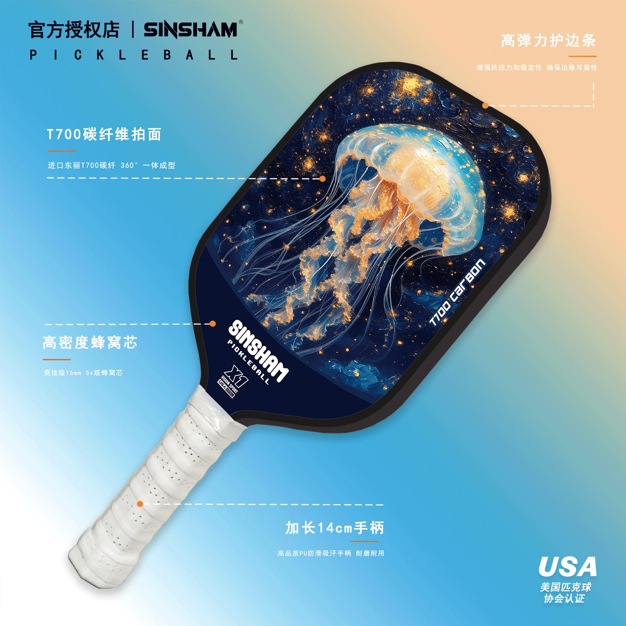 Sinsham T700 Carbon Fiber 16mm Thick Ultra-Light Matte Long-Handled Pickleball Paddle