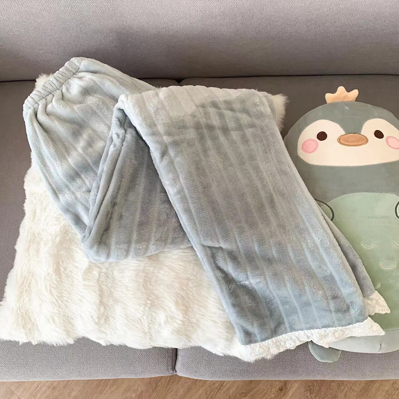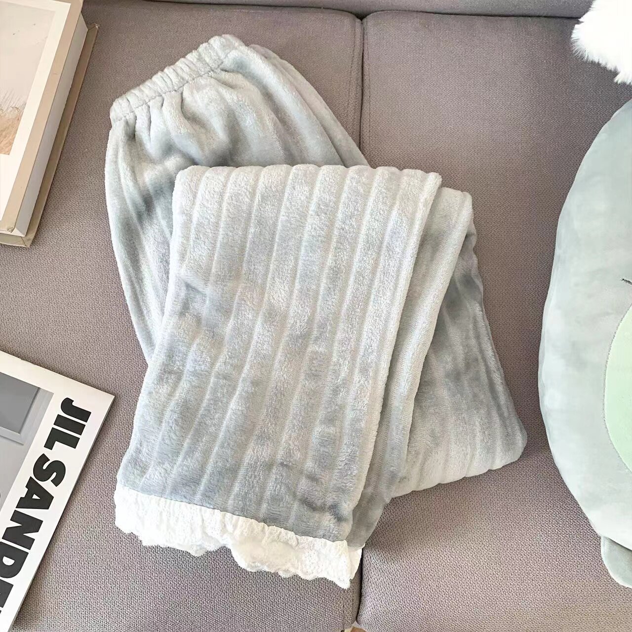 Thickened Coral Velvet Pajamas for Women, Autumn and Winter Flannel Warm Pants, Casual Lace Warm Pants That Can Be Worn Outside Home Pants